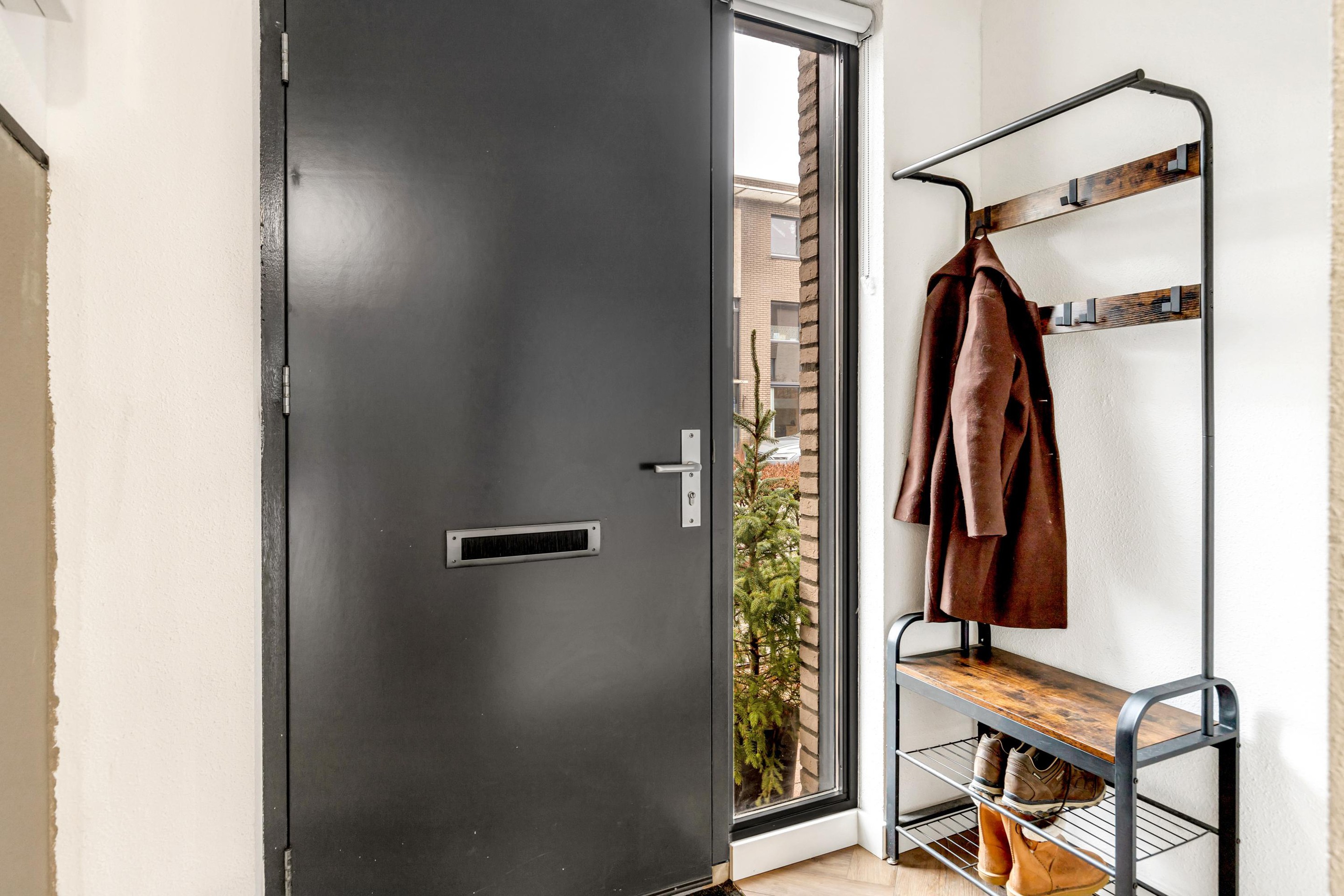 Begane grond U komt binnen via de entree en de hal, met daarin de meterkast met glasvezelaansluiting, de toiletruimte met zwevend toilet en fonteintje, de woonkamer en de trap naar de eerste verdieping met daaronder de trapkast (toegankelijk vanuit de woonkamer).