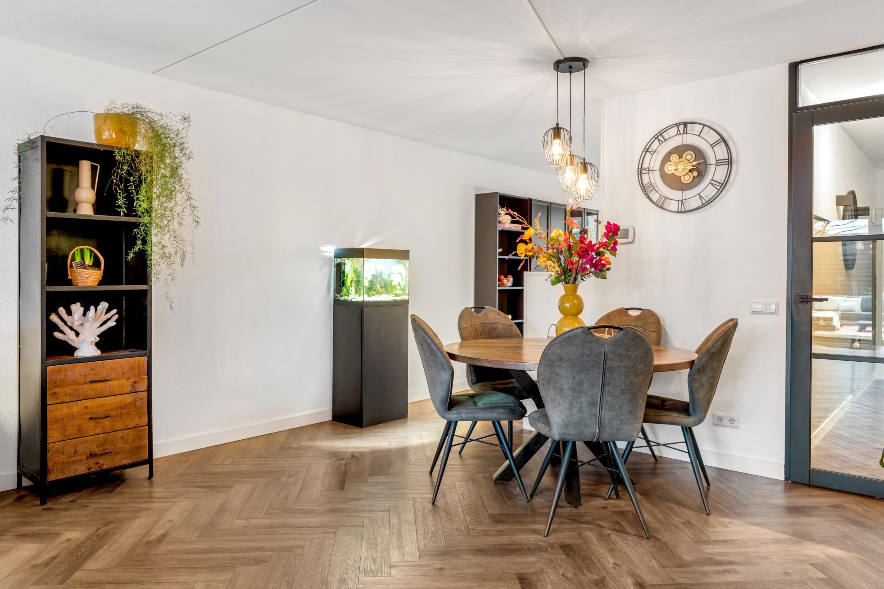 De woonkamer van maar liefst 39 m2 is tuingericht en door de schuifpui met grote raampartijen treedt het licht goed de woning binnen. De schuifpui geeft toegang tot de achtertuin.