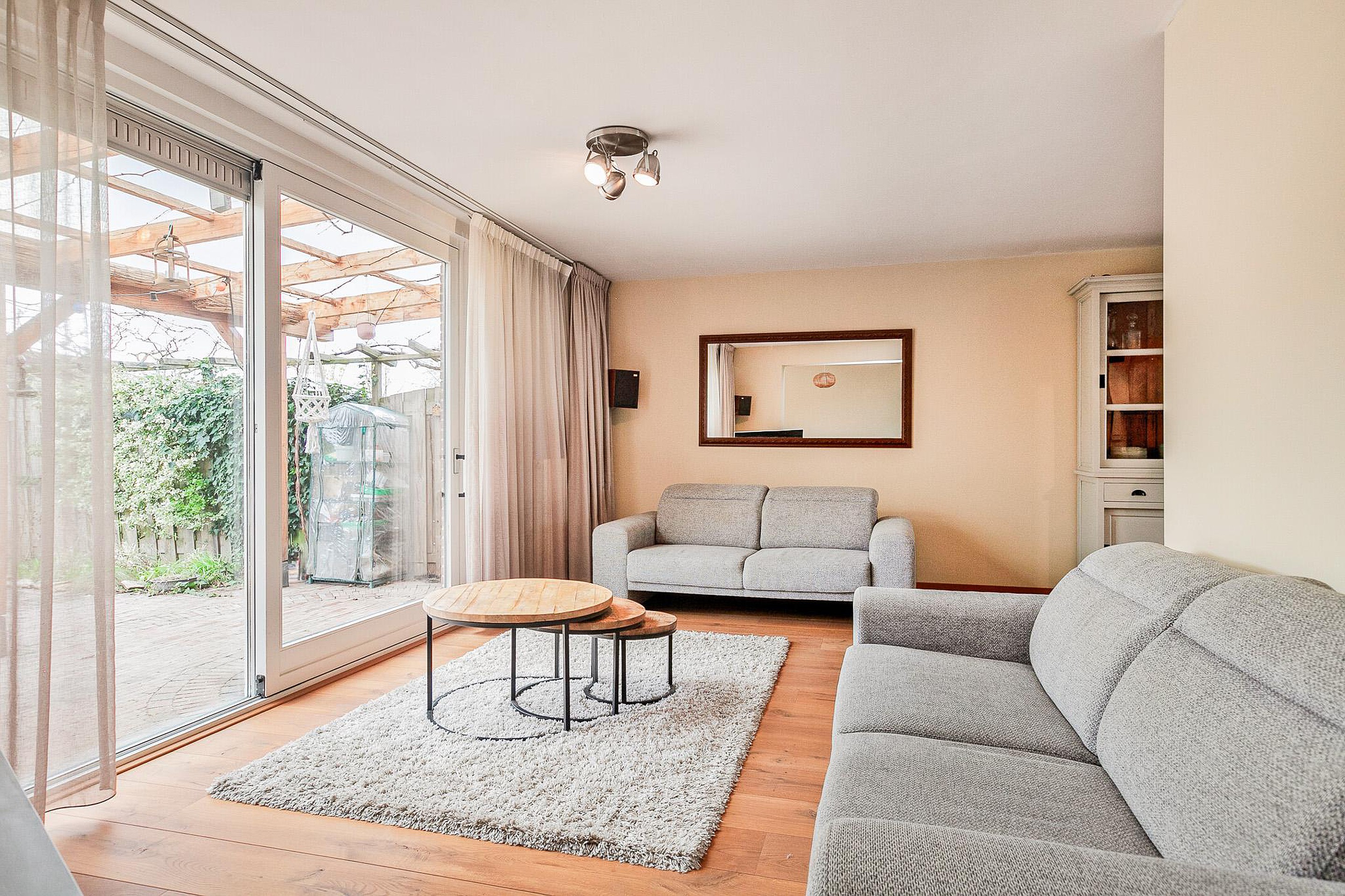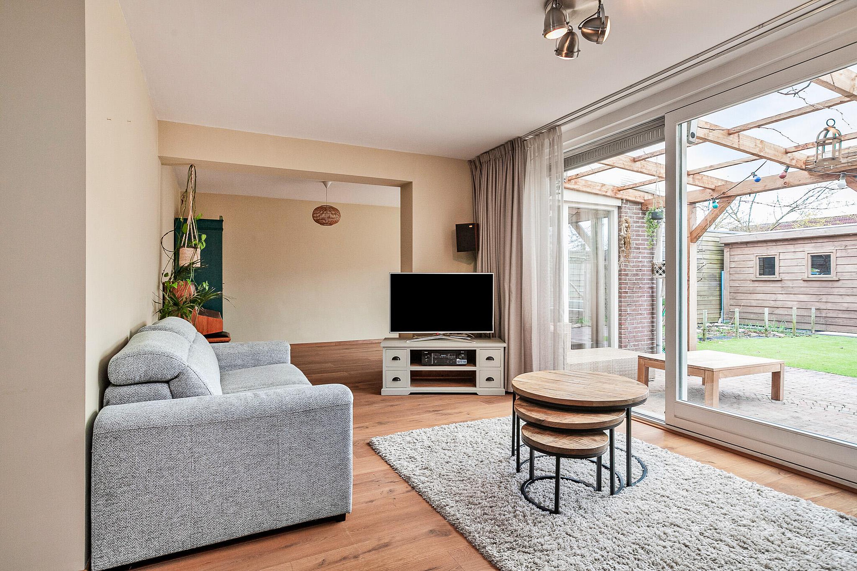- De woonkamer beschikt over een royale schuifpui die een mooie verbinding creëert tussen binnen en buiten