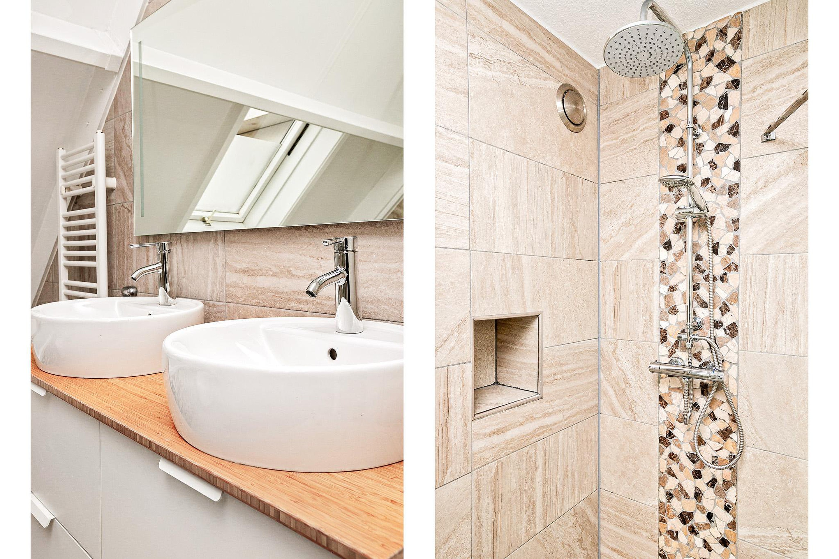 De overloop geeft toegang tot drie slaapkamers. De ruime hoofdslaapkamer is voorzien van inbouwkast, de tweede slaapkamer is ideaal als kinder- of logeerkamer en de derde kamer is flexibel in te richten. Allen voorzien van dakkapel. De recent gerenoveerde badkamer is luxe afgewerkt met bubbelbad, inloop regendouche, dubbele wastafel met breed meubel, handdoekradiator, verwarmde led-spiegel, elektrische vloerverwarming en een tweede toilet.