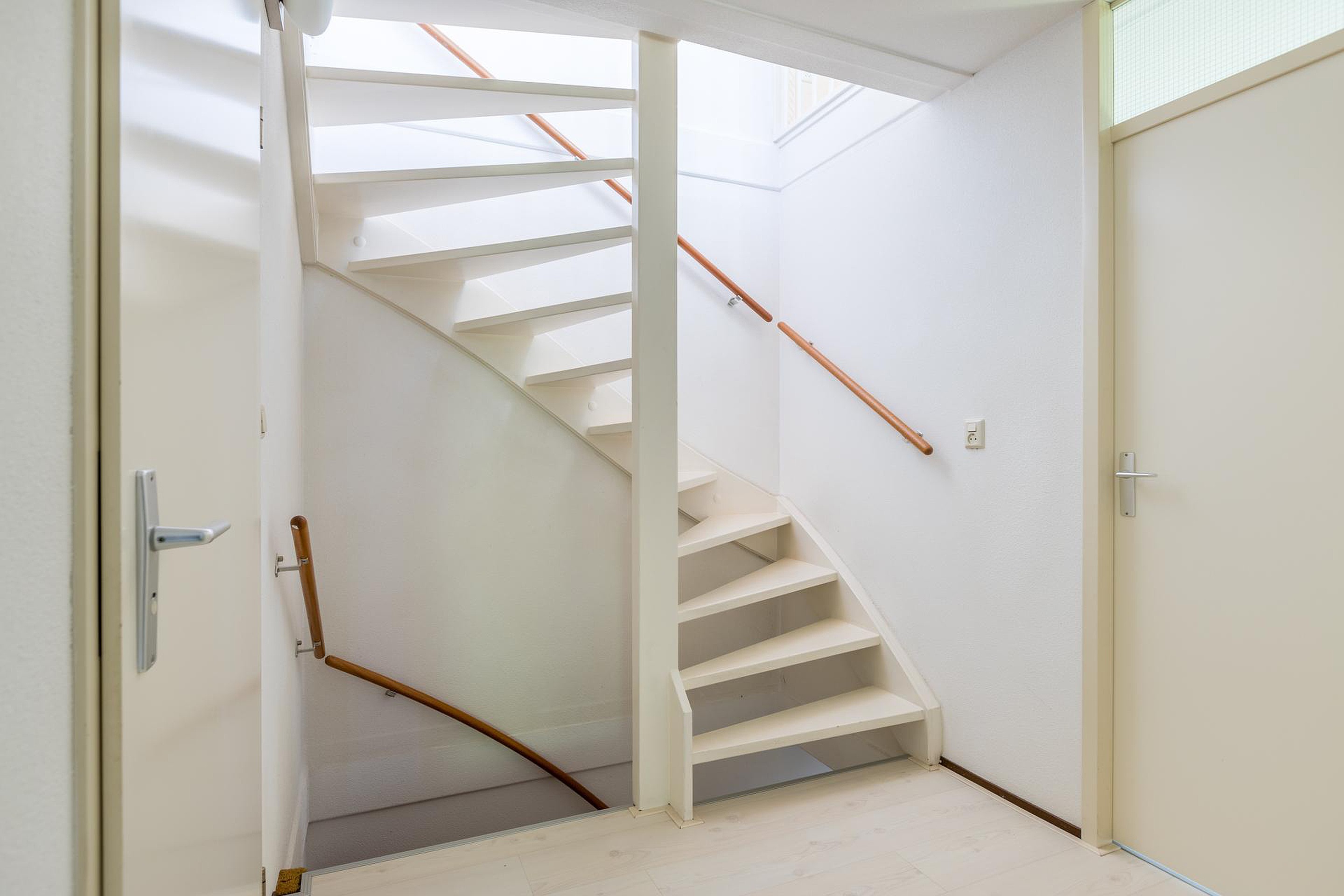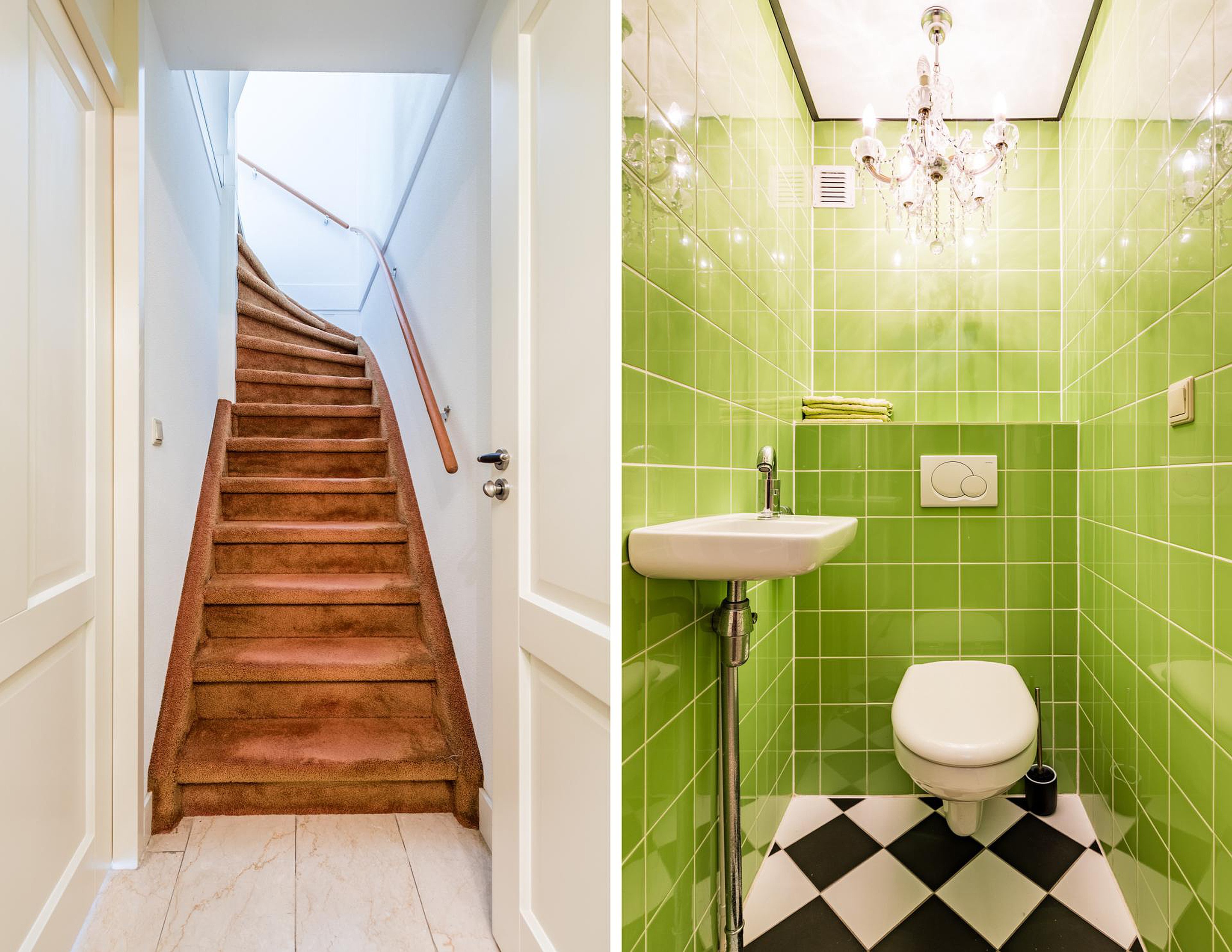 Op de begane grond ligt een natuurstenen vloer en deels parket, beide voorzien van vloerverwarming. Vanuit de woonkamer bereik je via een deur de trapopgang naar de eerste verdieping. Achter deze deur bevindt zich tevens het eerste toilet.