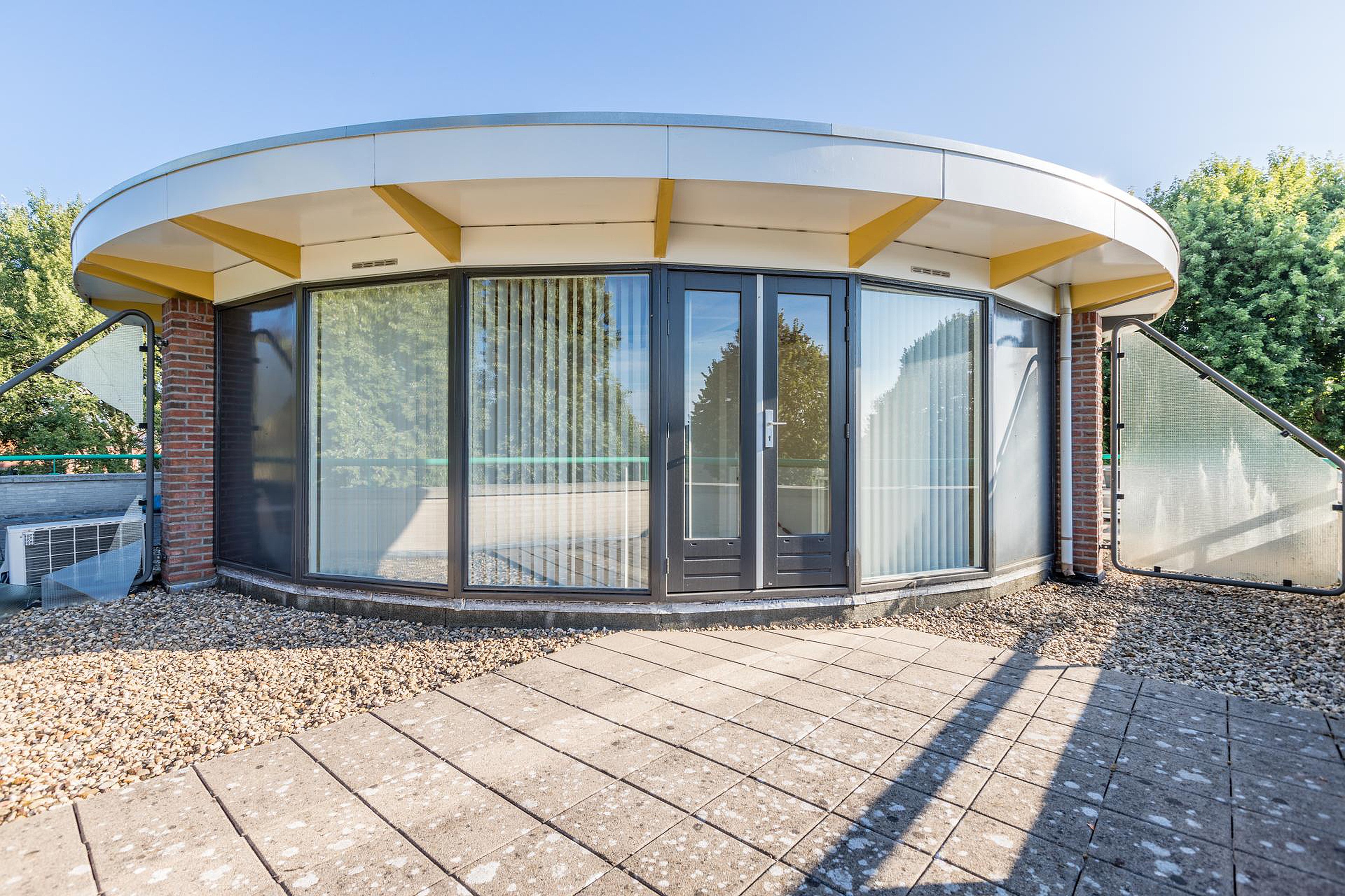Via openslaande deuren is er toegang tot het dakterras. Vanaf het dakterras heb je vrij uitzicht en door de ligging op het zuiden kun je hier volop genieten van de zon.