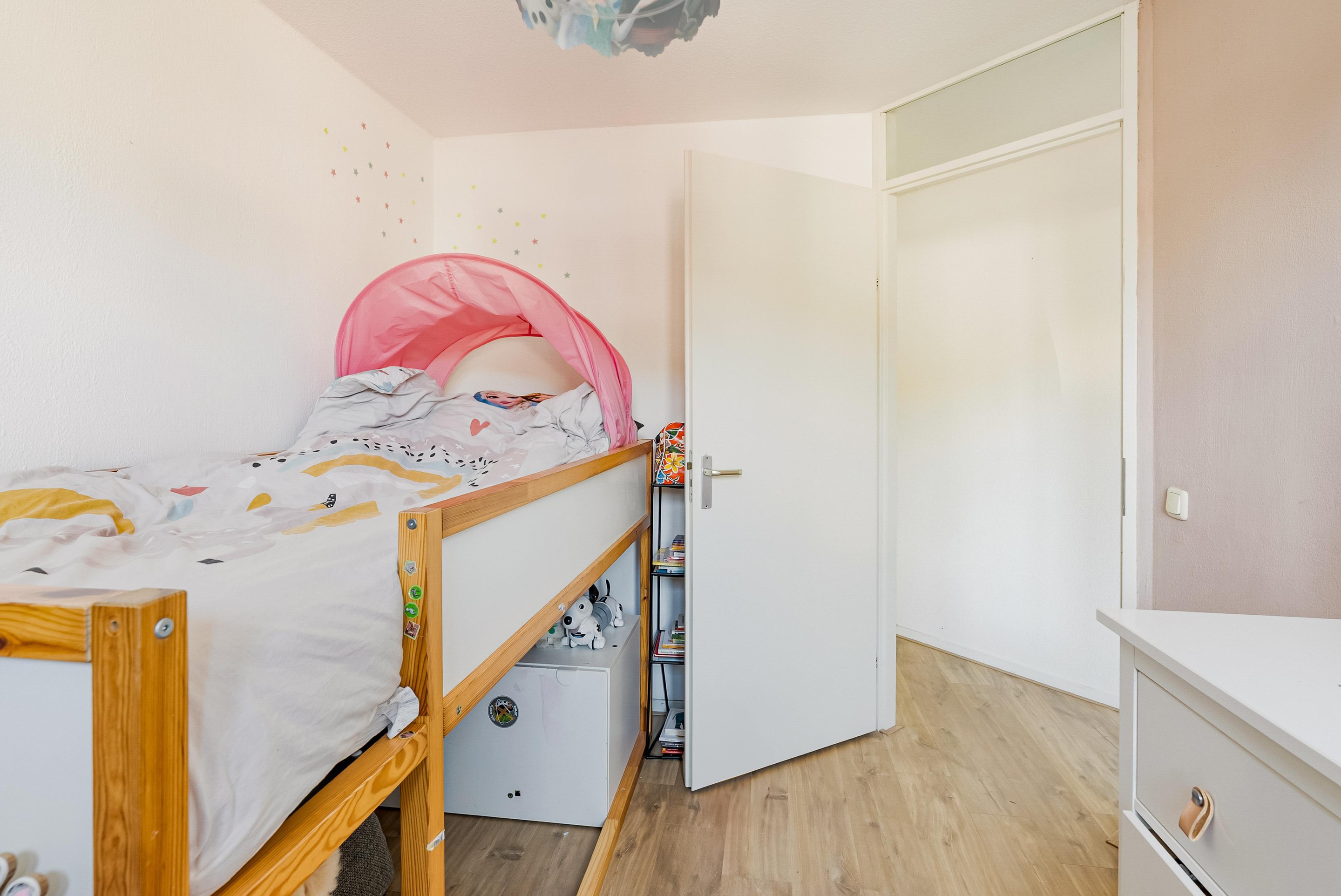 De omgeving rondom de Couperusweg 27 is uitermate gunstig. Gelegen in een rustige woonwijk, heb je alle voorzieningen binnen handbereik. Op fietsafstand vinden we een supermarkt en een klein winkelcentrum voor alle dagelijkse boodschappen. Voor gezinnen met kinderen zijn er diverse scholen in de nabijheid. Wat betreft de bereikbaarheid, de uitvalswegen zijn gemakkelijk bereikbaar: je bent binnen 5 minuten op de A6, met directe verbindingen naar de A27 en A1. Daardoor ben je zeer snel in het hart van de stad of op weg naar het prachtige natuurgebied in de omgeving.