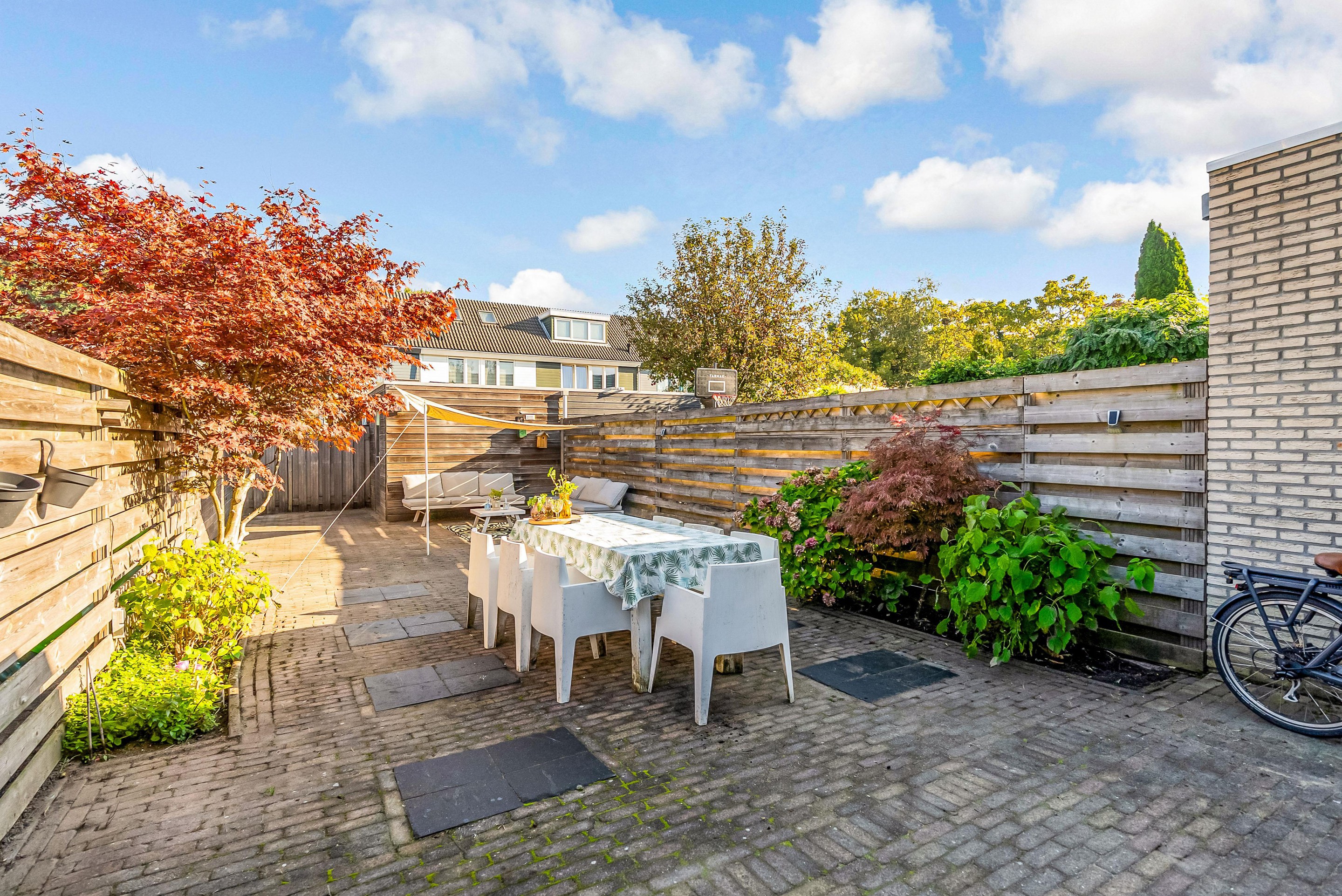 De grote tuin biedt tal van mogelijkheden voor zowel ontspanning als entertainment. Profiteer van de zon op het terras, of maak een heerlijke BBQ-avond met vrienden en familie. De tuin is ook perfect voor kinderen om veilig te spelen. De tuin is voorzien van enkele groene borders en is erg diep. In de tuin staat een vrijstaande houten berging.
