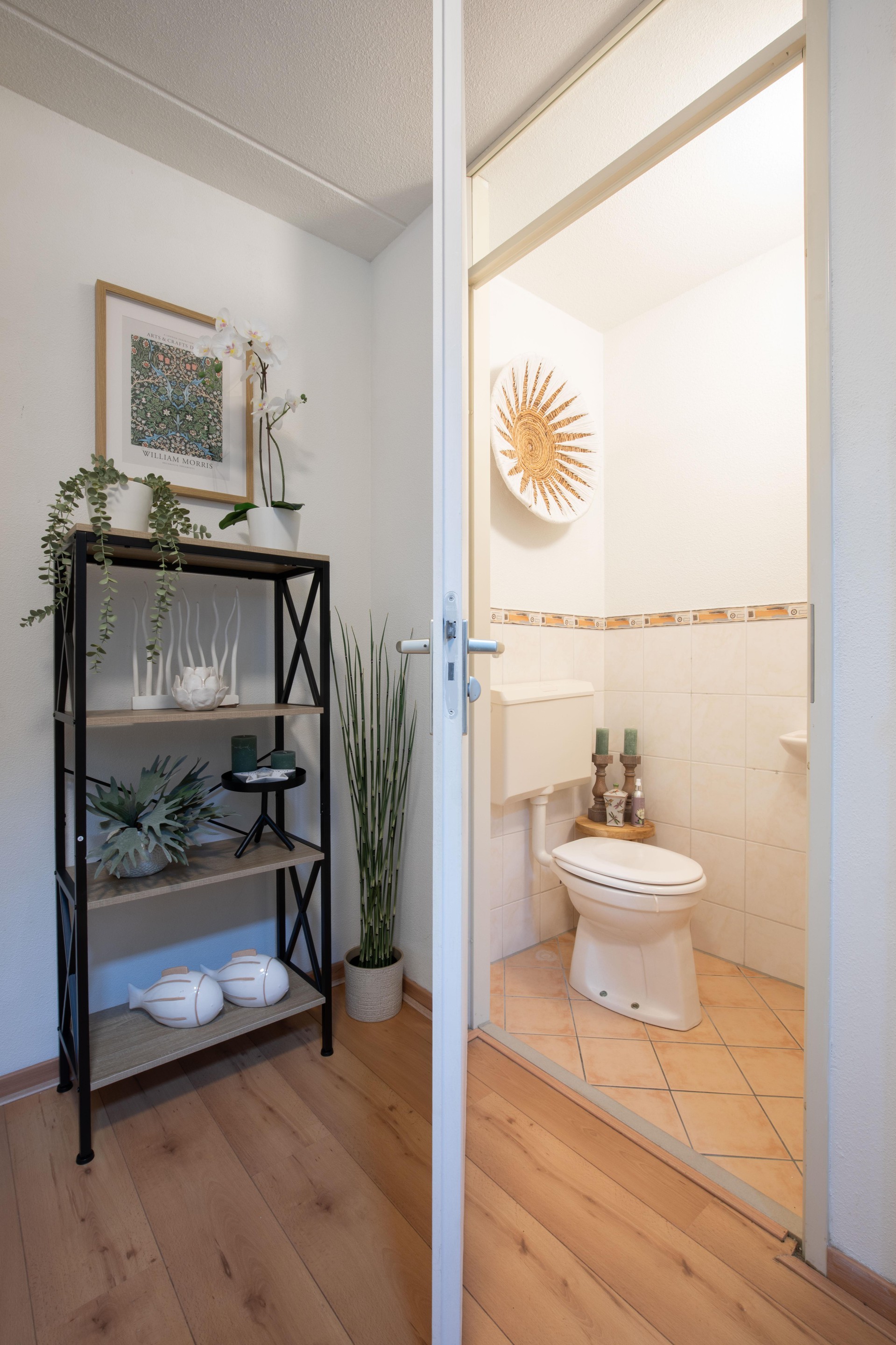 Begane grond Ruime hal met trapkast, meterkast, toilet en trapopgang naar de eerste verdieping.