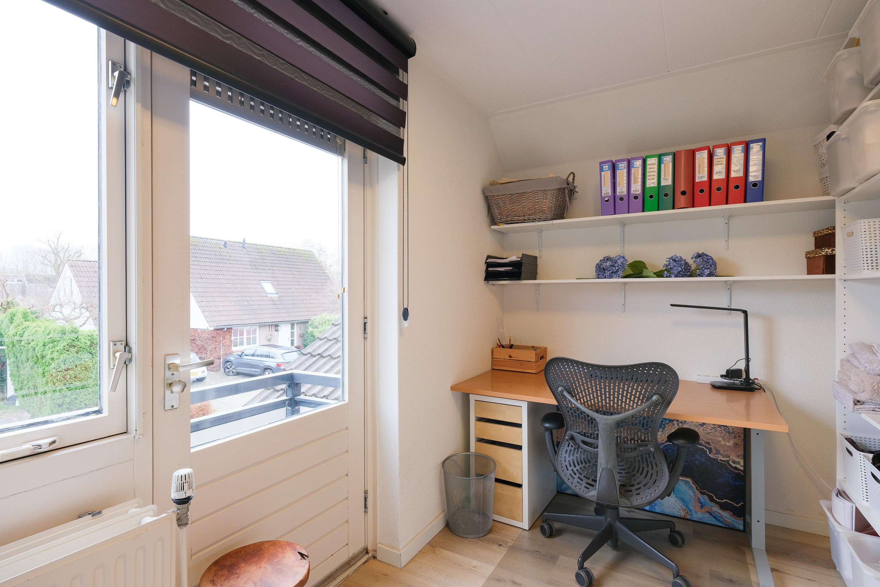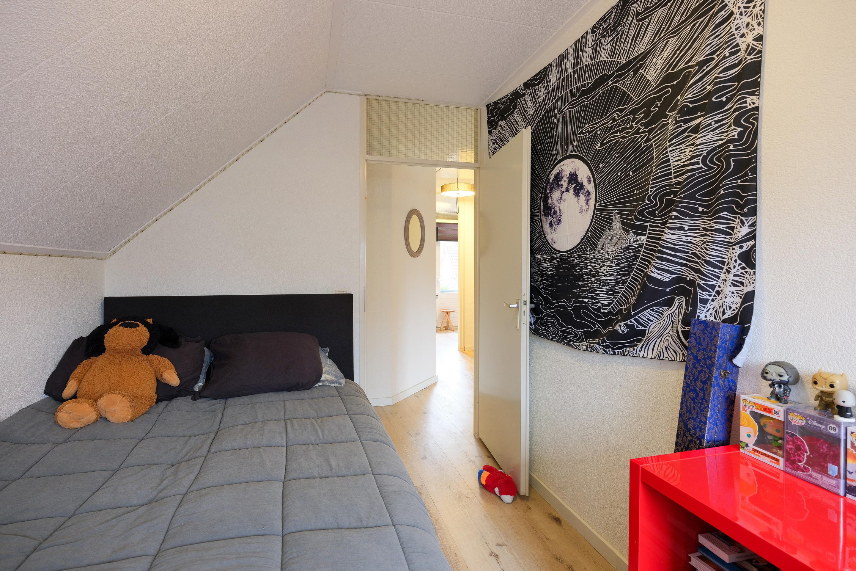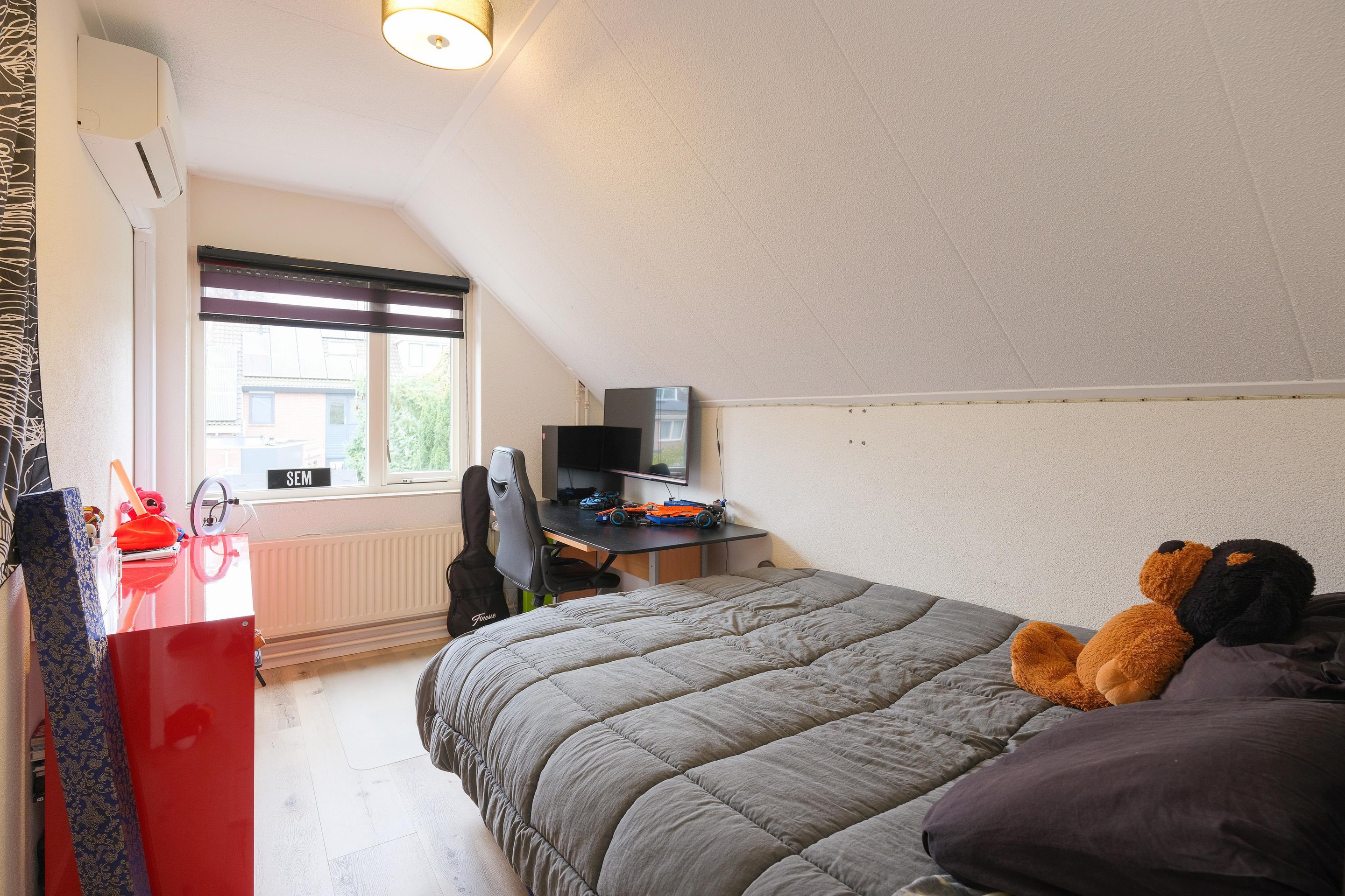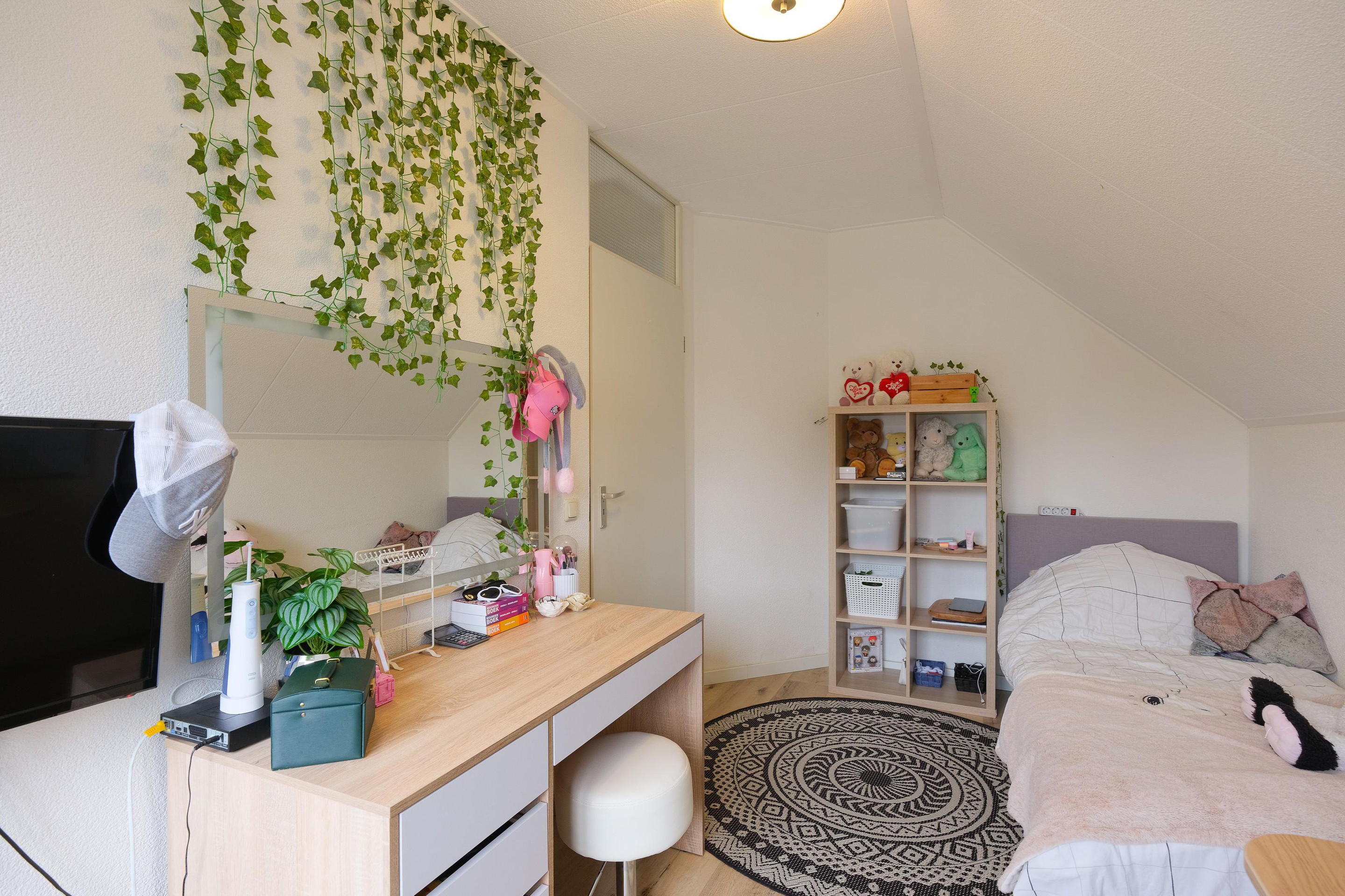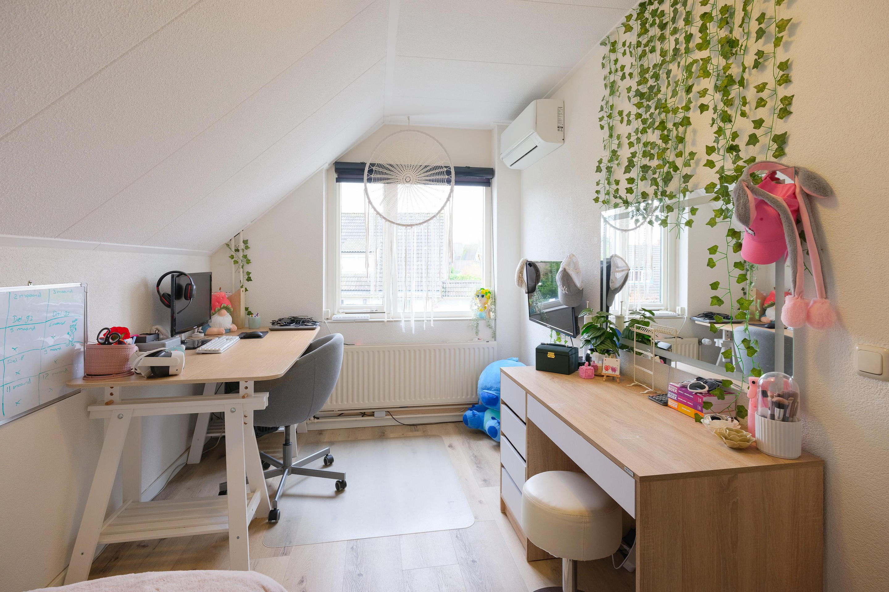 Eerste verdieping De L- vormige overloop geeft toegang tot vier slaapkamers van goed formaat waarvan 1 met een klein balkon en een goede, moderne badkamer (2024) met inloopdouche, een luxe wastafelmeubel met verwarmde spiegel, 2e vrij hangend toilet, een designradiator en elektrische vloerverwarming. De badkamer is volledig betegeld in fraaie kleurstelling. De drie grootste slaapkamers zijn voorzien van airconditioning. Er is een aparte bergruimte waar de CV-ketel (2021) en mechanische ventilatie unit zijn geïnstalleerd. De gehele vloer van de verdieping is voorzien van een PVC vloer. Vanaf de overloop is via een luik met vlizotrap de bergzolder bereikbaar. Een ideale plaats voor het opbergen van spullen welke u niet dagelijks nodig heeft. De bergzolder loopt over de volledige lengte van het huis, is bijna 4 meter breed en heeft een nokhoogte van 1,22 meter.