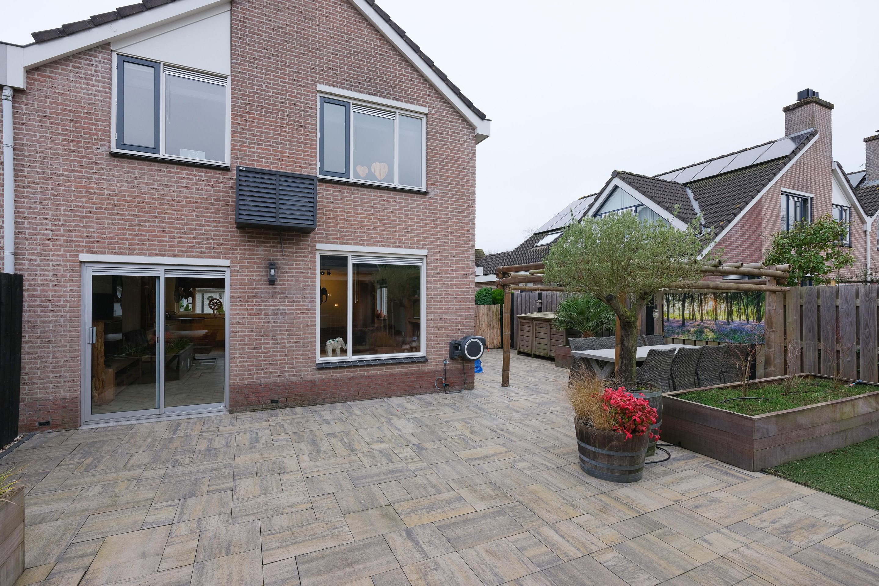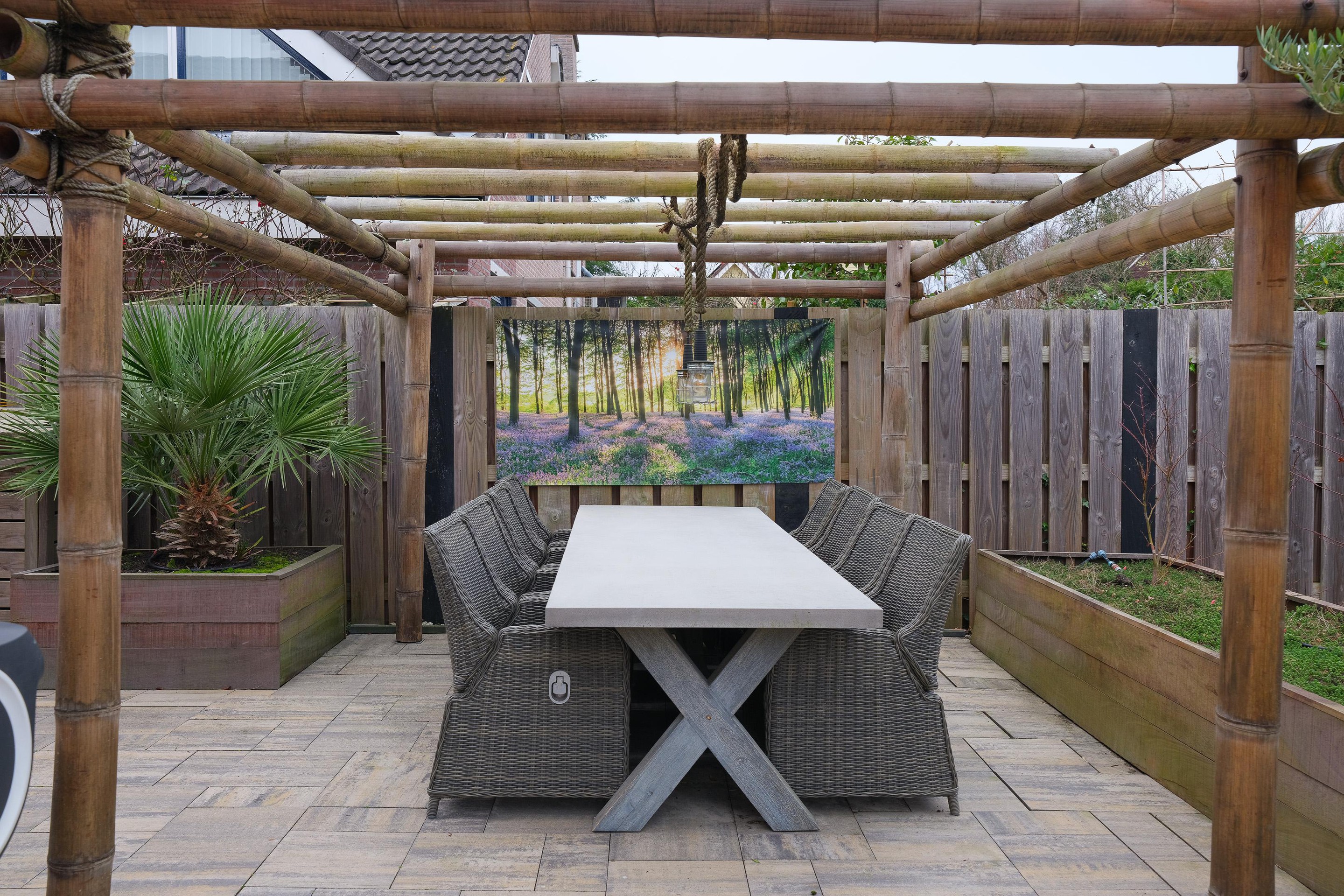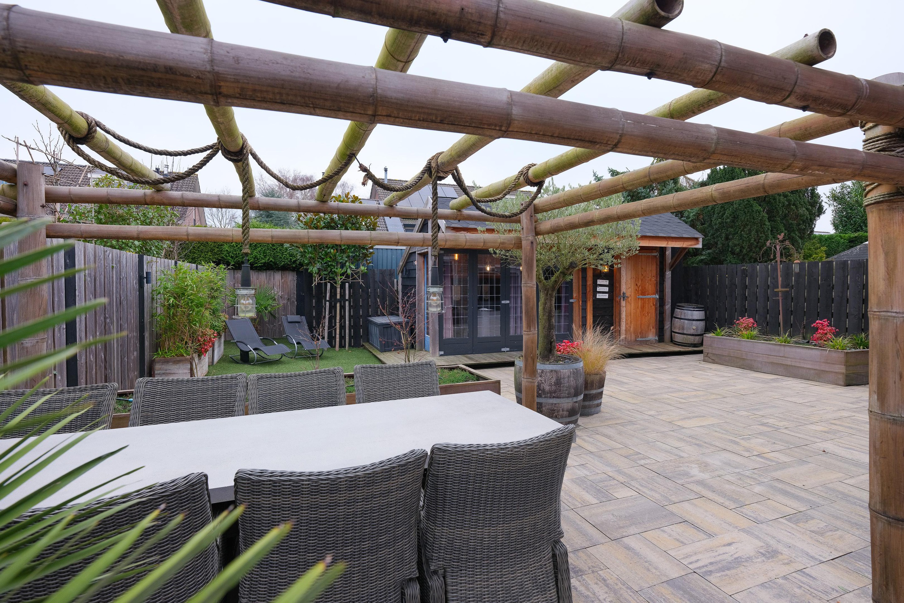Tuin De buitenruimte is eveneens netjes afgewerkt. De achtertuin (noordwesten) heeft een fraaie omheining op de perceelgrenzen en is voldoende diep en breed om op ieder moment van de dag te genieten van de zon of juist even van de schaduw te genieten. Aan de achterzijde wordt de tuin begrensd door overkapping met tuinkamer en een aangebouwde berging. De tuin is grotendeels bestraat maar verrijkt met fraaie “groene” accenten.