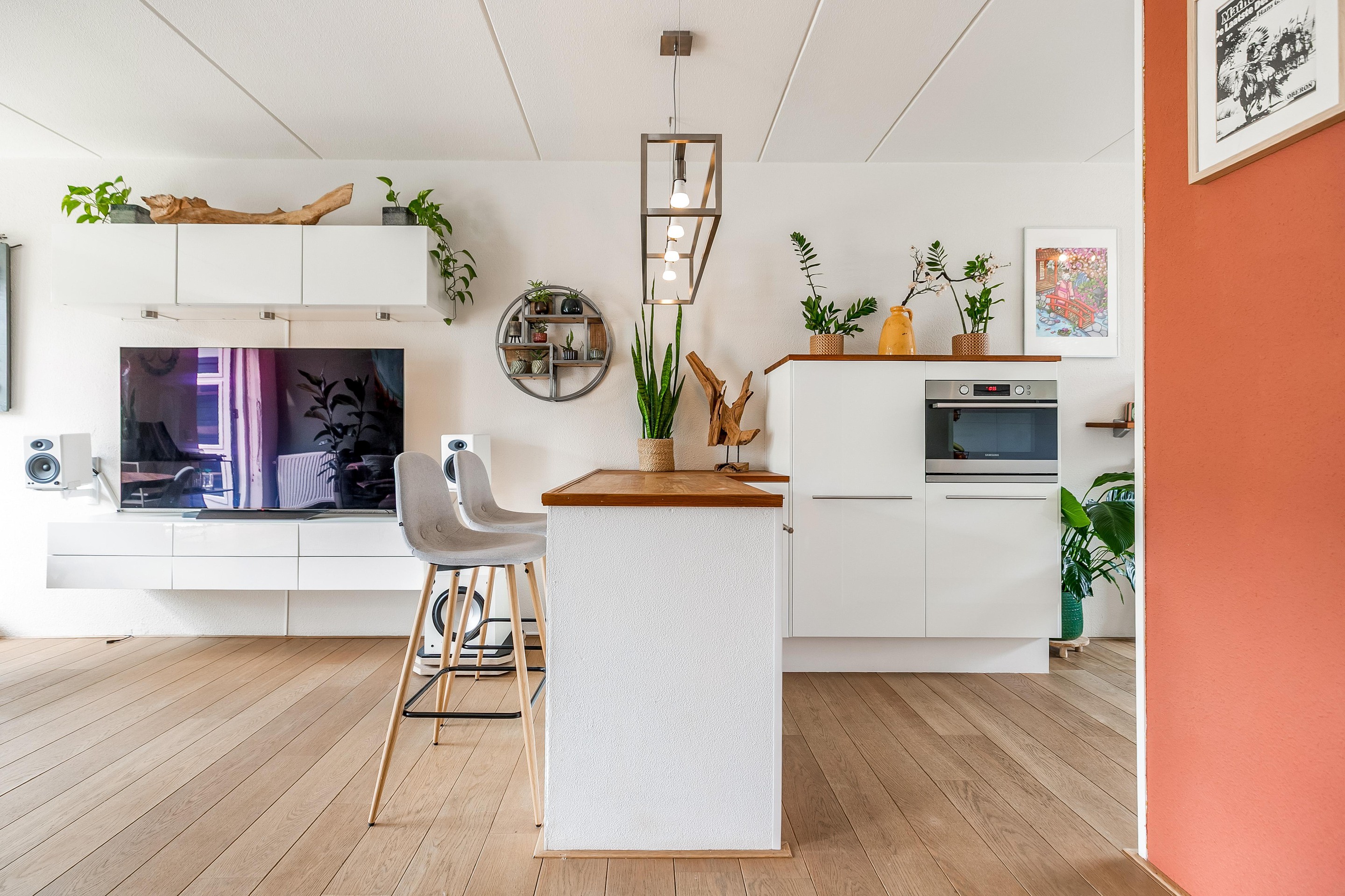 Bij binnenkomst in de woning word je verwelkomd in een lichte en sfeervolle hal die toegang biedt tot de verschillende vertrekken. De ruime woonkamer heeft veel daglicht dankzij de grote ramen en biedt volop ruimte voor gezellige zithoeken en een eettafel. De open keuken is modern ingericht en van alle gemakken voorzien, ideaal voor de kookliefhebber. En het barretje, maakt de keuken nét iets specialer.