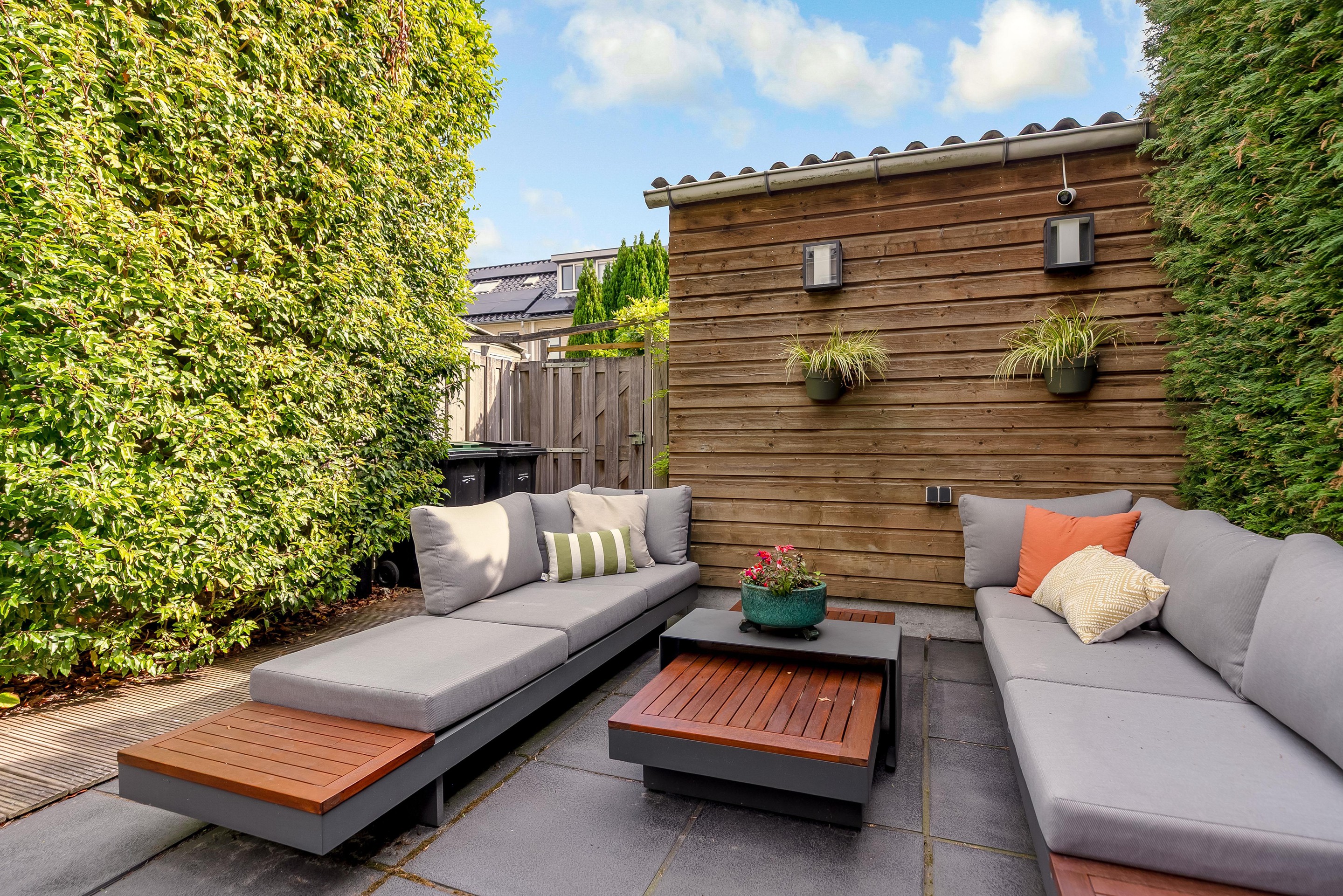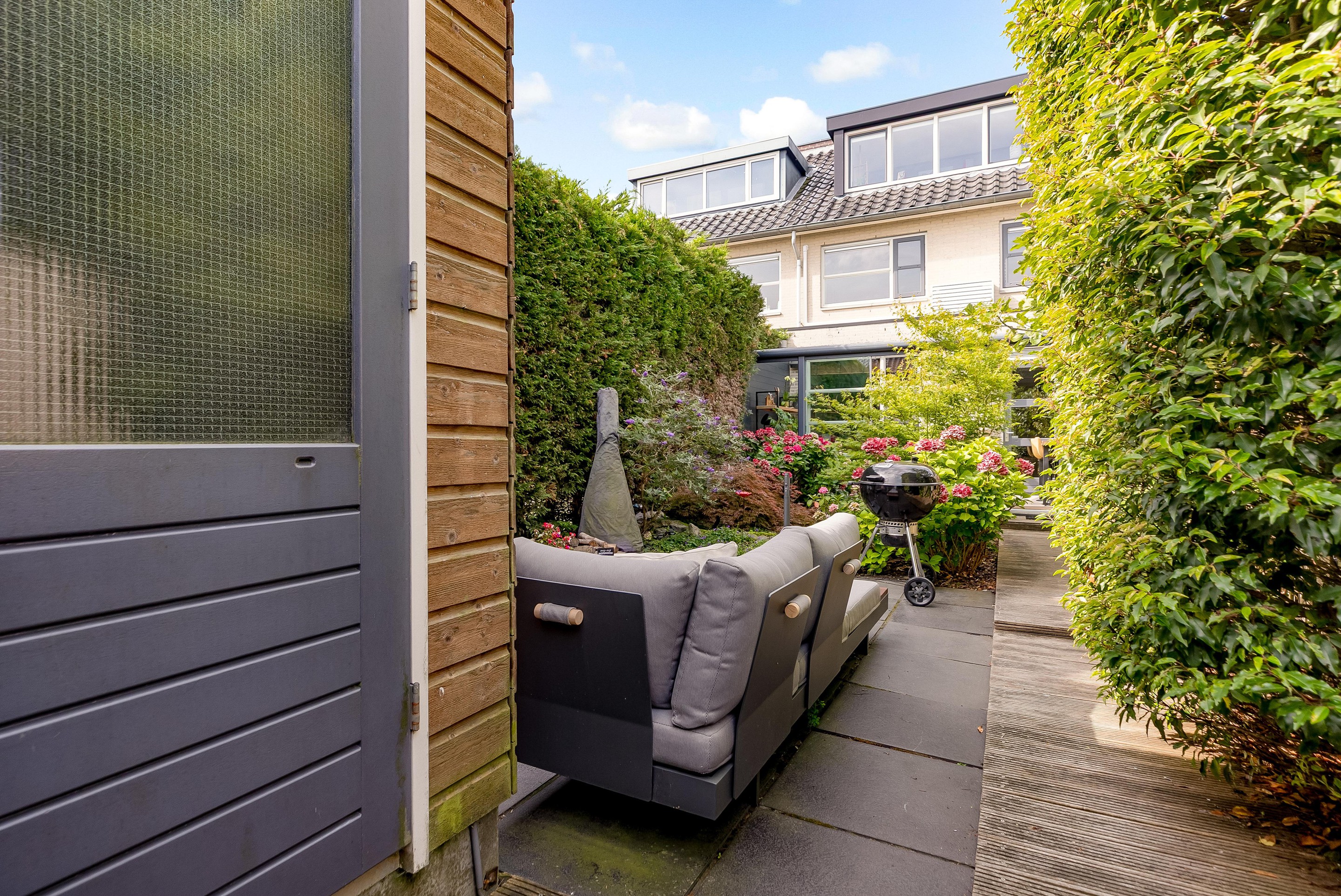 Laten we verdergaan naar de tuin. De op het noordoost gelegen tuin is een ware oase van rust en biedt de perfecte plek om in de zon te relaxen of te genieten van een barbecue met vrienden en familie. De serre, die in 2021 is geplaatst, biedt extra ruimte en kan fungeren als een knusse loungehoek of plek om lekker van de tuin te genieten als het regent. Achter in de tuin is uiteraard nog een berging aanwezig.