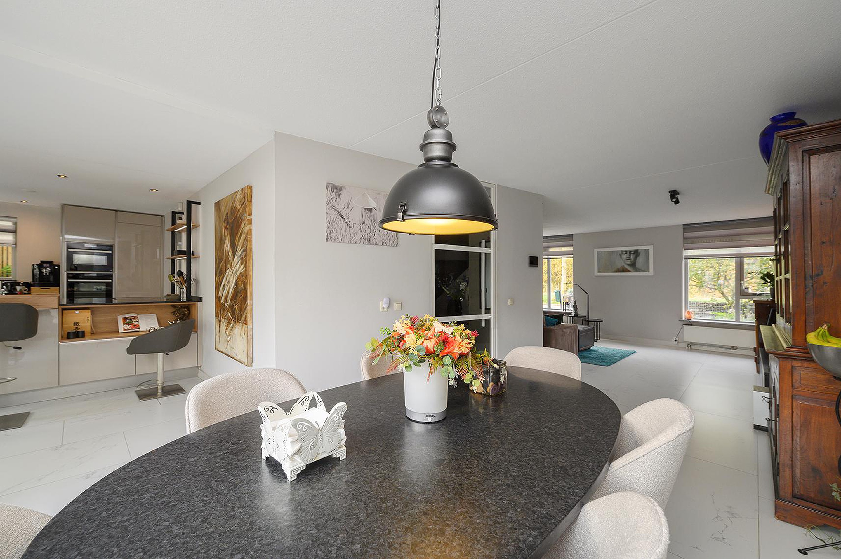 LUXE GERENOVEERDE TWEE ONDER EEN KAP WONING MET UITZICHT OP HET GROEN, 160 M2 WOONPLEZIER IN EEN OASE VAN RUST.
