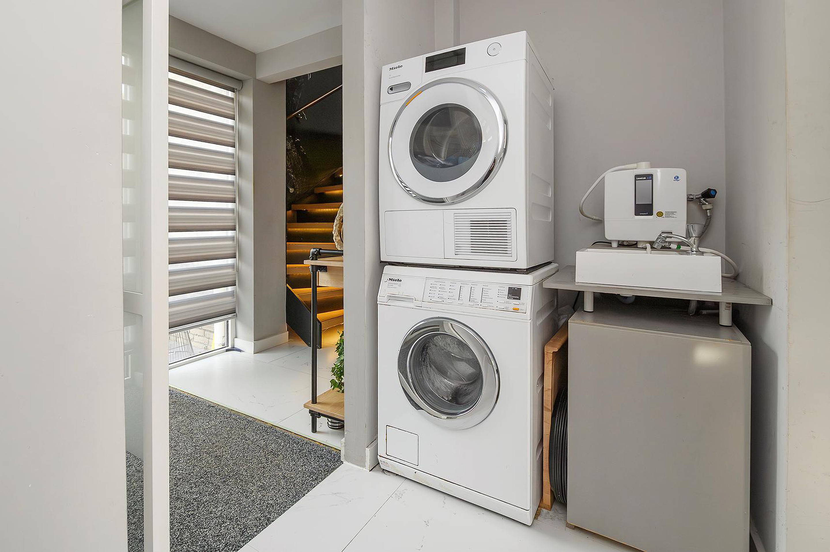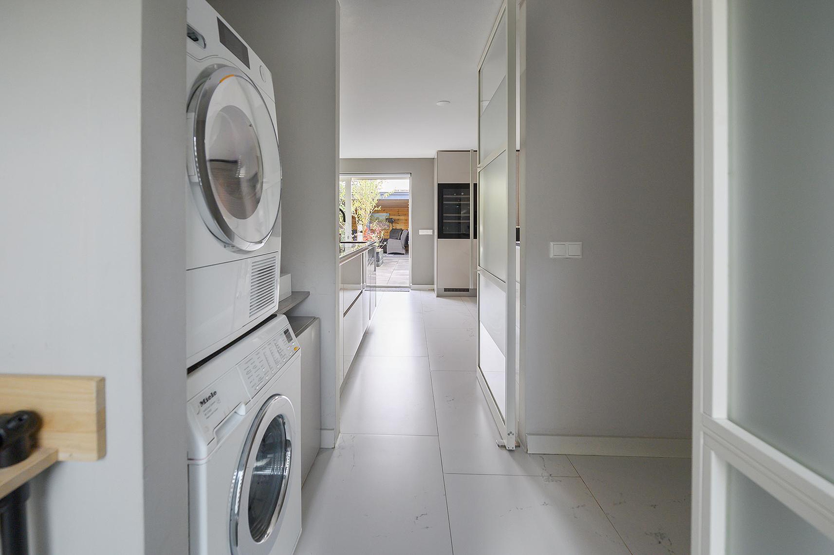 - Laundry room with space for a washing machine and dryer, a sink and the possibility to install an extra refrigerator.