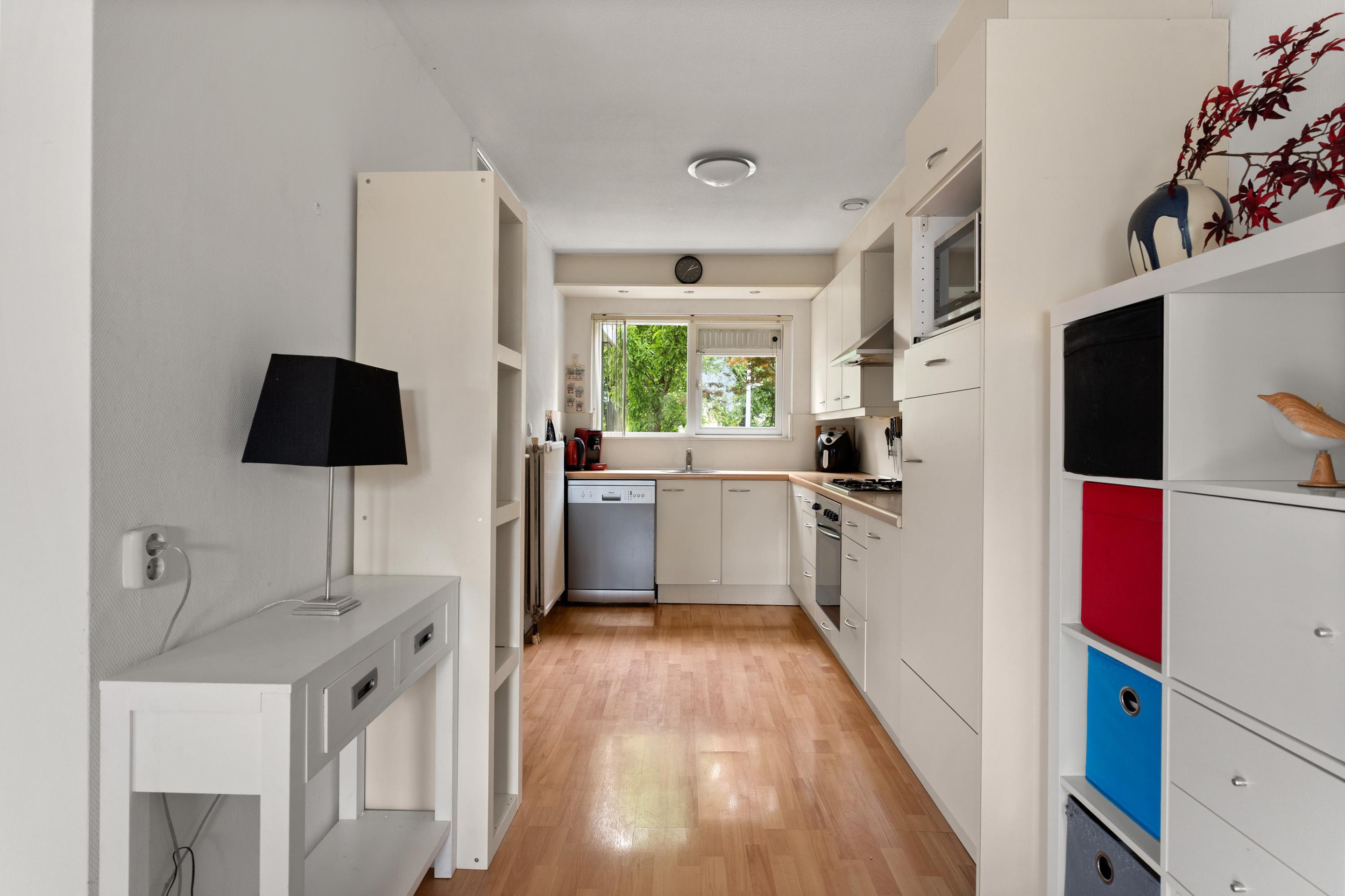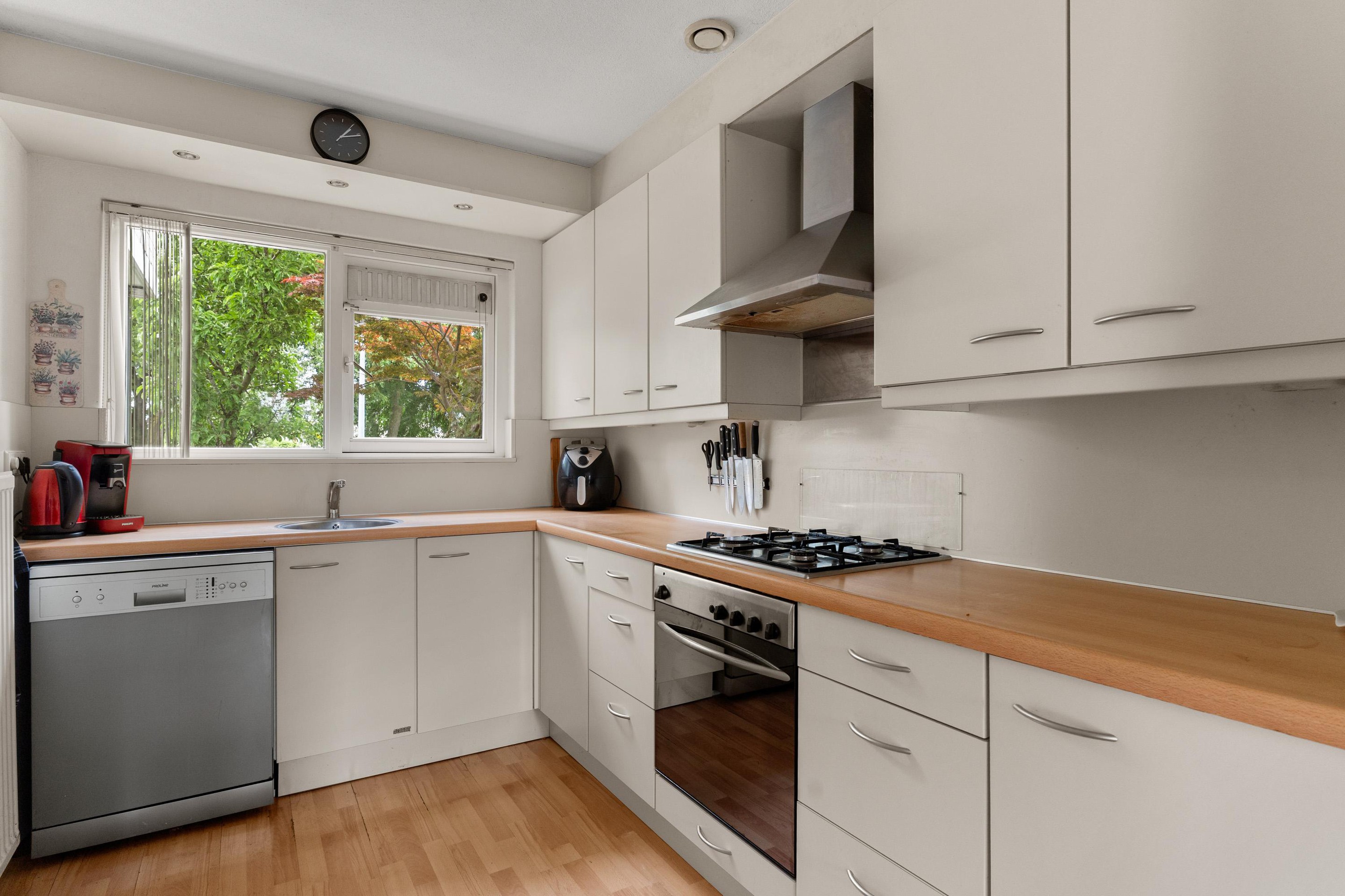 Begane grond De overdekte entree met voordeur biedt toegang tot de woning. In de hal bevinden zich de meterkast, het toilet met fonteintje en de toegang tot zowel de keuken als de woonkamer. De woonkamer is licht en ruim, voorzien van een open haard en een dubbele aluminium schuifpui naar de tuin. De keuken aan de voorzijde is compleet uitgerust met een oven, gaskookplaat, afzuigkap, vaatwasser en voldoende werk- en bergruimte. De inpandige garage is bereikbaar vanuit de hal en ook van buitenaf (met nieuwe segmentdeur), ideaal als bijkeuken of extra opslagruimte.