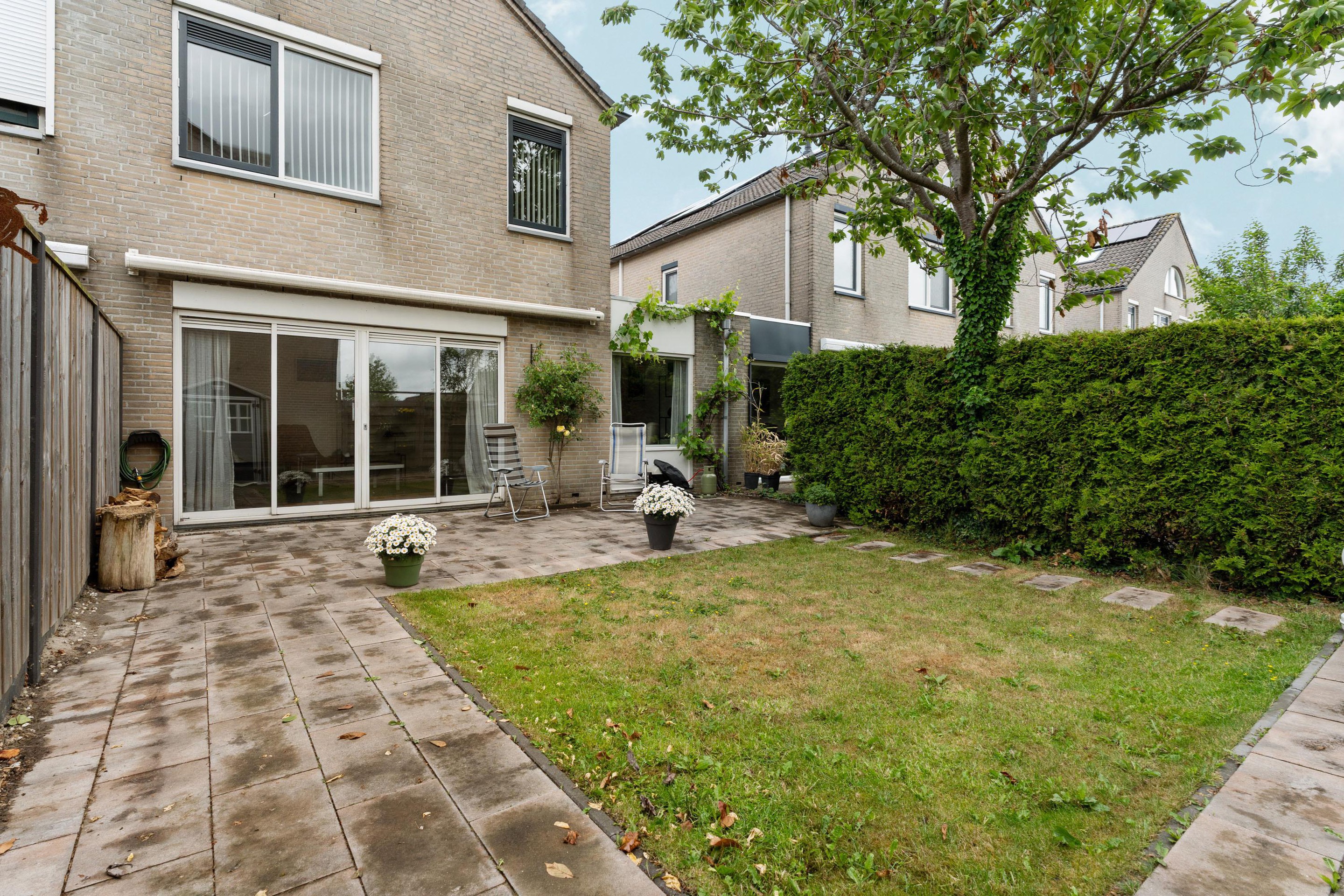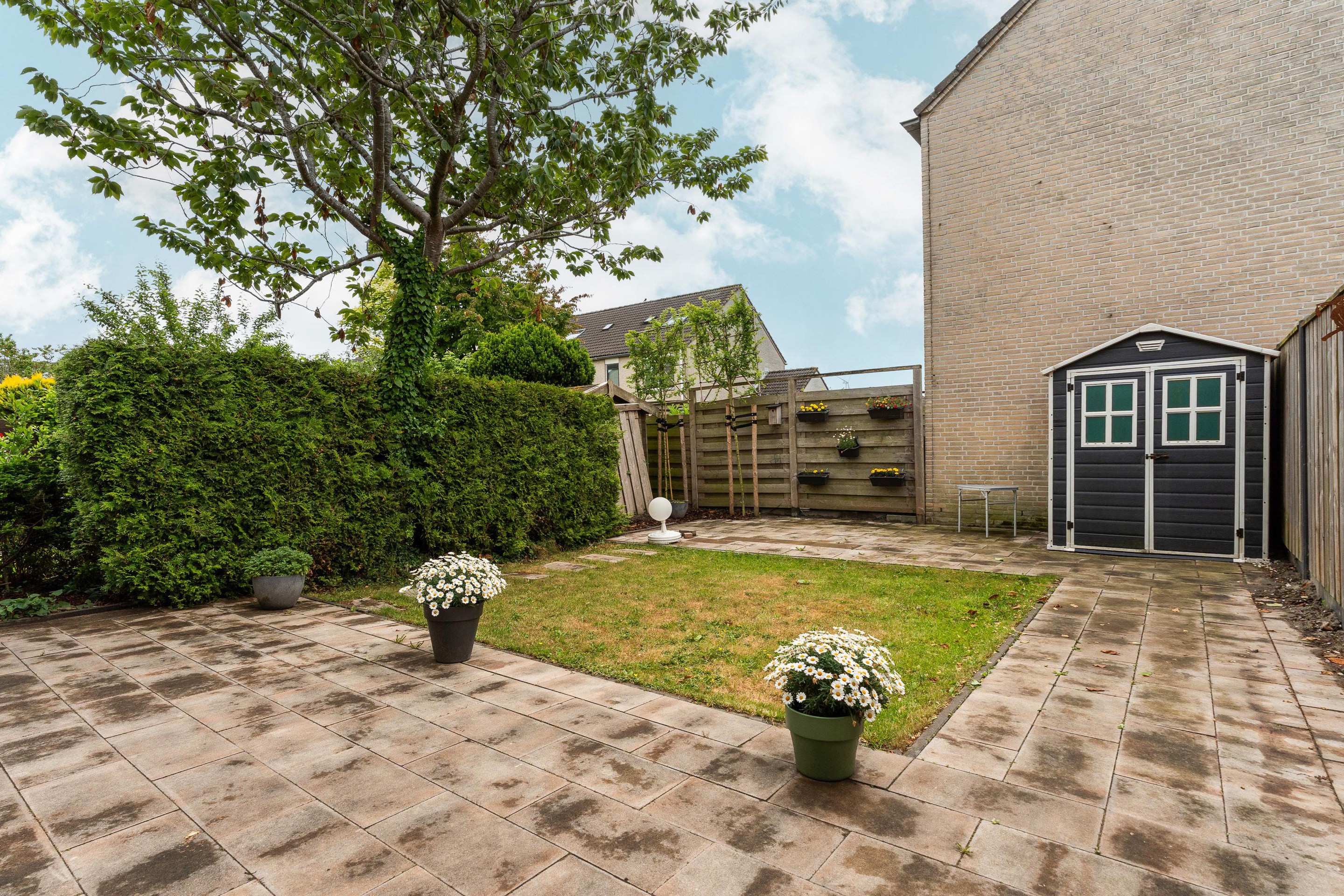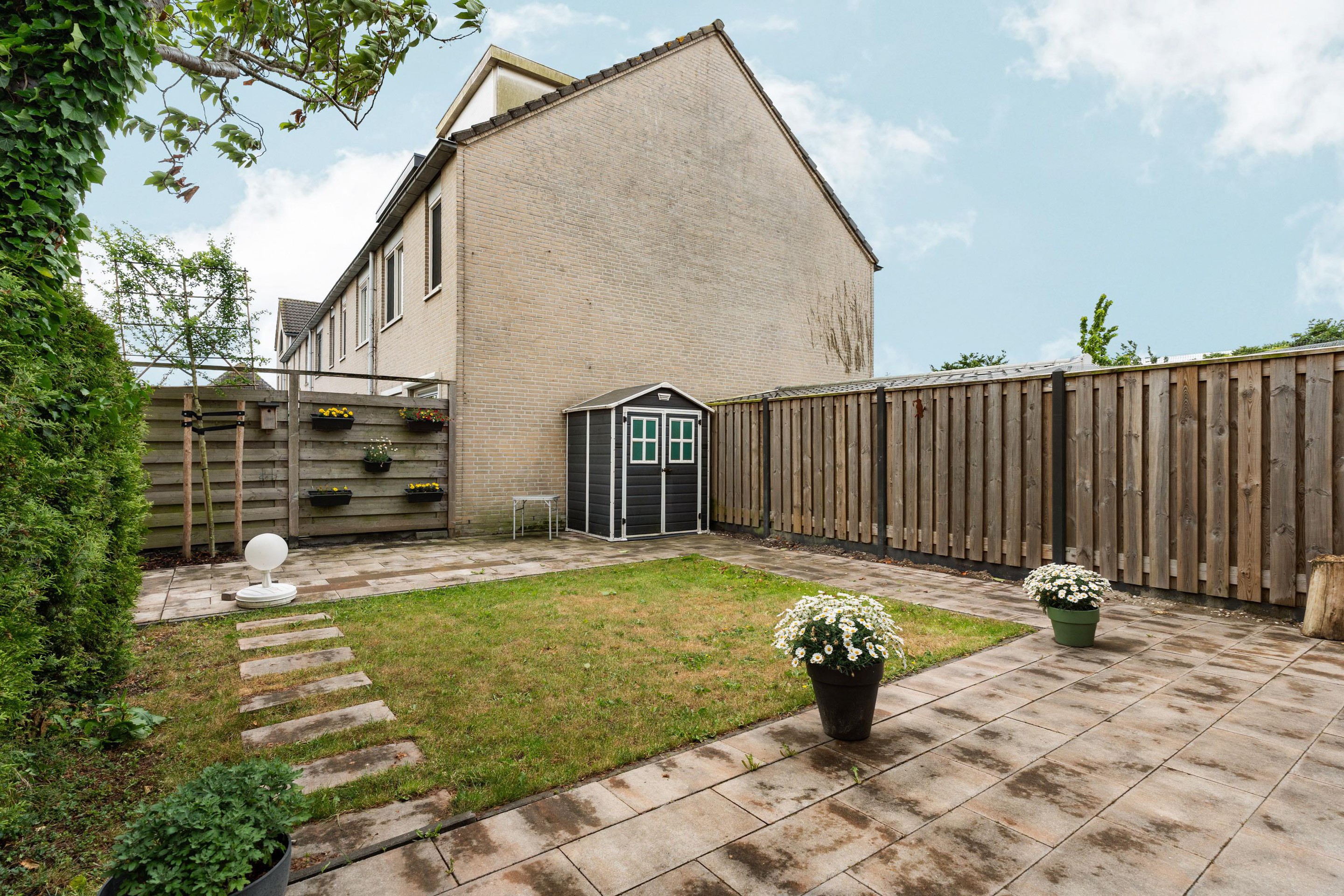 Tuin De ruime achtertuin is gelegen op het zonnige zuidoosten en beschikt over een groot betegeld terras, een gazon, een kunststof berging en een nette erfafscheiding met schutting en haag. Ideaal voor tuinliefhebbers en gezinnen met kinderen.