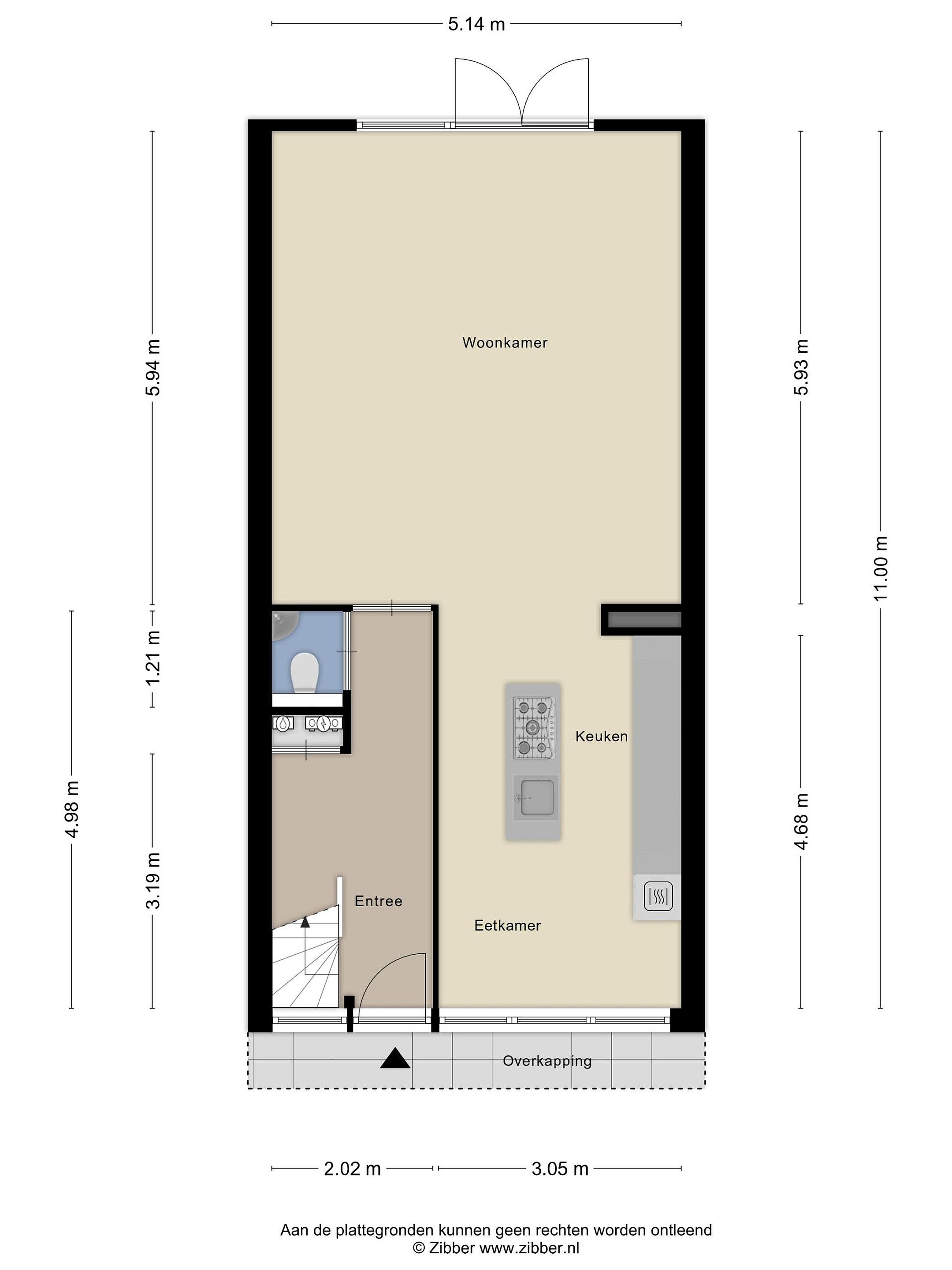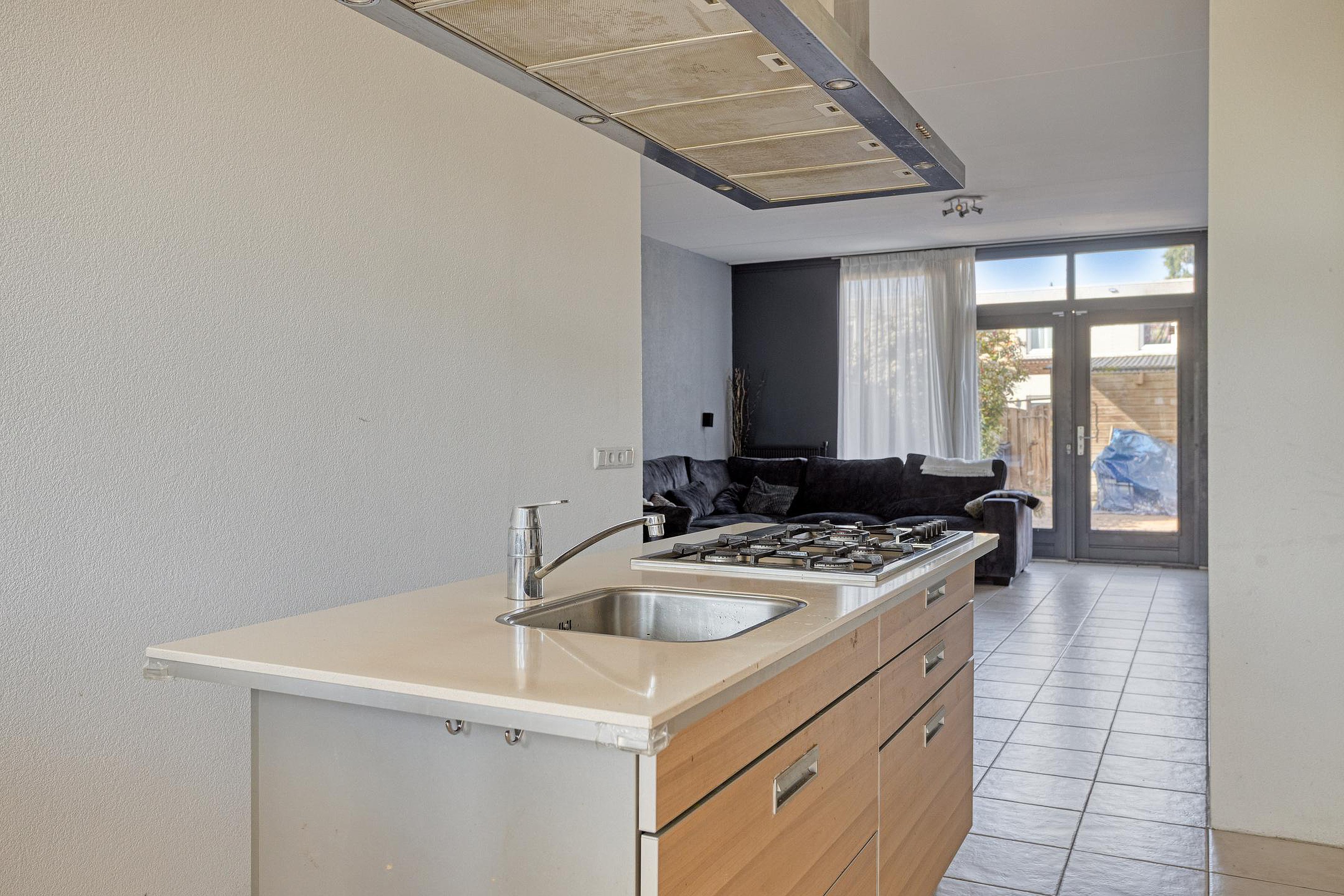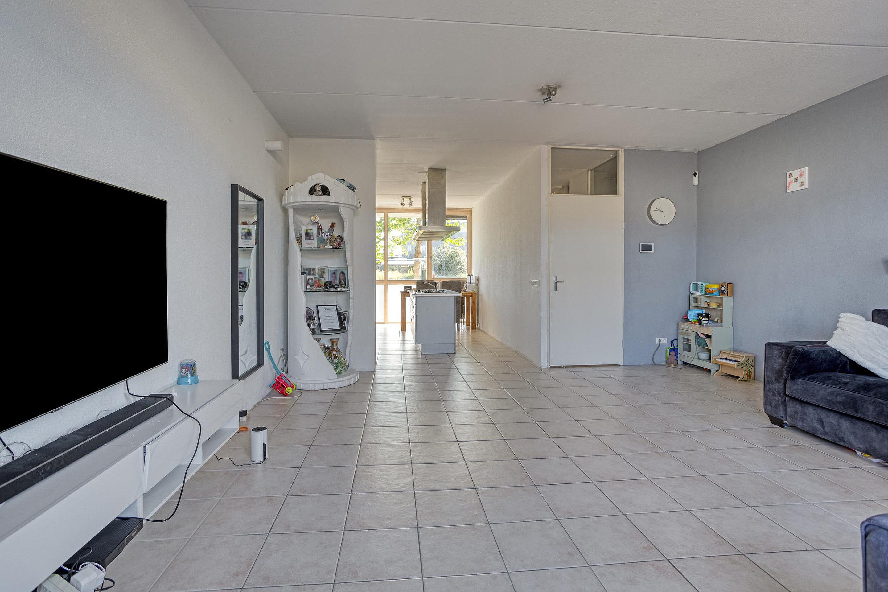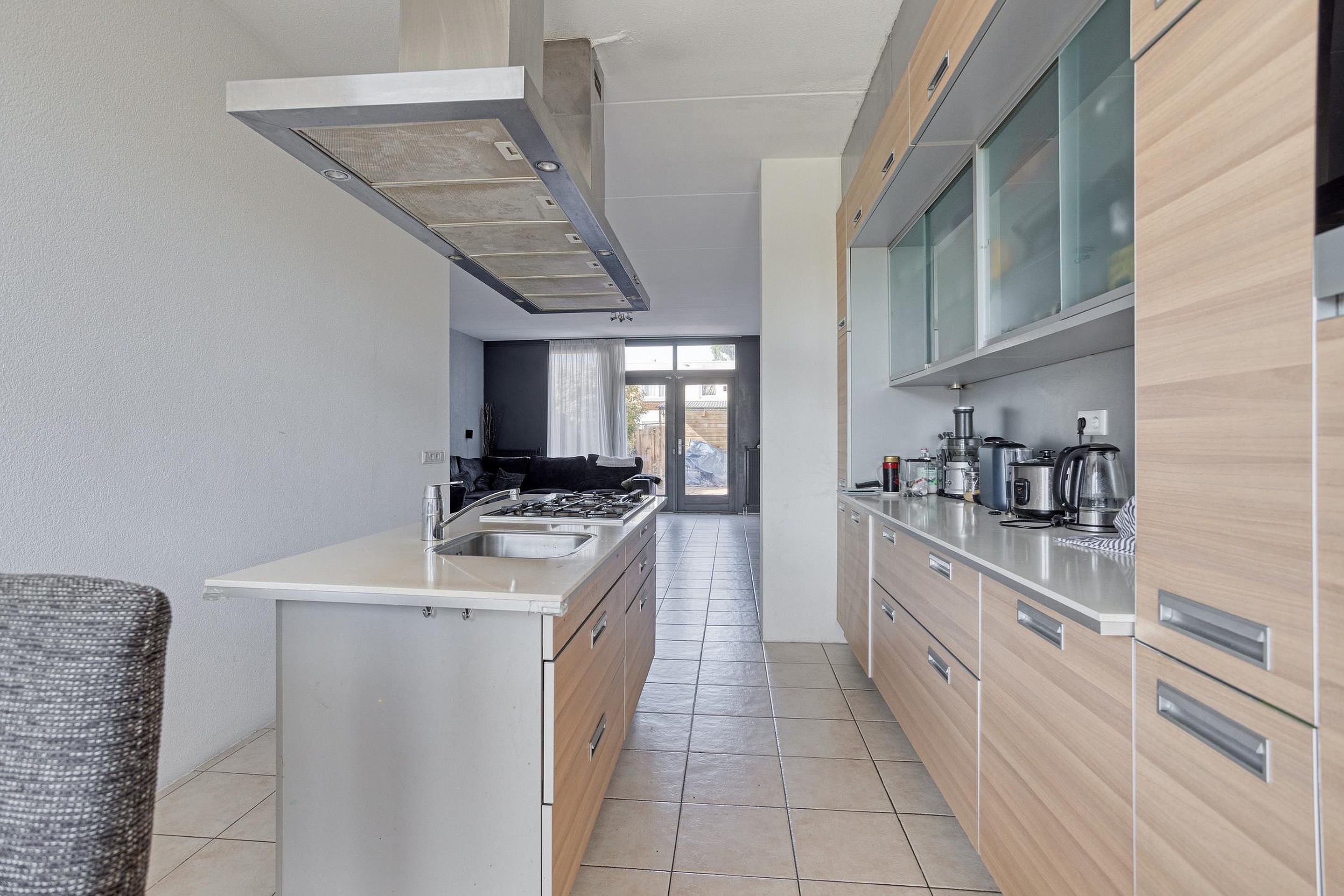 Ruime entree, hal met meterkast, toilet en trapopgang naar de eerste verdieping. Vanuit de hal heeft u toegang tot de ruime tuingerichte woonkamer. Vanuit de lichte en ruime tuingerichte woonkamer heeft u via de openslaande deuren toegang tot de onderhoudsvriendelijk aangelegde achtertuin op het zuidwesten, waar u tot laat in de avonduurtjes nog van de zon kunt genieten. De woonkeuken bevindt zich aan de voorzijde van de woning. De keuken met natuursteen werkblad is voorzien van diverse inbouwapparaten te weten: 5 pits fornuis met oven, koel/- vriescombinatie, afzuigkap, magnetron, koffieapparaat en voldoende bergruimte in onder- en bovenkasten. De gehele begane grond is voorzien van een plavuizen vloer.