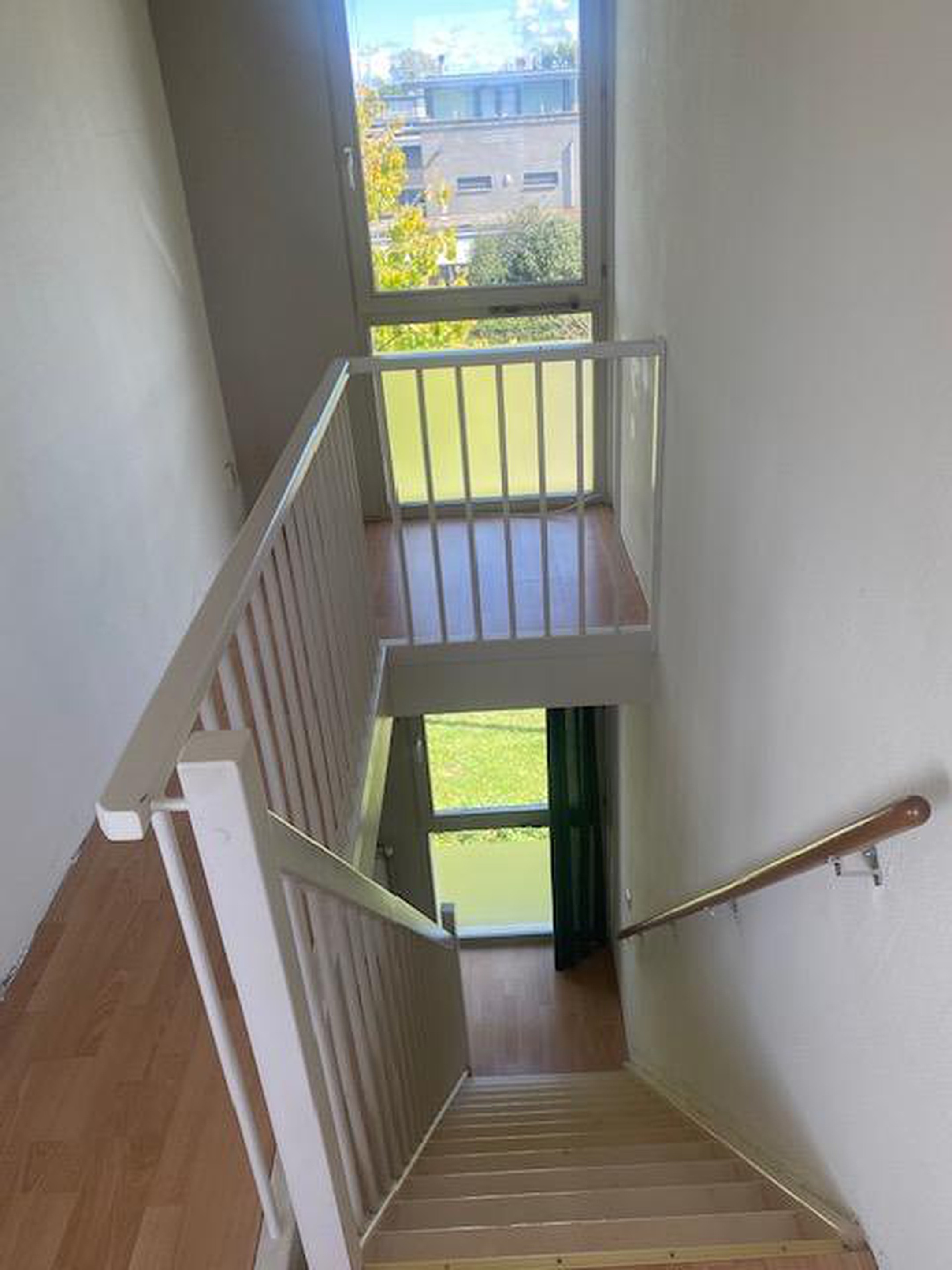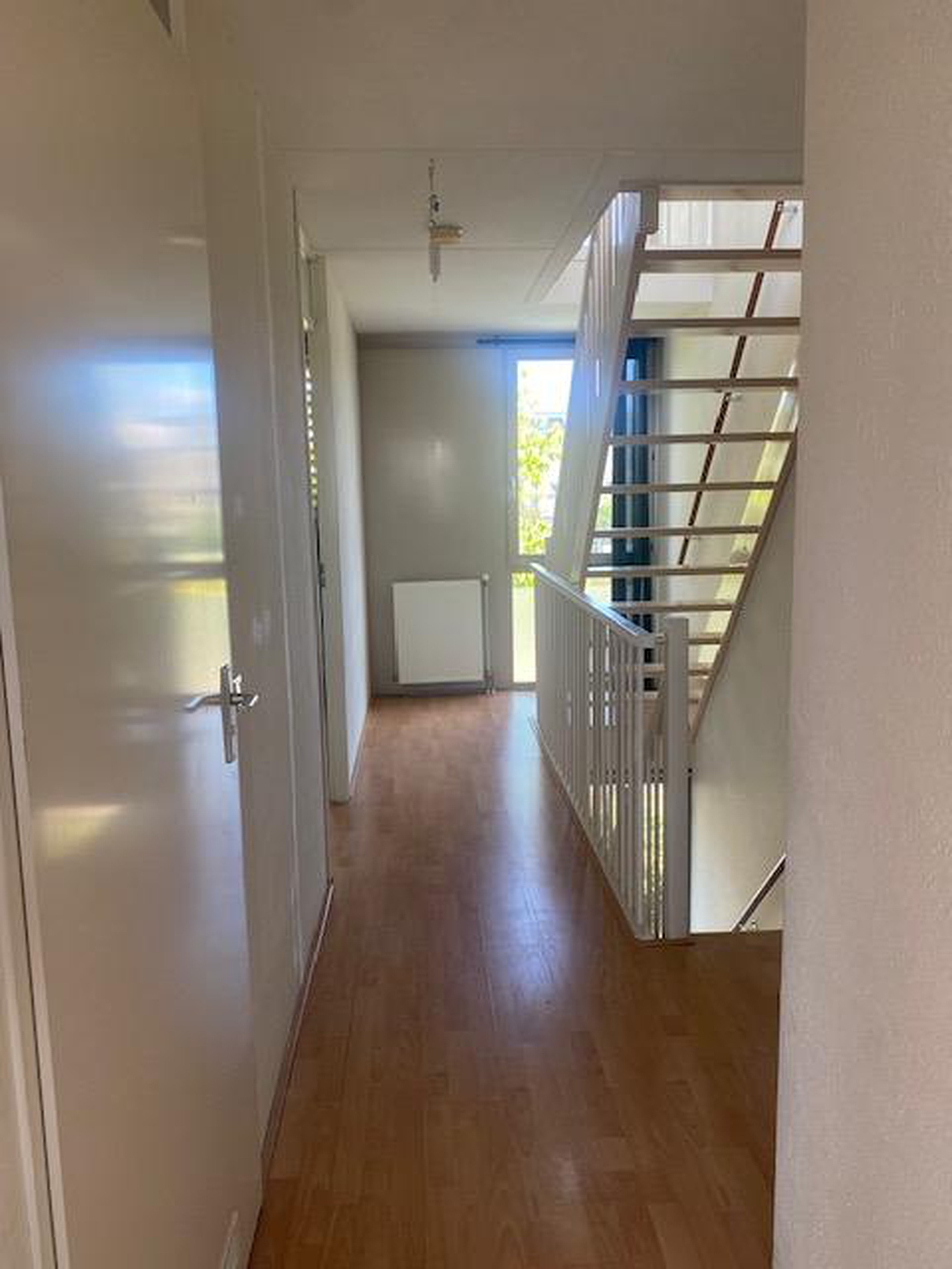 2e verdieping: Via de open trap bereikt u de tweede verdieping. De royale open verdieping wordt gebruikt als een slaapverdieping. Op de verdieping is een ruimte aanwezig, waar zich de opstelplaats voor de CV-combi ketel, de mechanische ventilatie unit en de aansluiting voor wasmachine en droger bevinden. Ook deze verdieping is voorzien van een laminaat vloer.