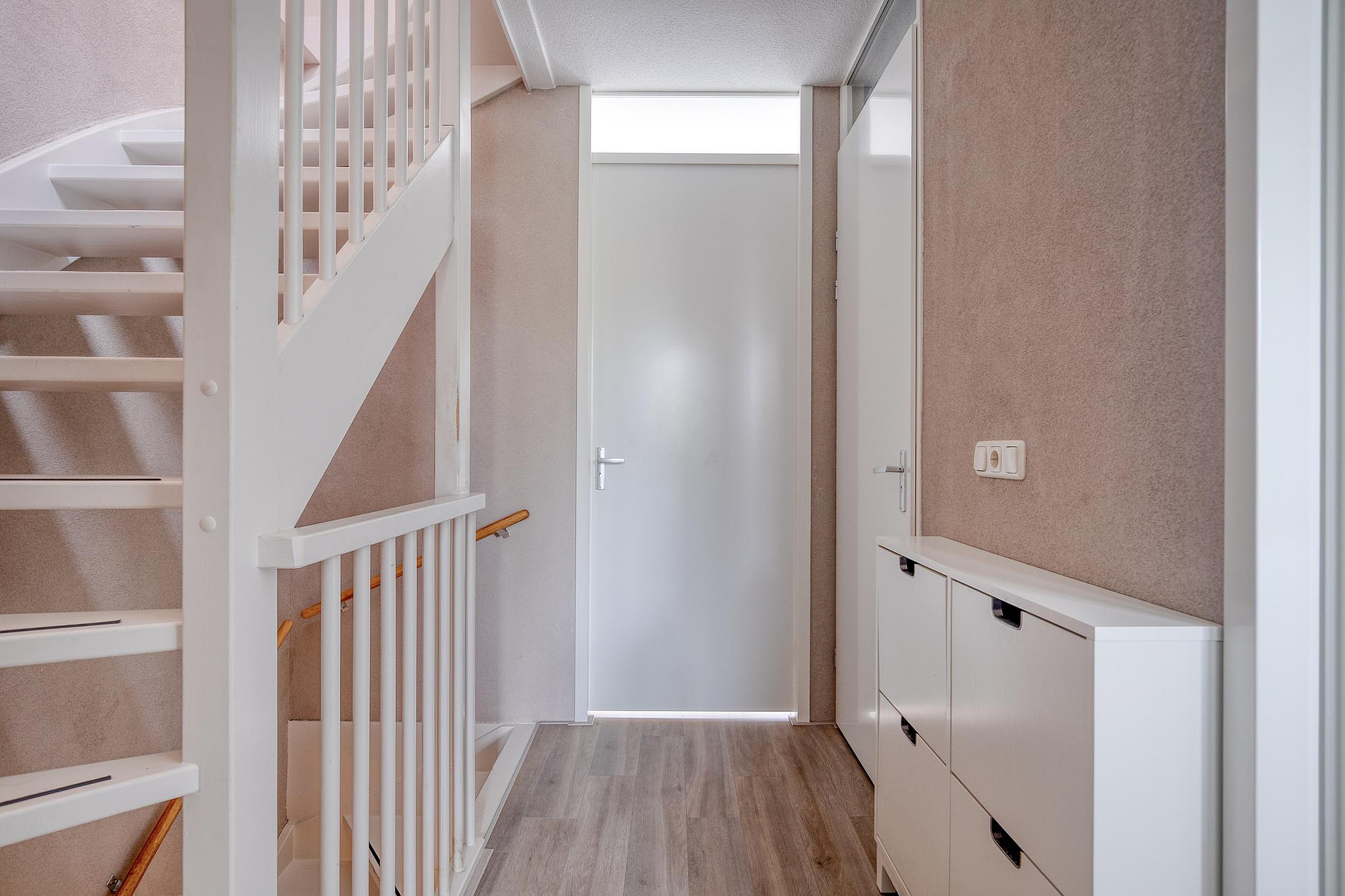 Bij binnenkomst in de entree vindt u een separaat toilet, de trapopgang naar de eerste verdieping en toegang tot zowel de keuken als de lichte, tuingerichte woonkamer. De woonkamer heeft royale raampartijen en beschikt over openslaande deuren naar de achtertuin, waardoor er een prettige verbinding ontstaat tussen binnen en buiten.