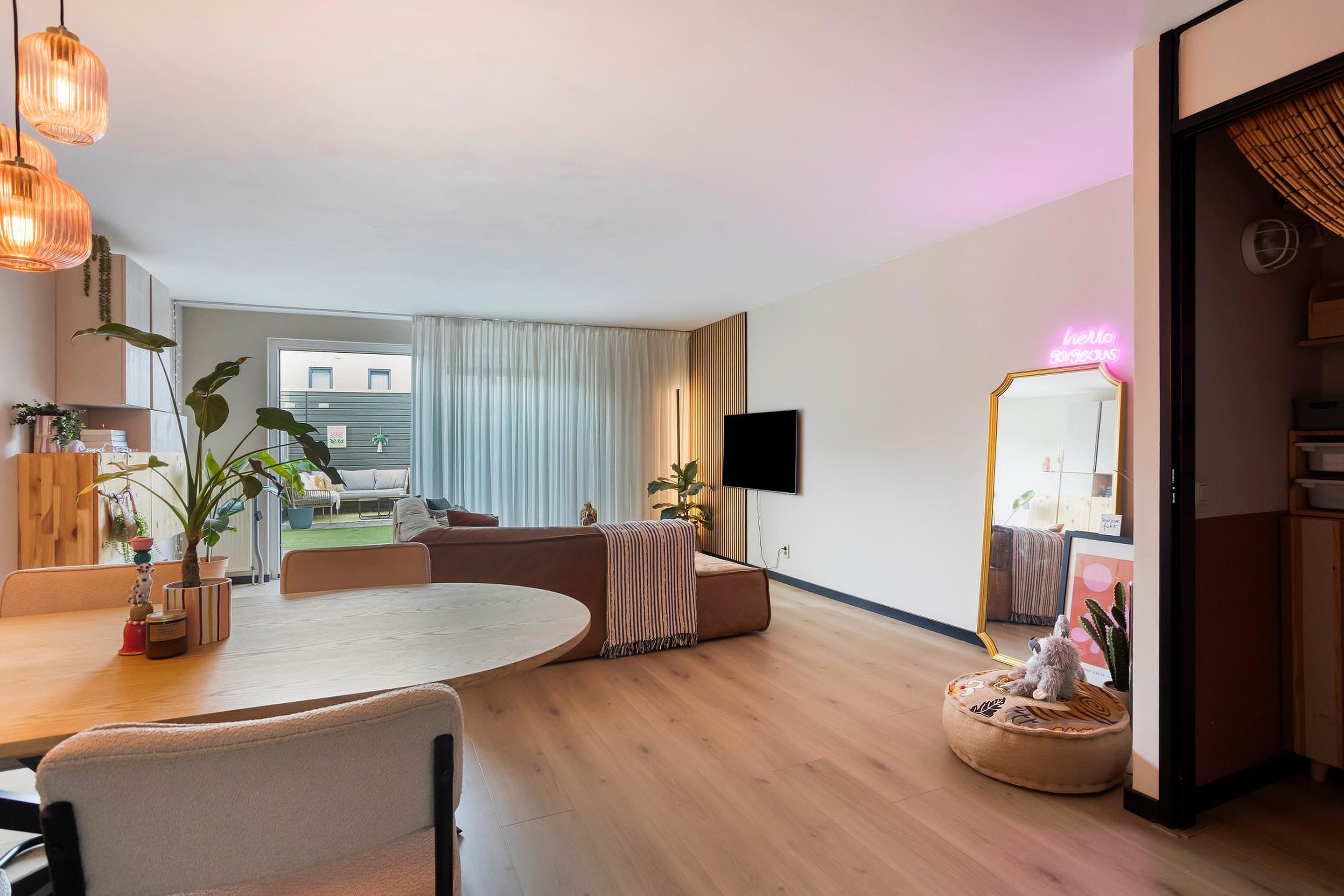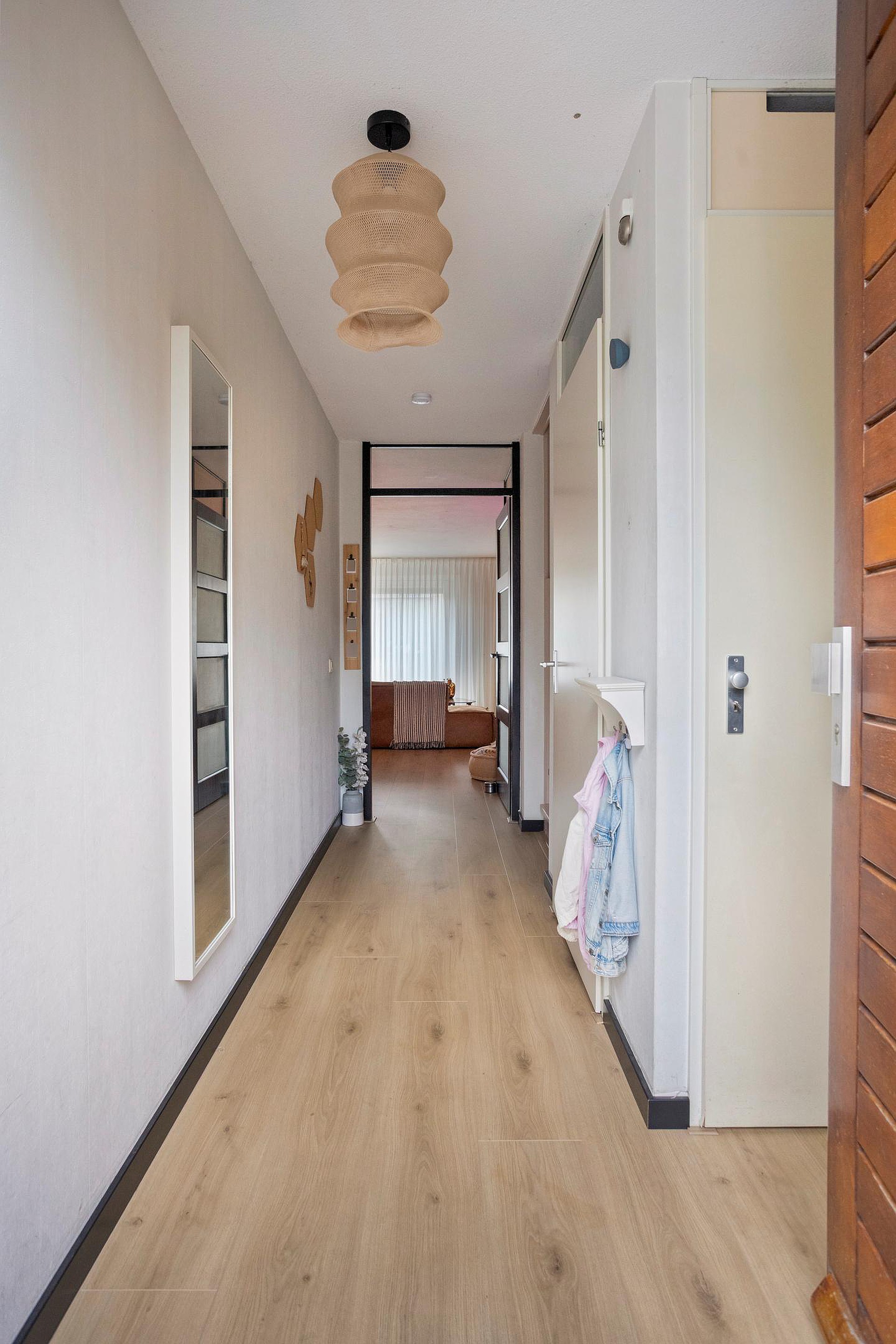Wonen met licht en comfort: je betreedt de woning via de nette voortuin en komt binnen in de lange hal met meterkast, toilet en trapopgang naar de eerste verdieping. De lichte en ruime woonkamer is tuingericht en heeft een grote raampartij voor een fijne lichtinval. Onder de trap bevindt zich een handige trapkast voor extra bergruimte.