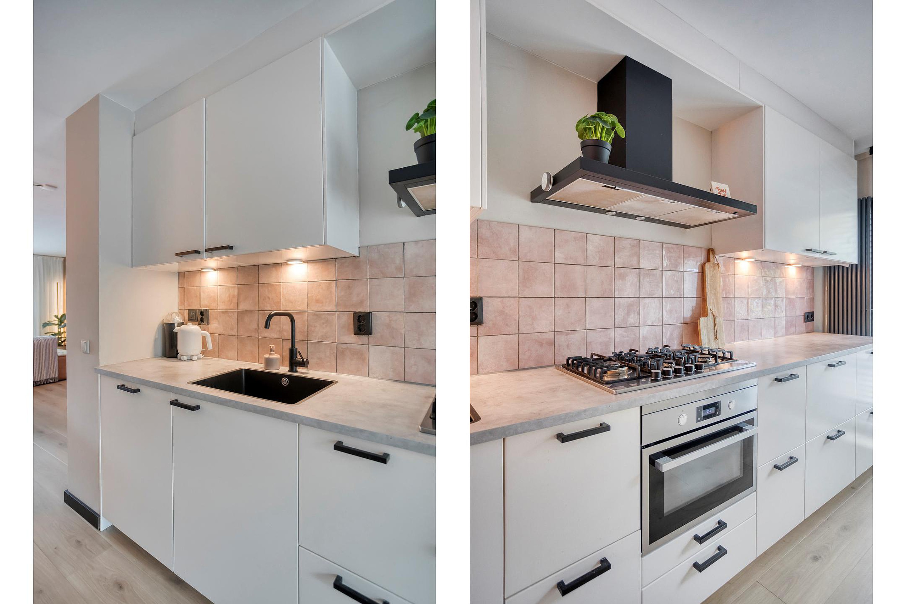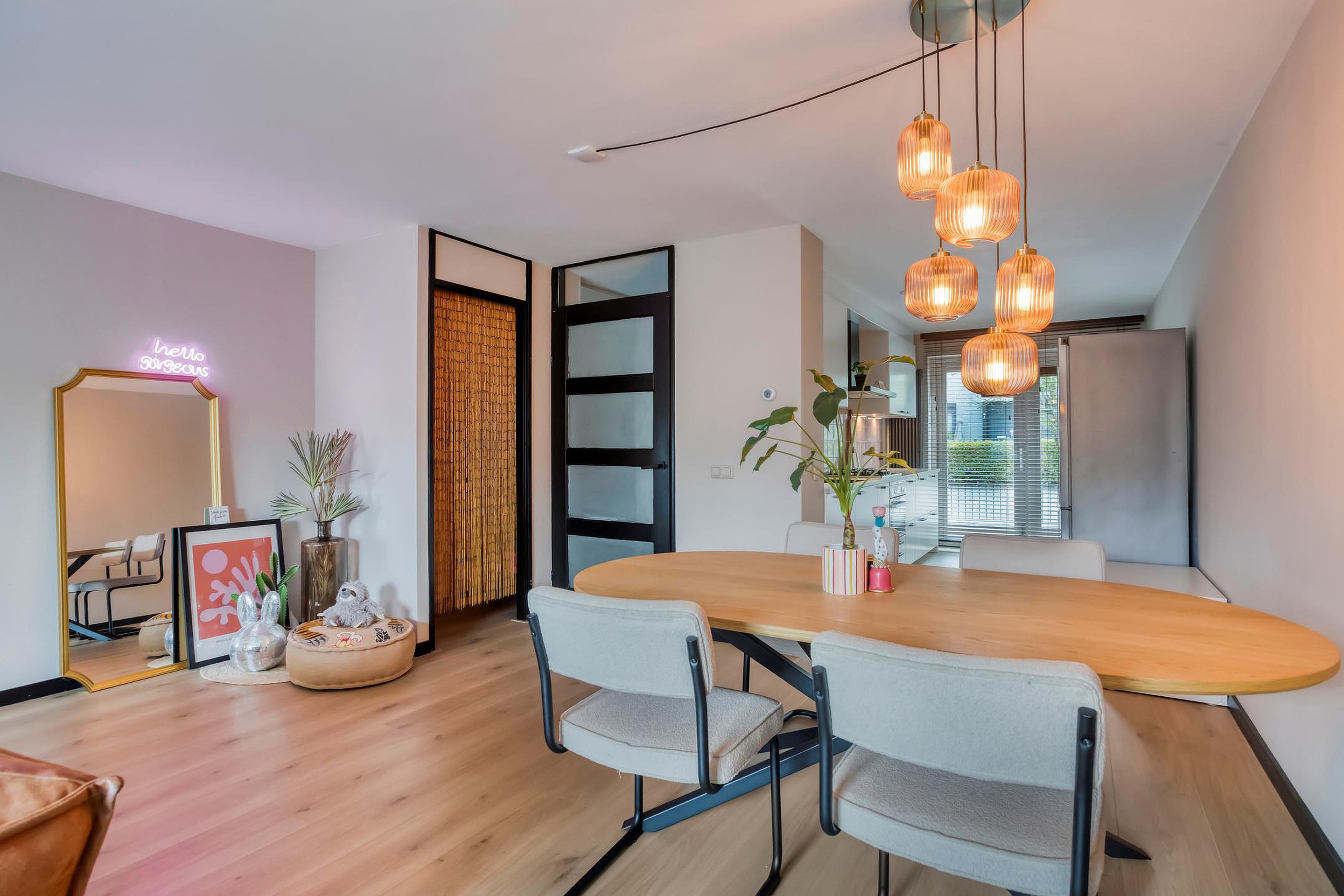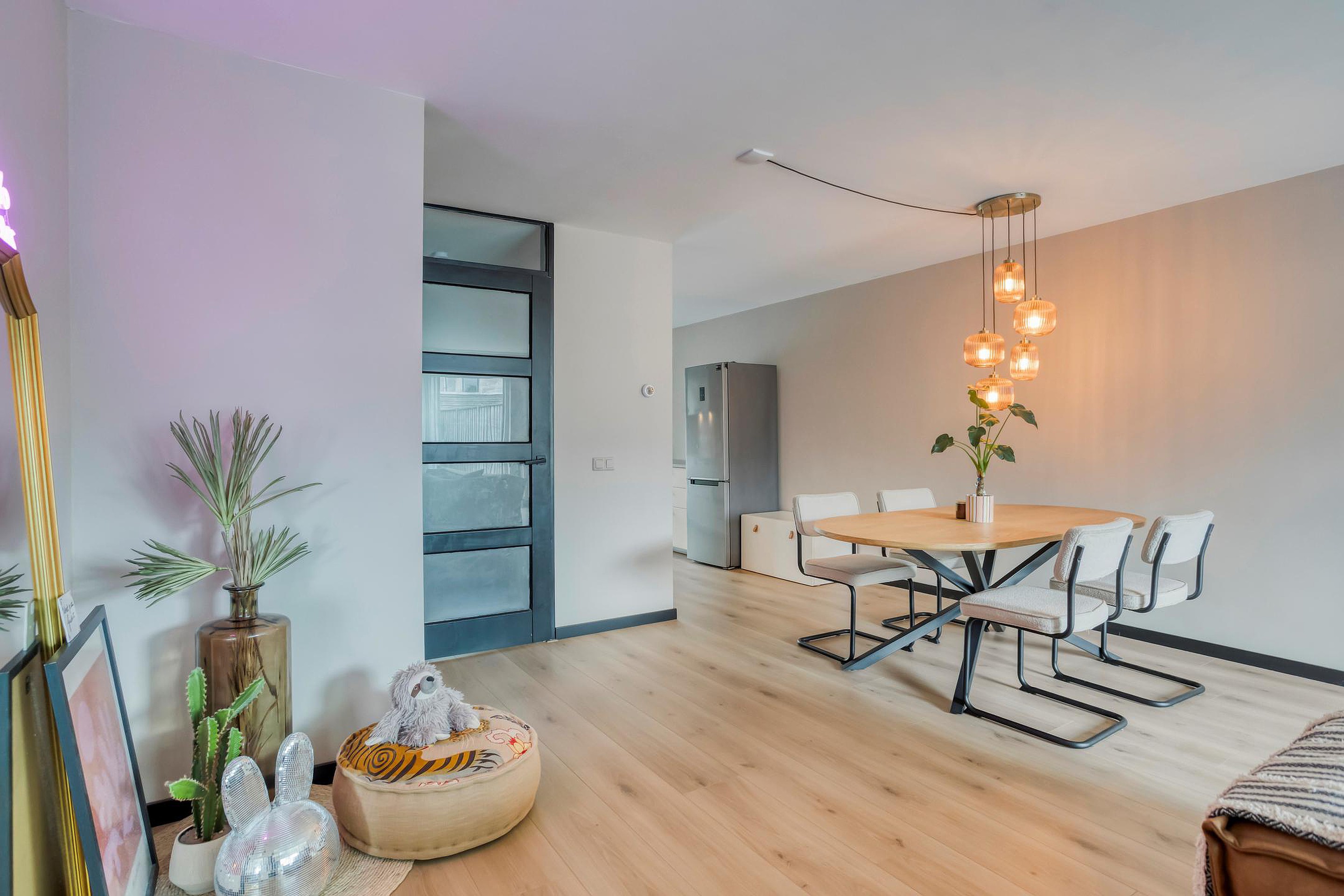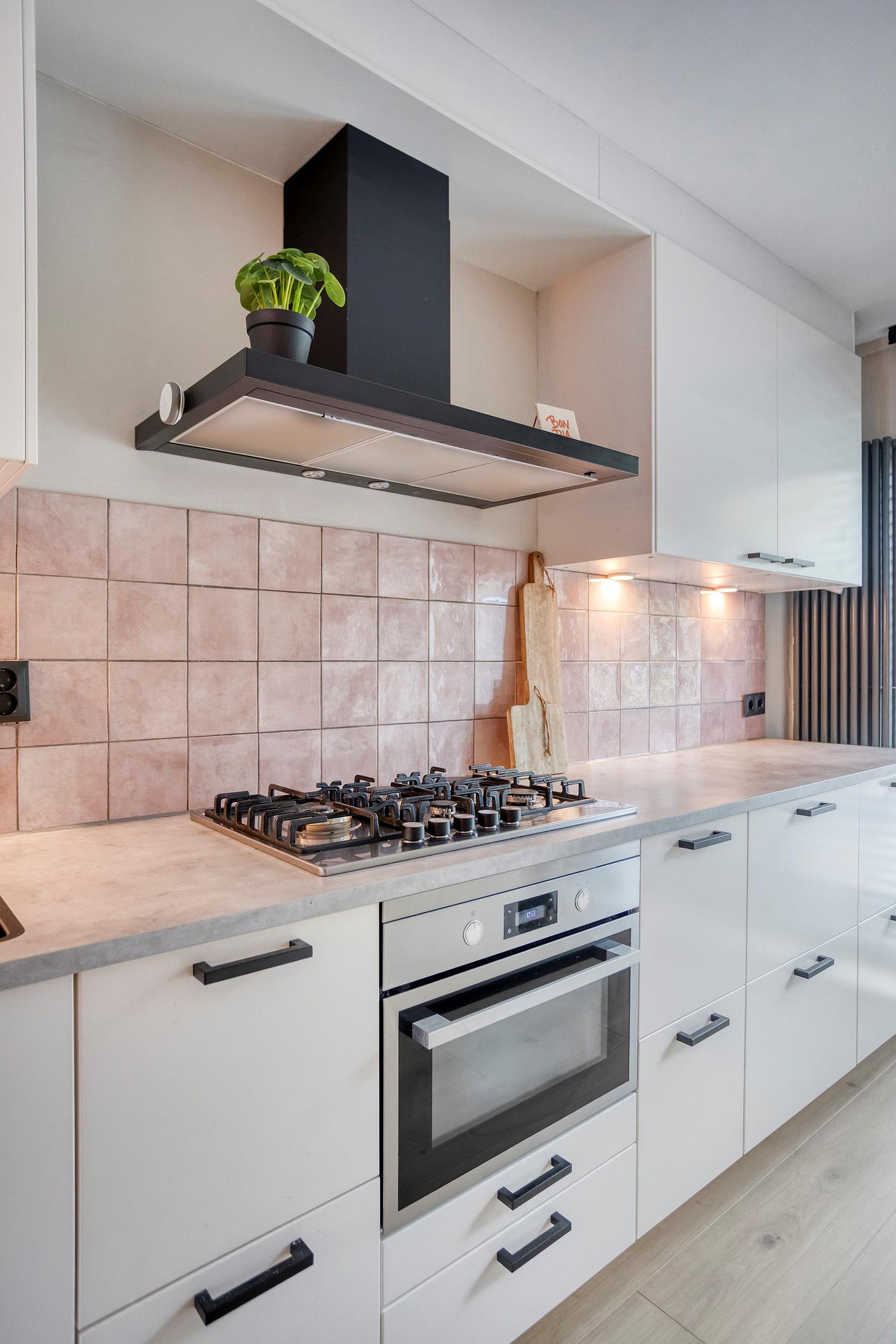 De keuken, geplaatst in 2023, vind je aan de voorzijde van de woning. Met de openslaande deuren heb je toegang tot de voortuin. De moderne keuken is praktisch en compleet, met een losse koelkast, 5-pits kookplaat, afzuigkap, vaatwasser en combi-oven. De gehele benedenverdieping is voorzien van een nette laminaatvloer.