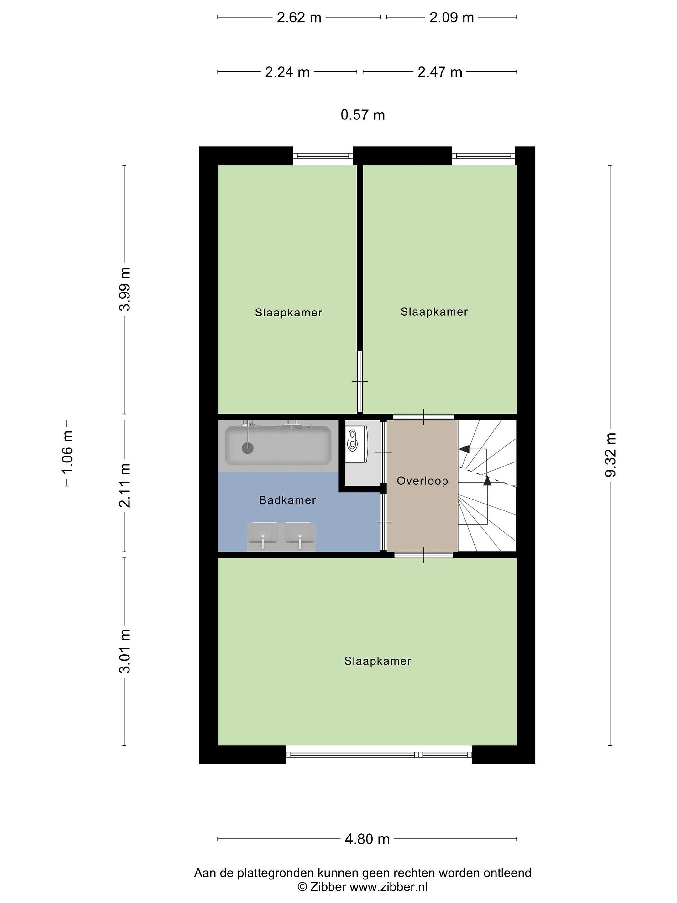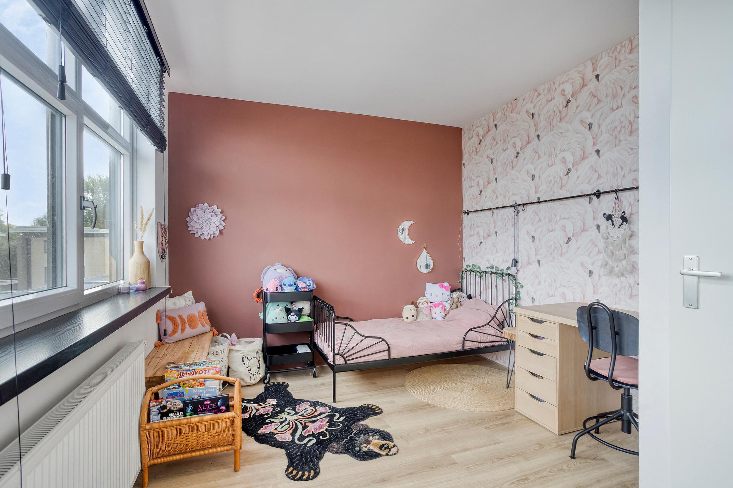 Op de eerste verdieping heb je via de overloop toegang tot drie slaapkamers van ruim formaat en de badkamer. De twee slaapkamers aan de achterzijde beschikken over lange ramen voor extra lichtinval. De slaapkamer aan de voorzijde heeft een brede raampartij en beschikt over een elektrisch rolluik voor extra privacy en comfort. De gehele verdieping is voorzien van een nette laminaatvloer.