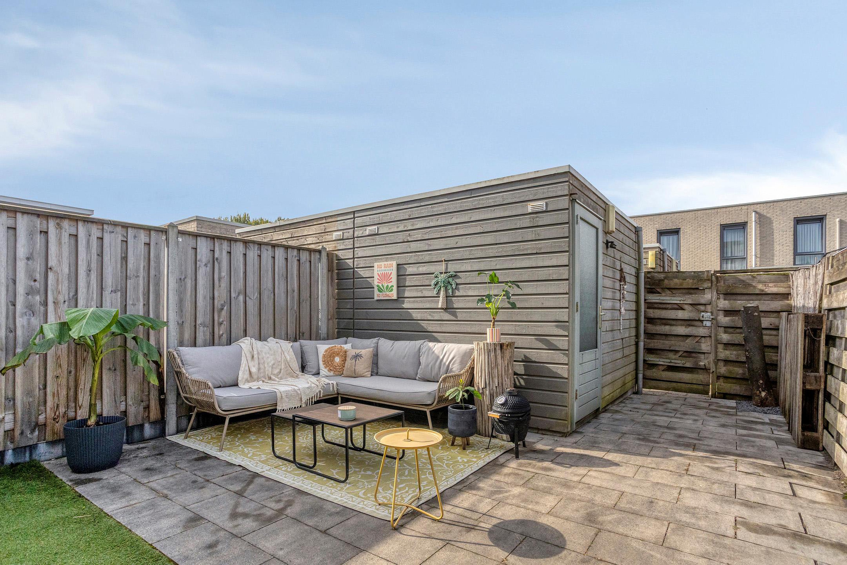 De achtertuin is gelegen op het zuidwesten en biedt veel zonuren. De tuin is voorzien van sierbestrating, achterom, buitenkraan, schuttingen en een vrijstaande houten berging.