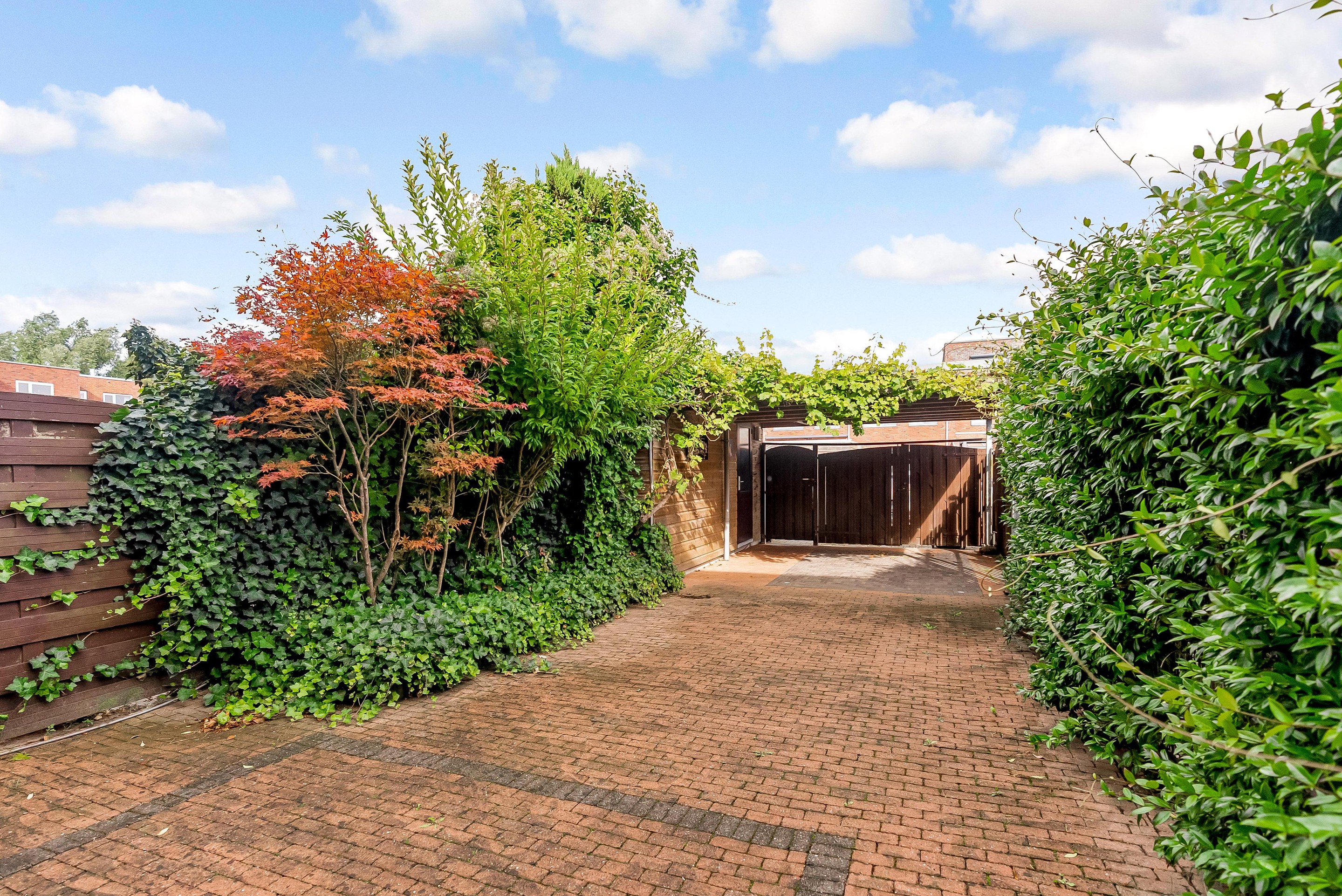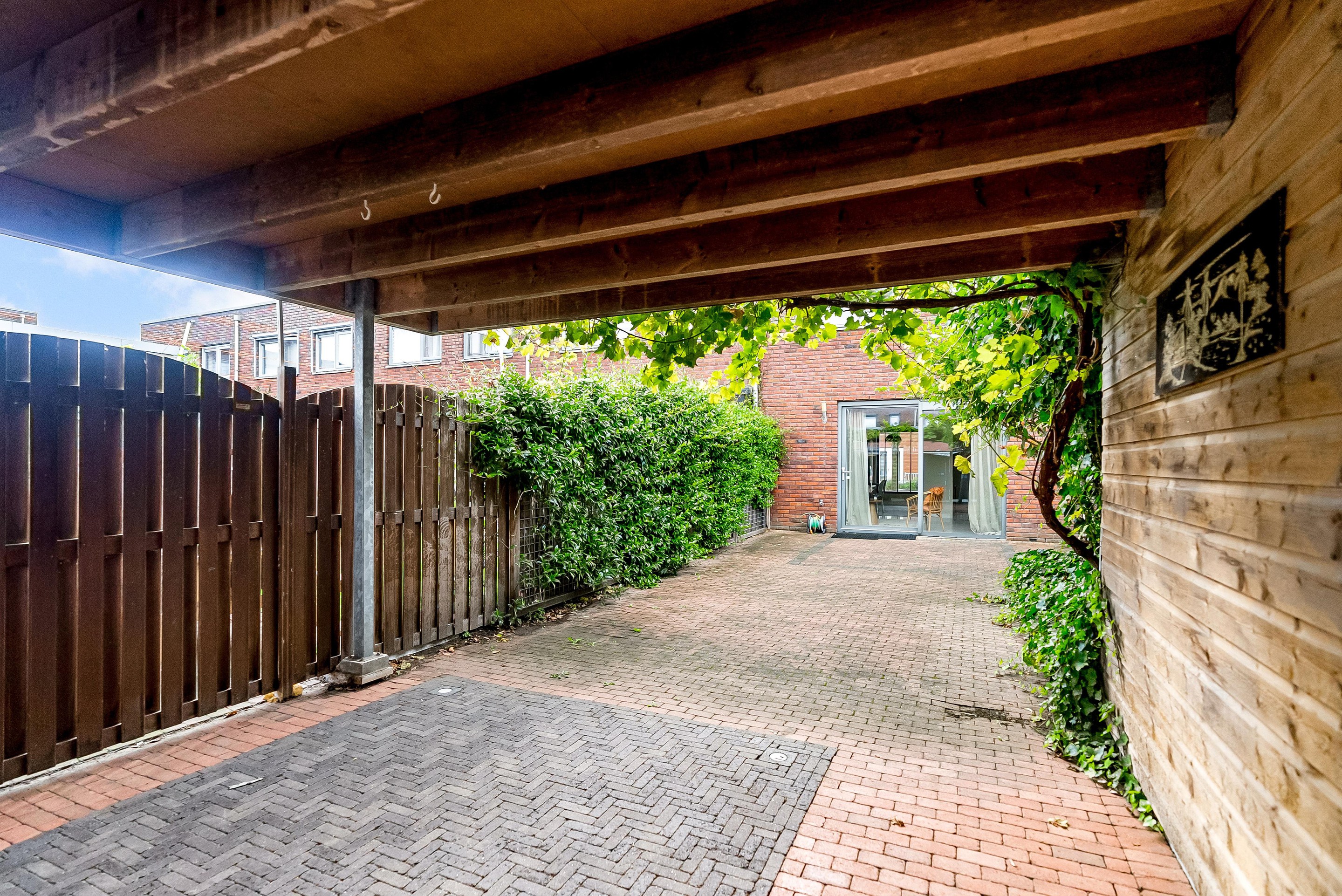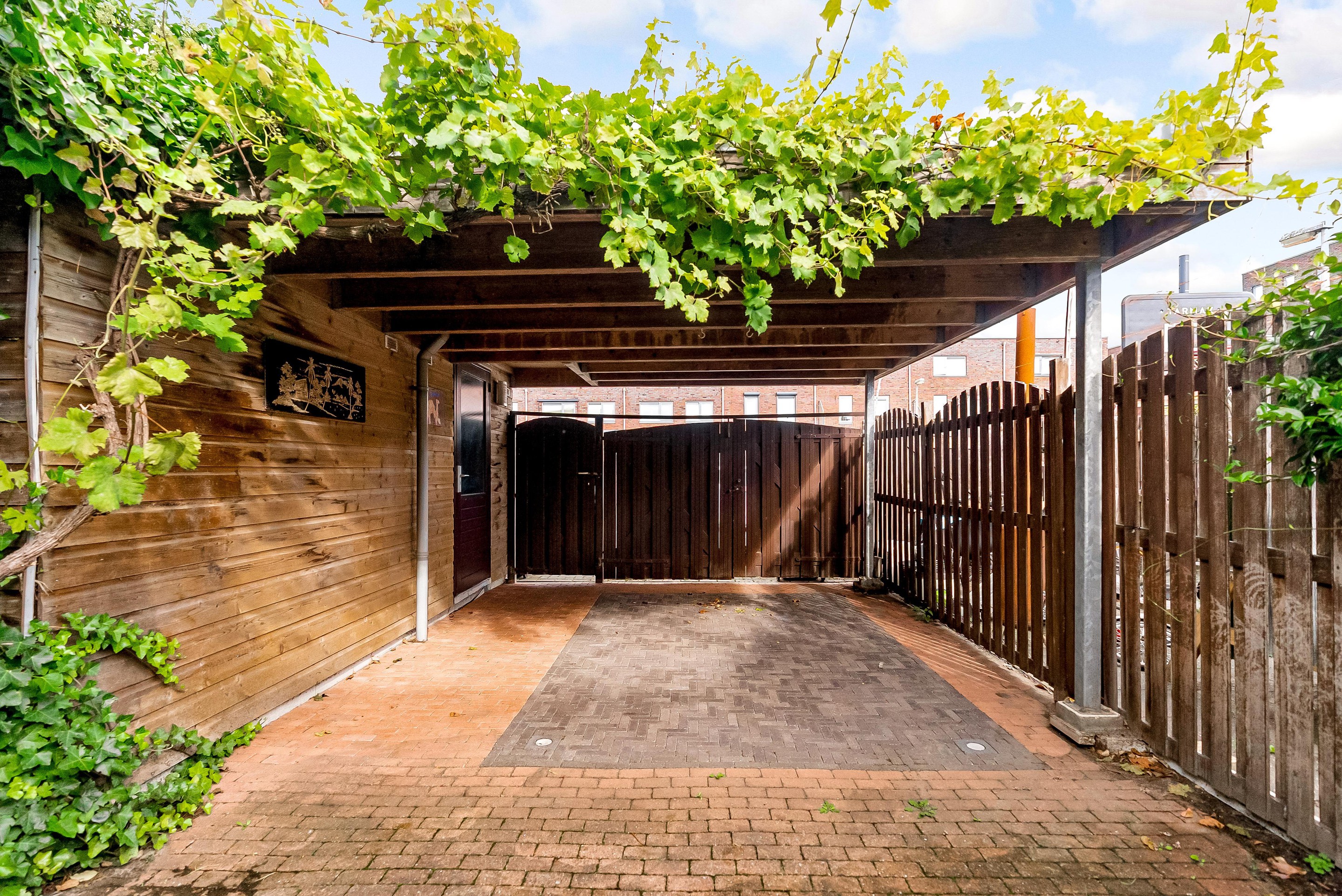 De achtertuin is meer dan 13 meter diep en gelegen op het noordwesten. Een ideale ligging voor zonliefhebbers en mensen die lekker in het zonnetje willen genieten na een dag hard werken. De tuin is onderhoudsvriendelijk ingericht, erg prettig als je geen groene vingers hebt. Achter in de tuin is een vrijstaande houten berging aanwezig, handig voor het opslaan van spullen. De dubbele poortdeur is bestemd voor de instandhouding van de parkeerplaats op eigen terrein. Achter de woning is een afgesloten mandelig perceel gedeeld met de buren.