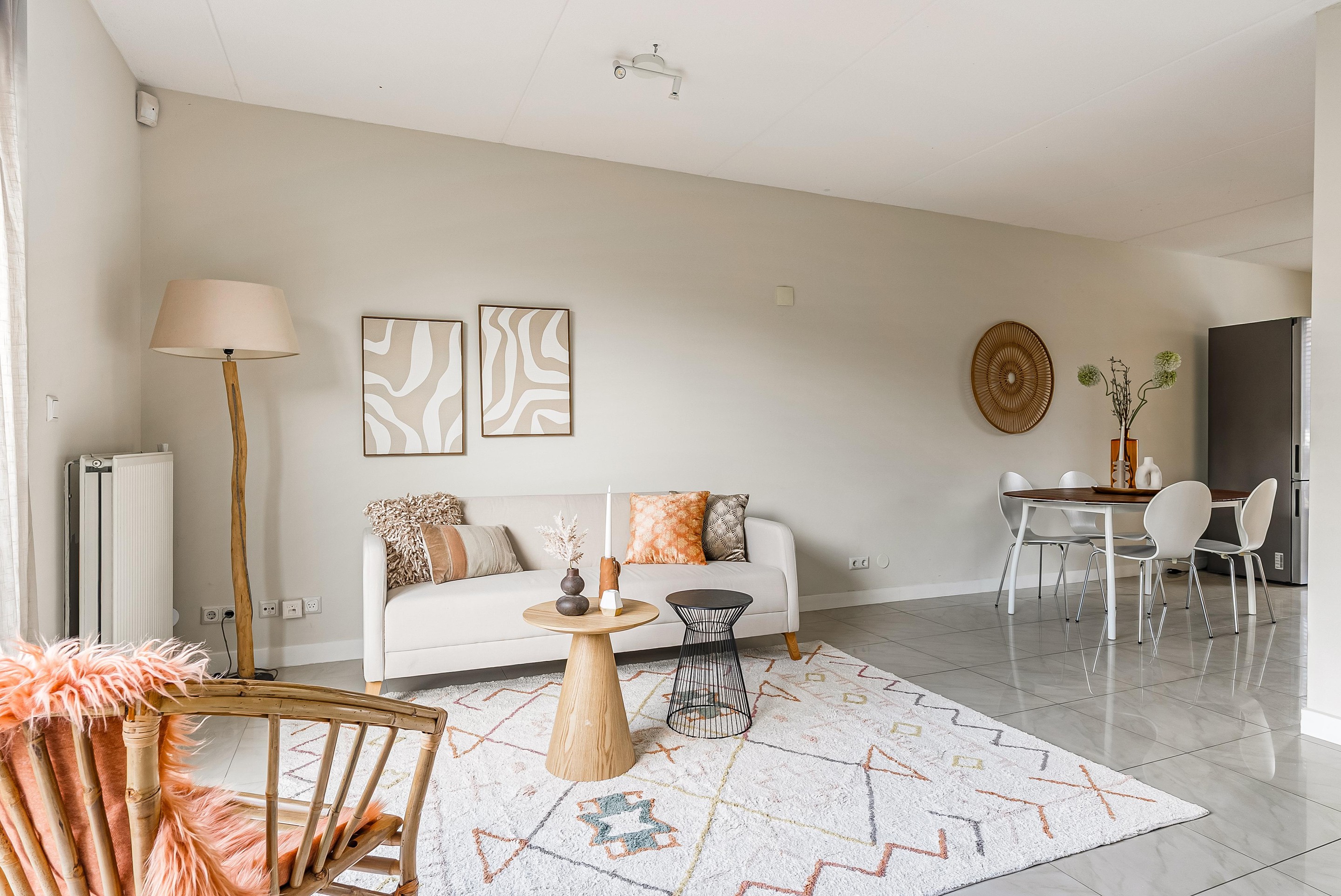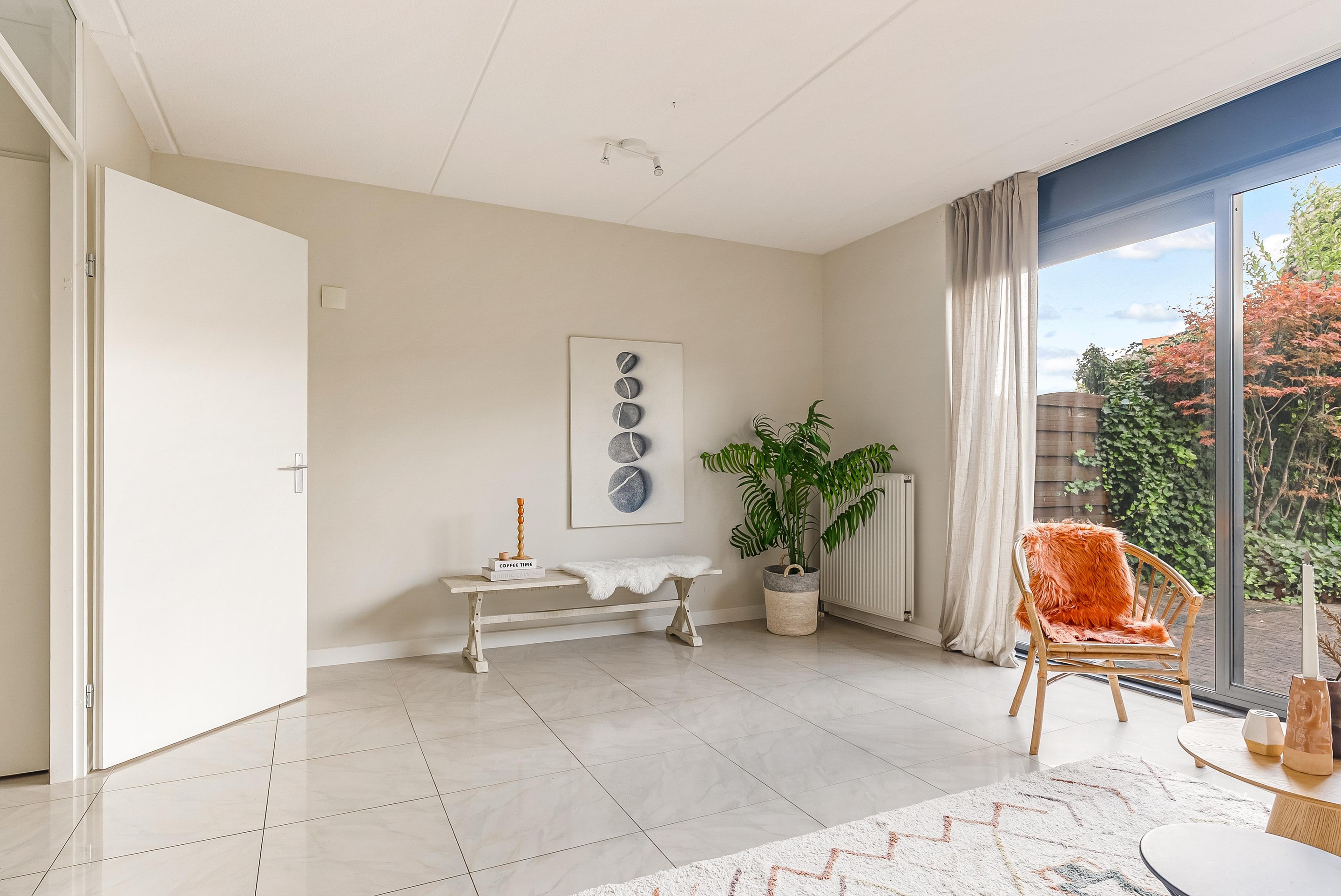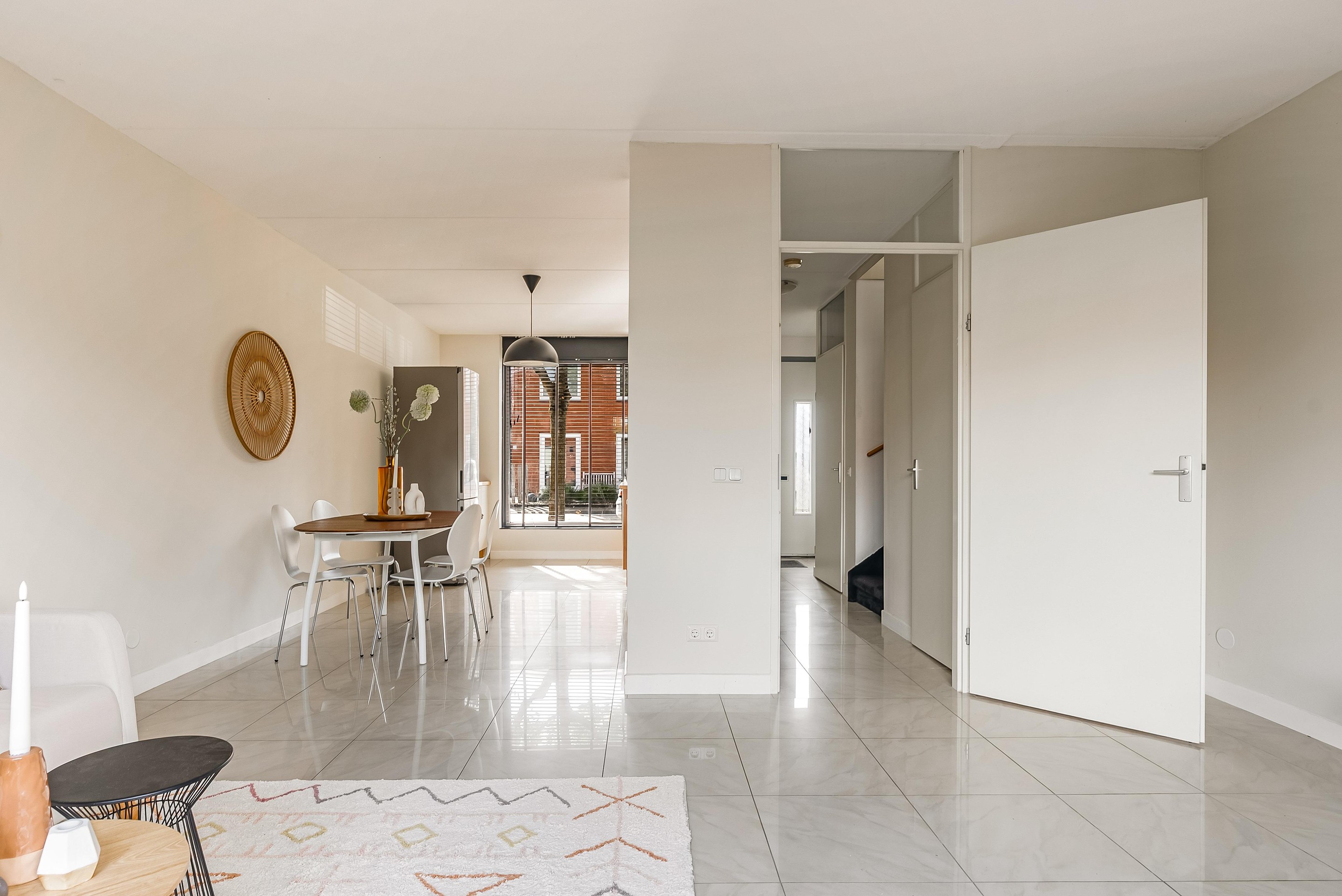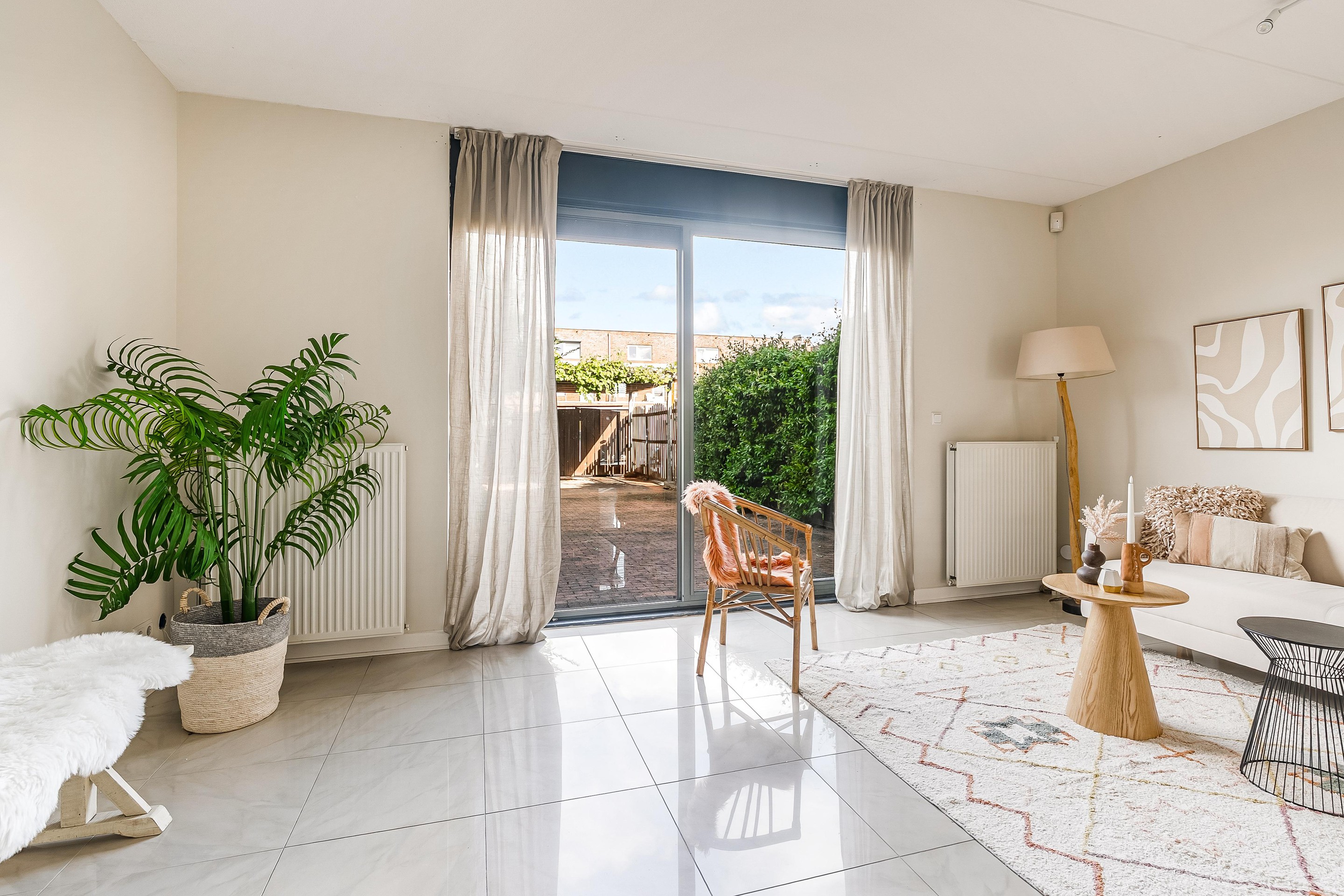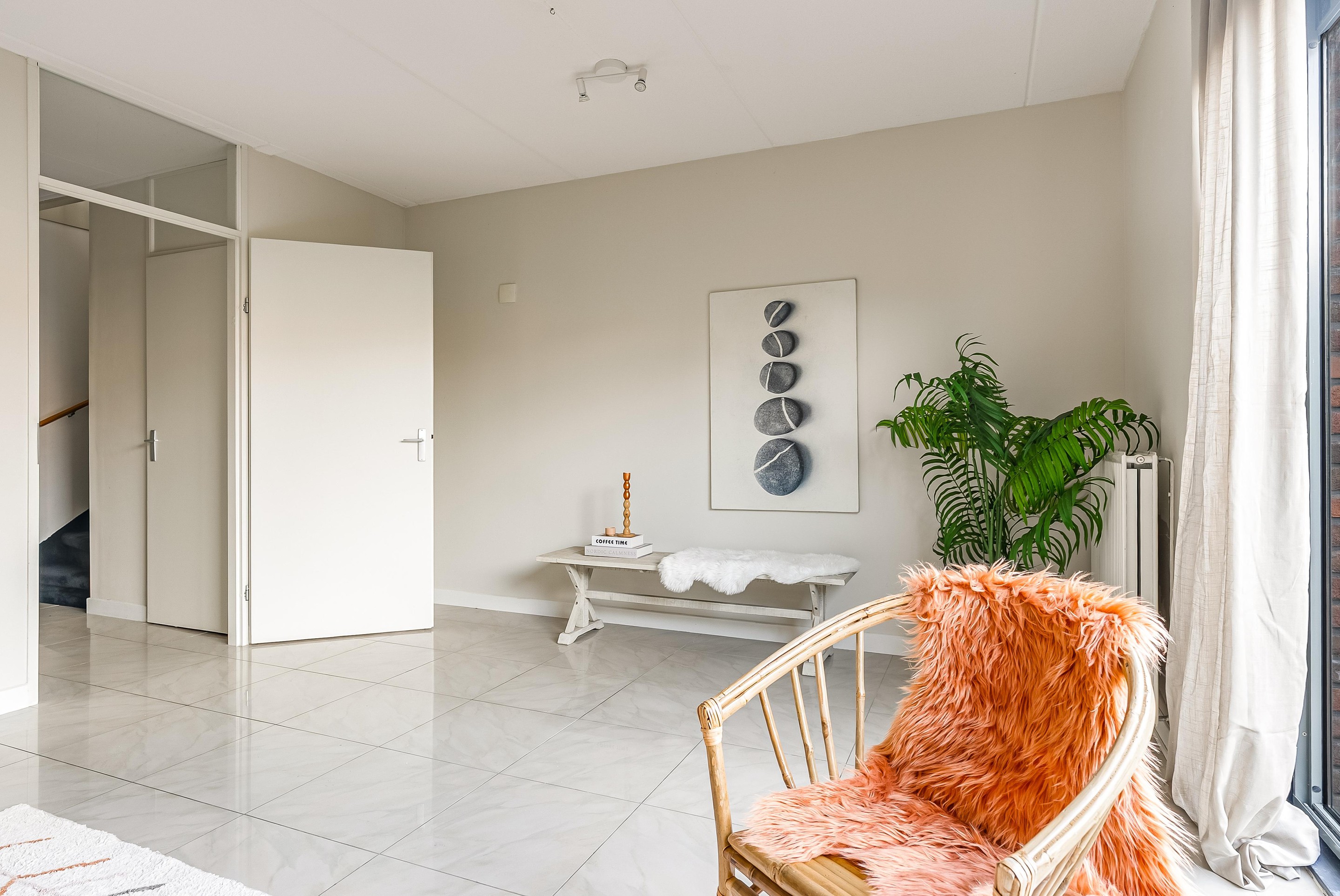 Bij binnenkomst in de hal heb je toegang tot het toilet, de meterkast, trapopgang naar de eerste verdieping en de woonkamer. De woonkamer is ruim en voorzien van veel lichtinval. De schuifpui maakt dat de tuin heerlijk bij de woning getrokken kan worden. De zithoek is aan de achterkant van de woning gelegen en de keuken aan de voorkant. De keuken is erg netjes en verkeert in zeer goede staat van onderhoud. De diverse apparatuur maakt het een perfecte plek om heerlijk te kokkerellen. De volgende inbouwapparatuur is aanwezig: koel- vriescombinatie, magnetron, oven, kookplaat, afzuigkap, koffiemachine en vaatwasser.