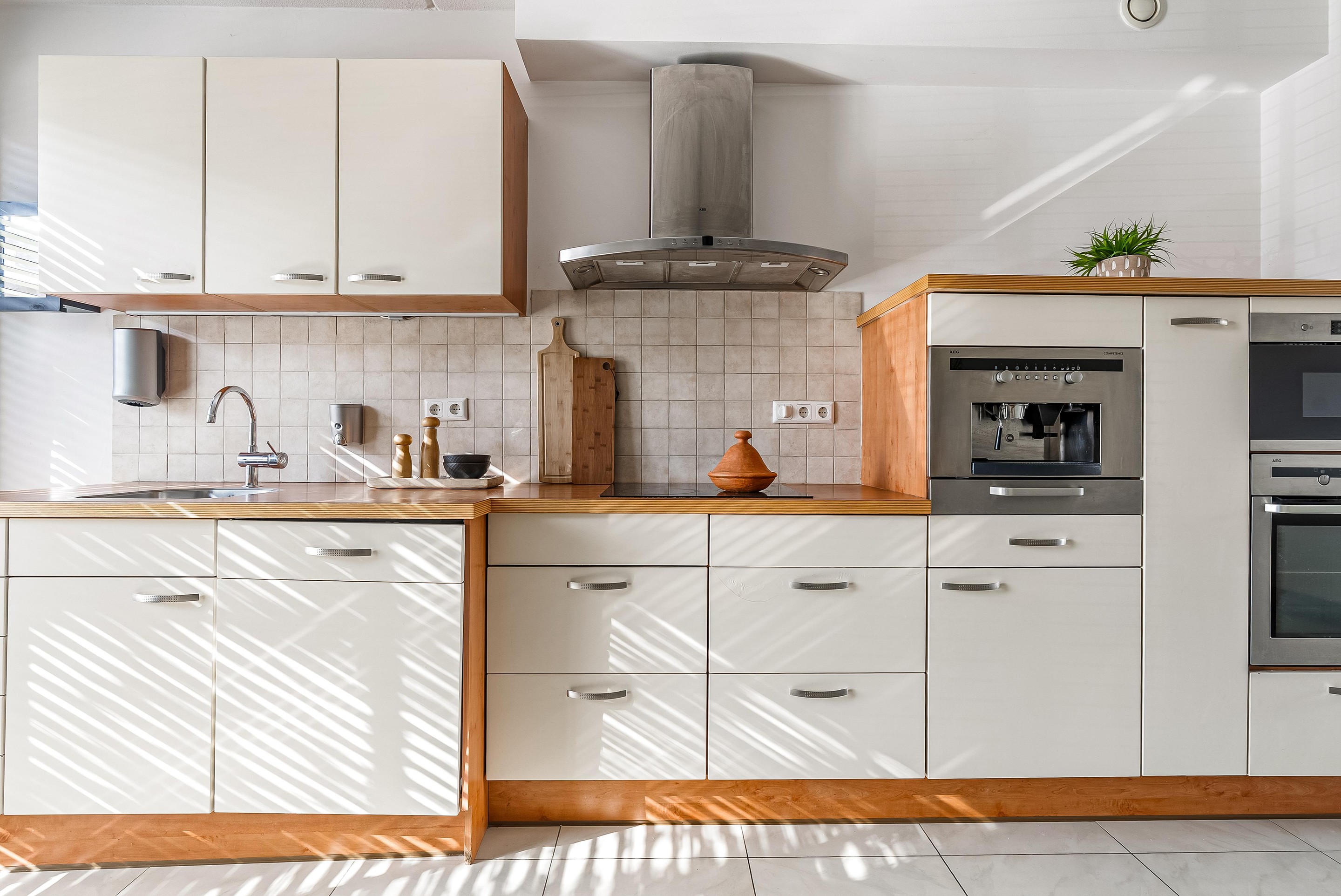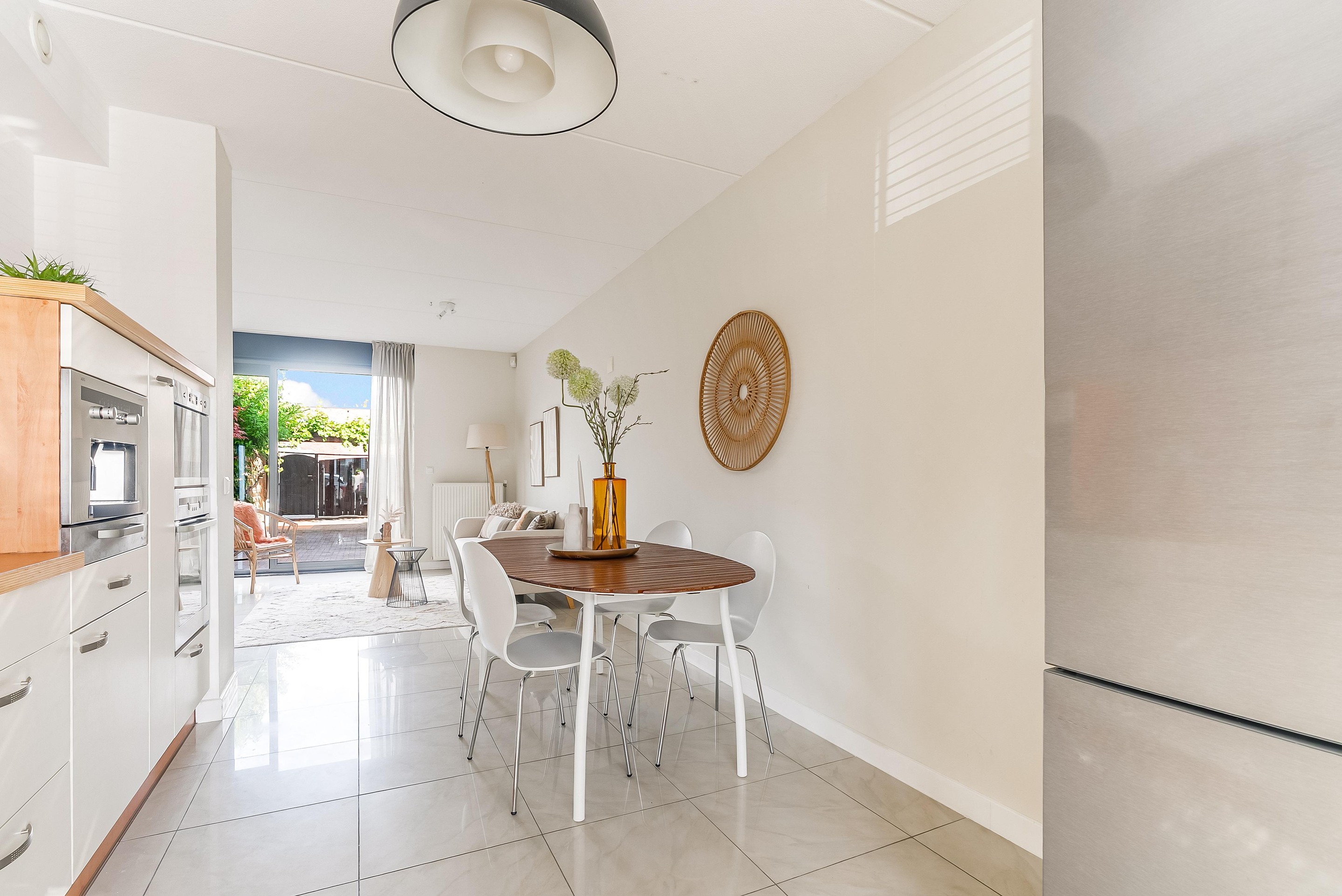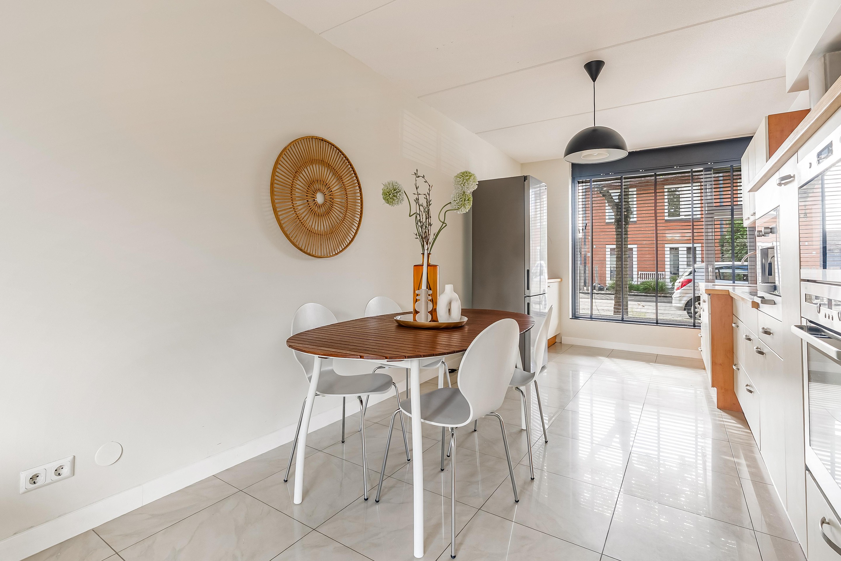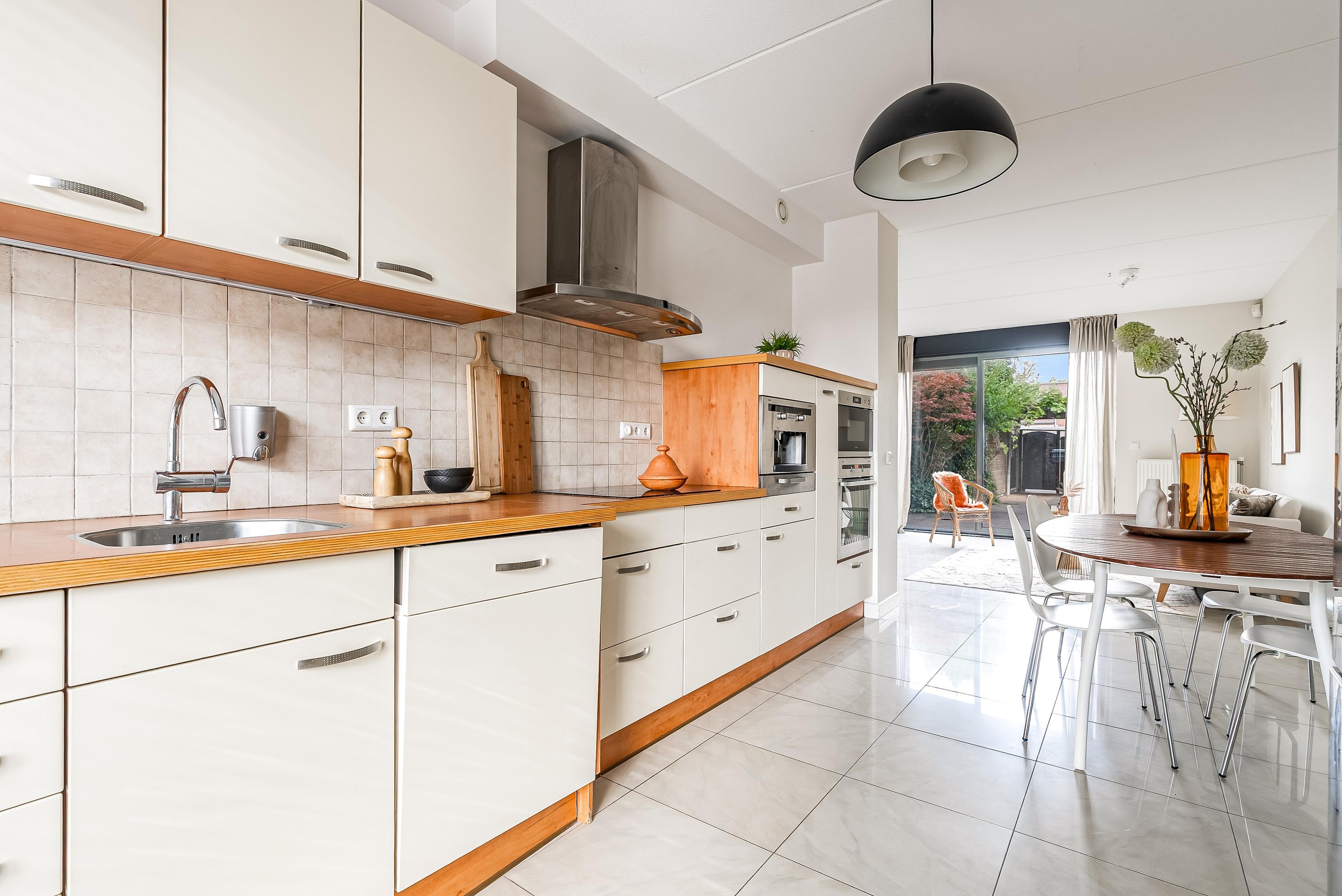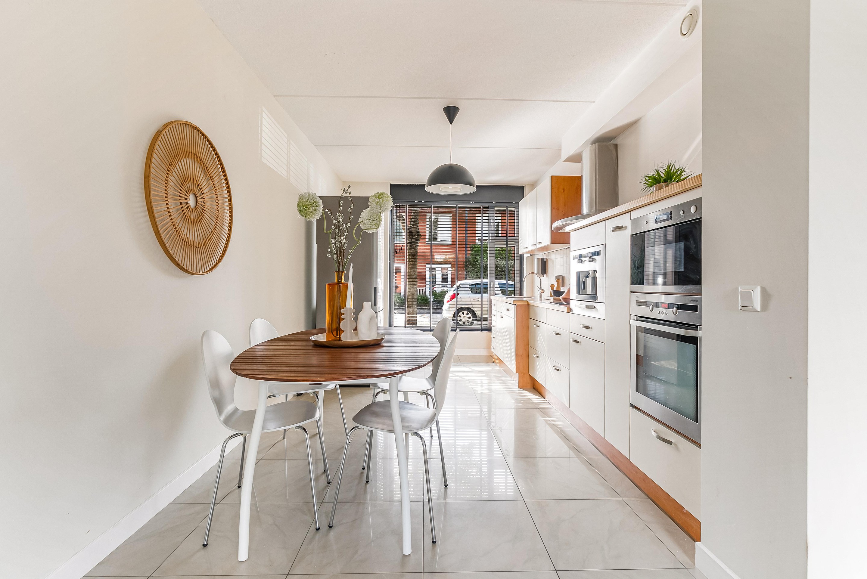 Vanuit de keuken heb je, middels het grote raam, een leuk uitzicht over de straat.