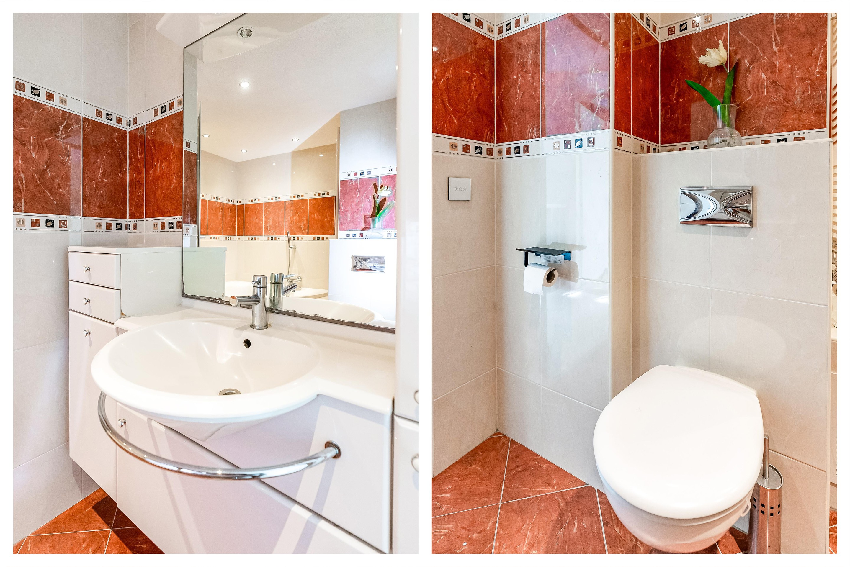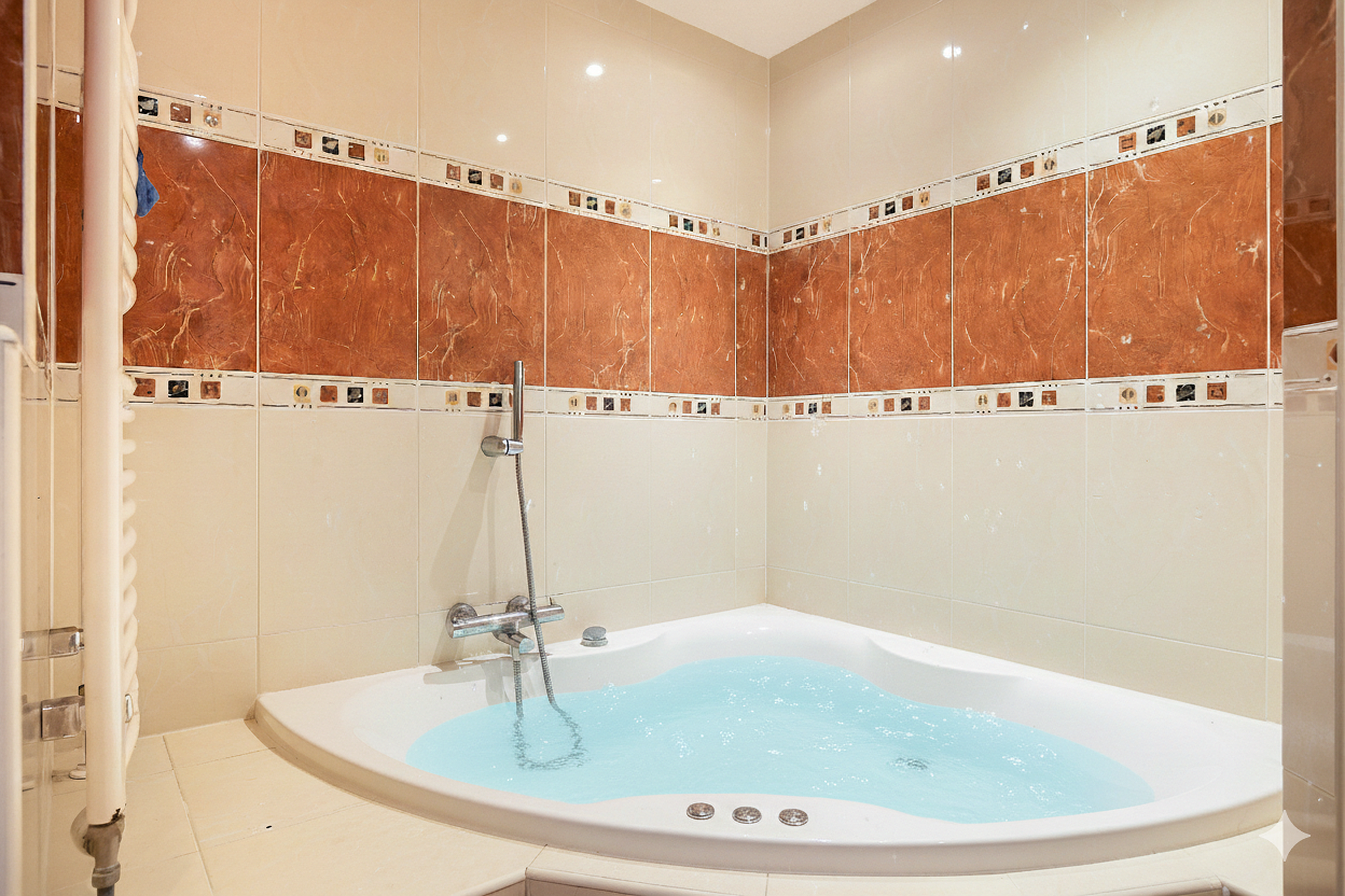 De badkamer is vergroot waardoor een ware ‘spa’ is ontstaan. De badkamer is voorzien van een whirlpool en luxe douchecabine mét saunafunctie. Een mini-wellness aan huis! Uiteraard is hier ook een tweede toilet en wastafel aanwezig. De mechanische ventilatie zorgt dat condens de badkamer kan verlaten.