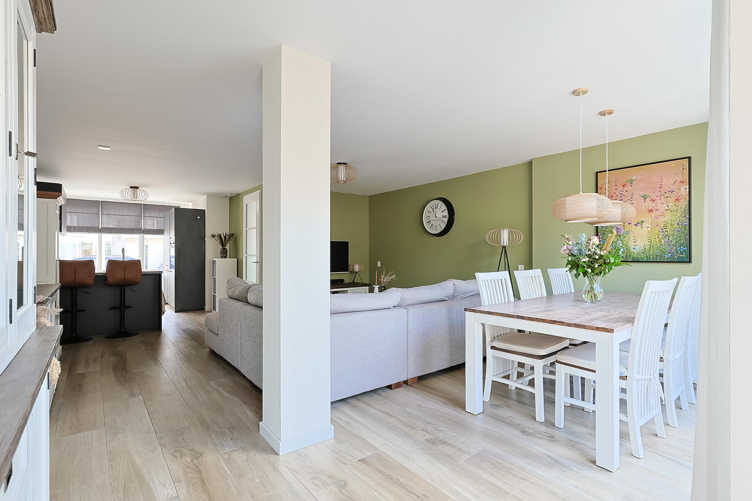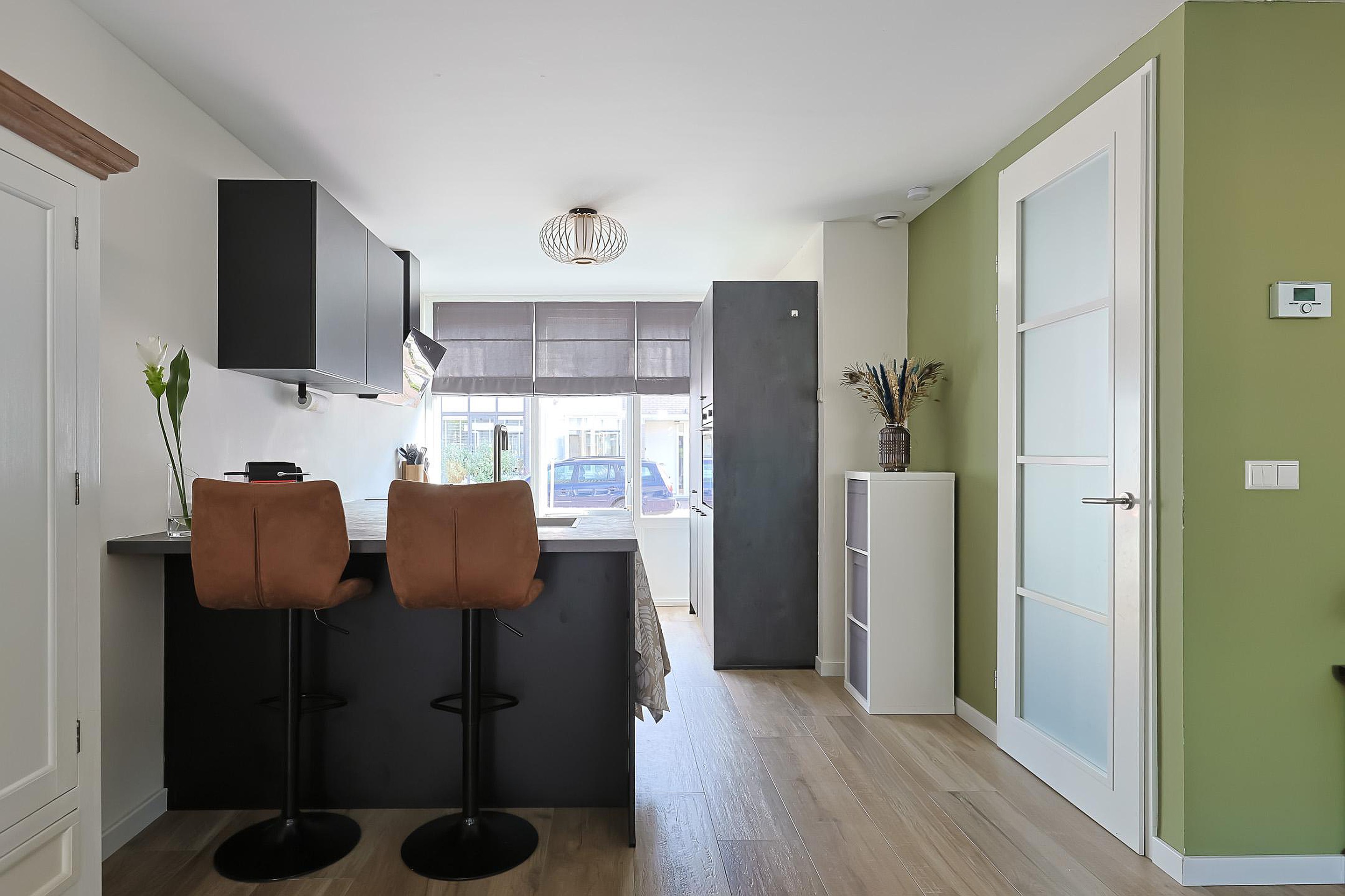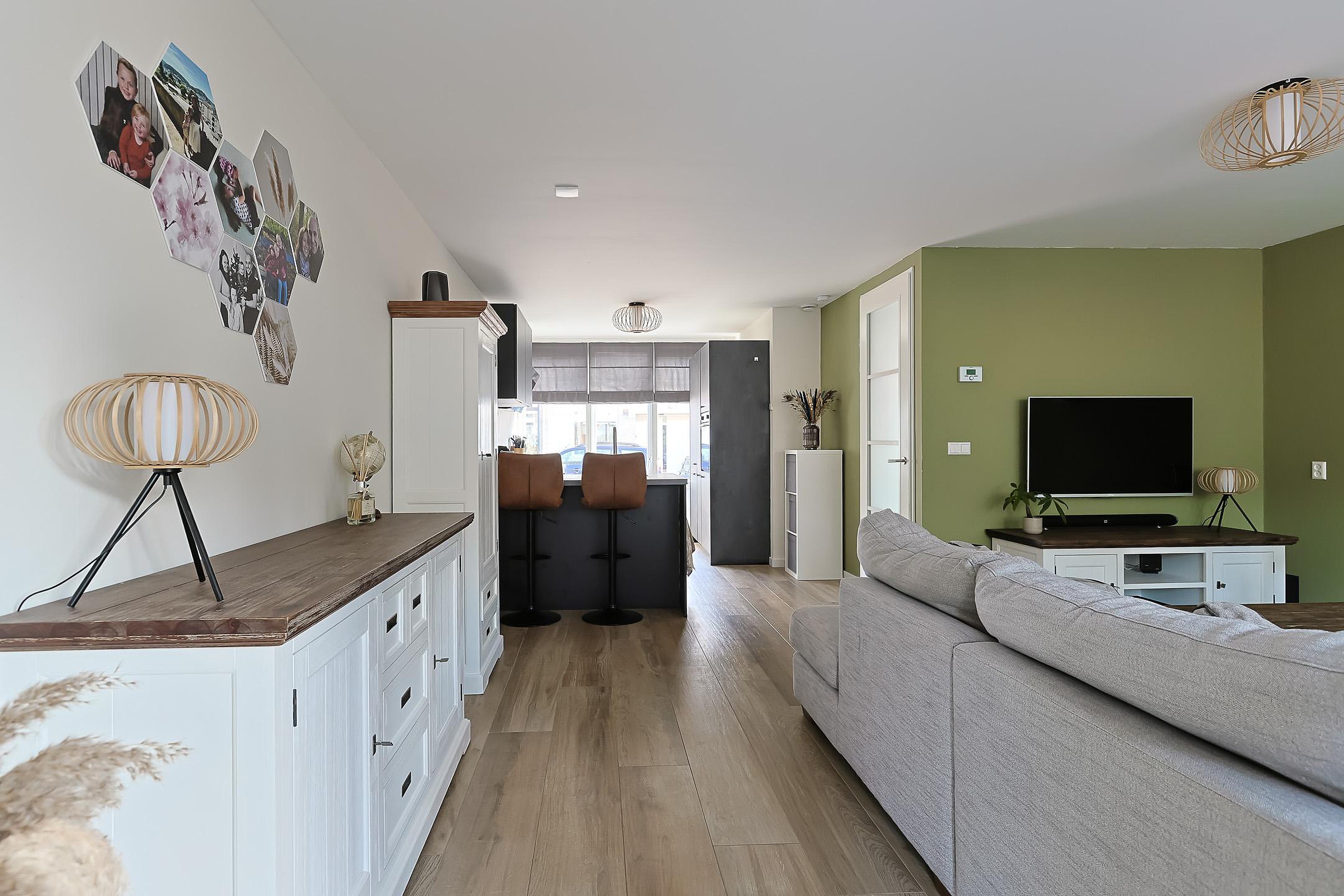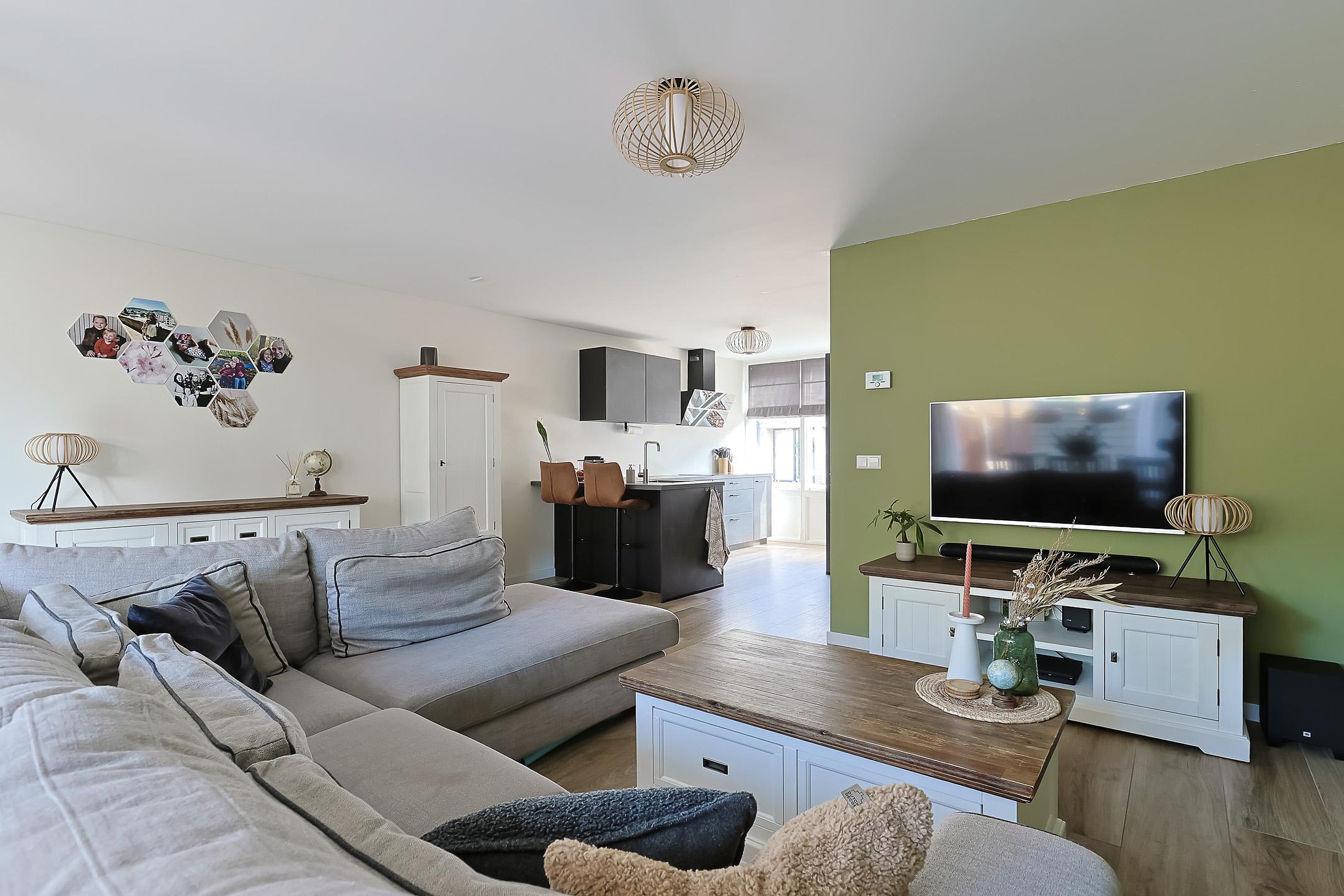 Bij binnenkomst treft u de hal met garderobe, trapkast, meterkast en een modern toilet. De royale, uitgebouwde woonkamer is heerlijk licht en voorzien van keramisch parket met vloerverwarming (2021). Aan de voorzijde van de woning bevindt zich de luxe hoekkeuken met moderne inbouwapparatuur (2021) en een prettig uitzicht over de straat.