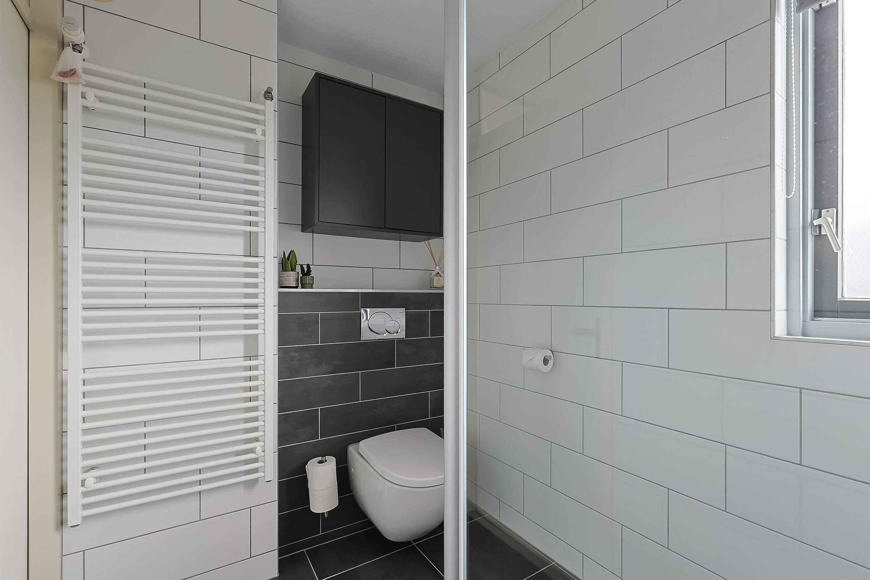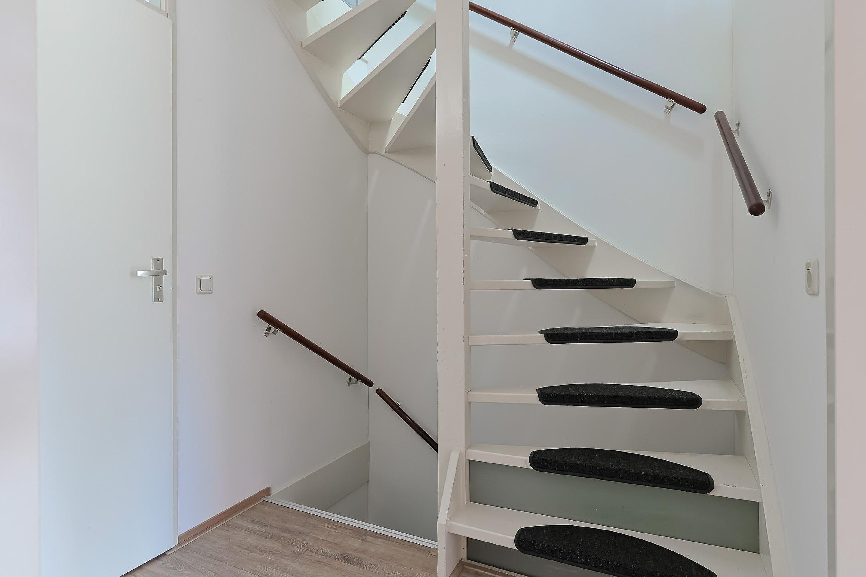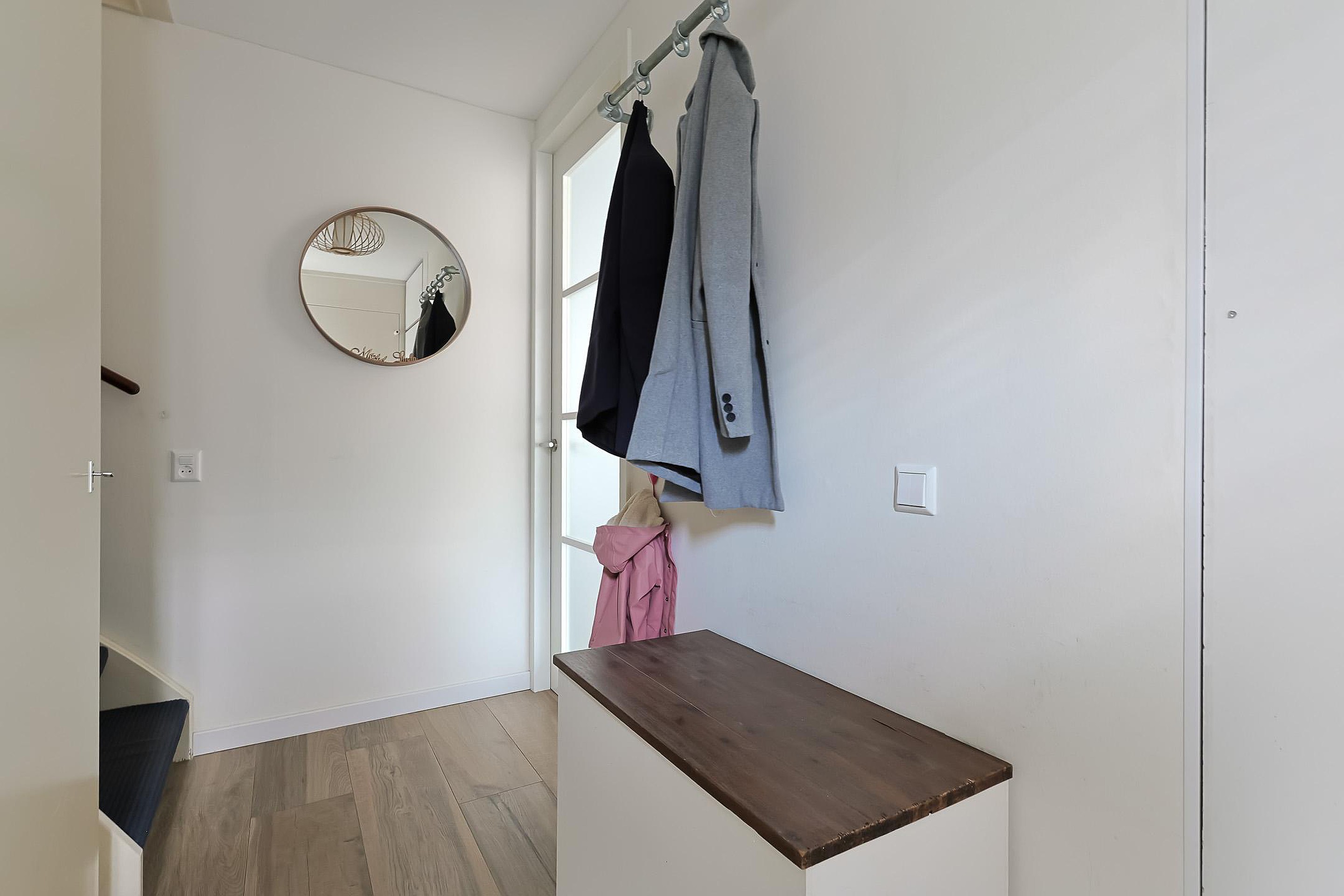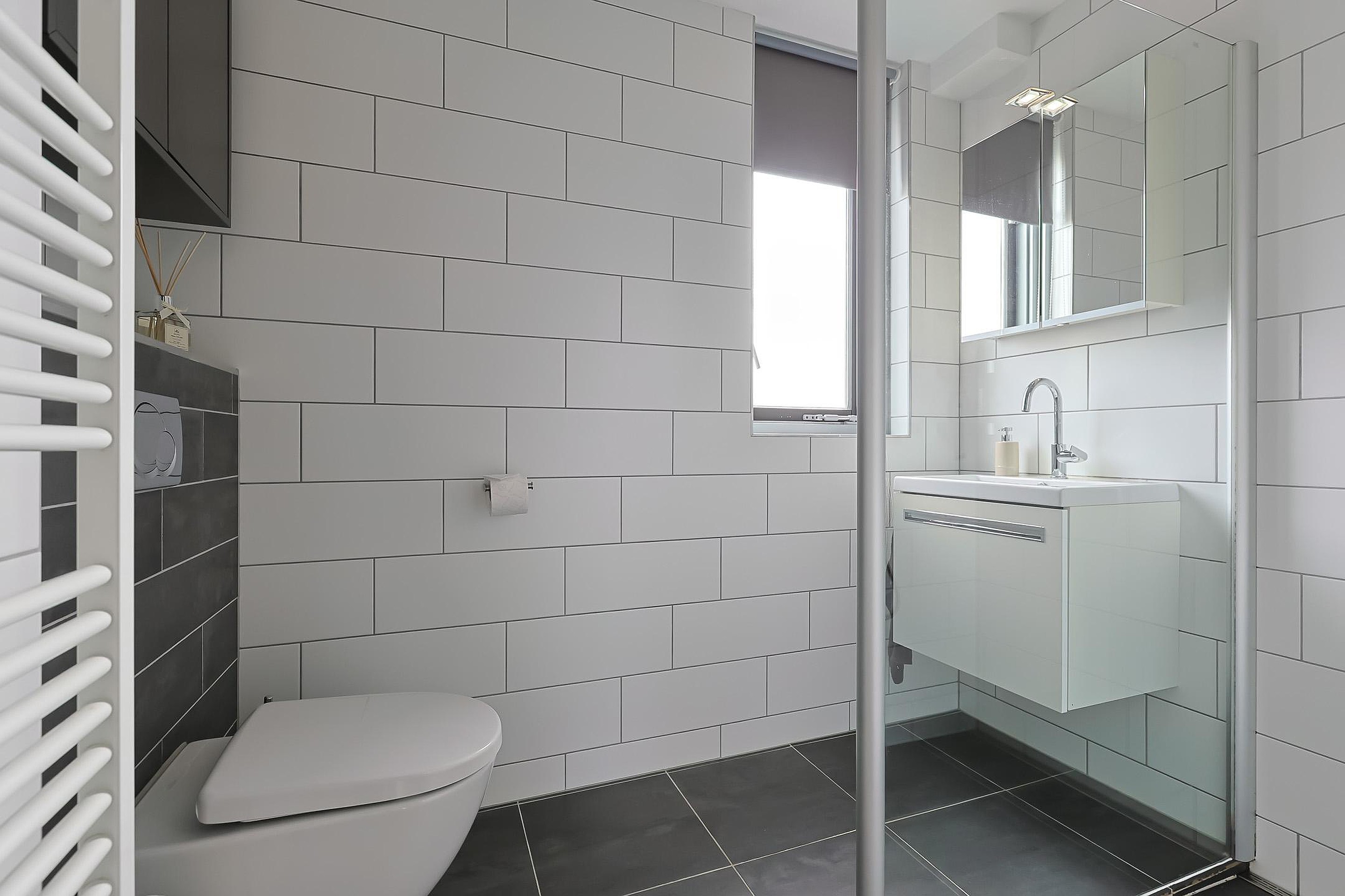 Op de eerste verdieping bevinden zich drie ruime slaapkamers, mede dankzij de opgetrokken gevel (2016). De moderne badkamer is stijlvol en neutraal afgewerkt en beschikt over een inloopdouche, tweede toilet en wastafelmeubel.