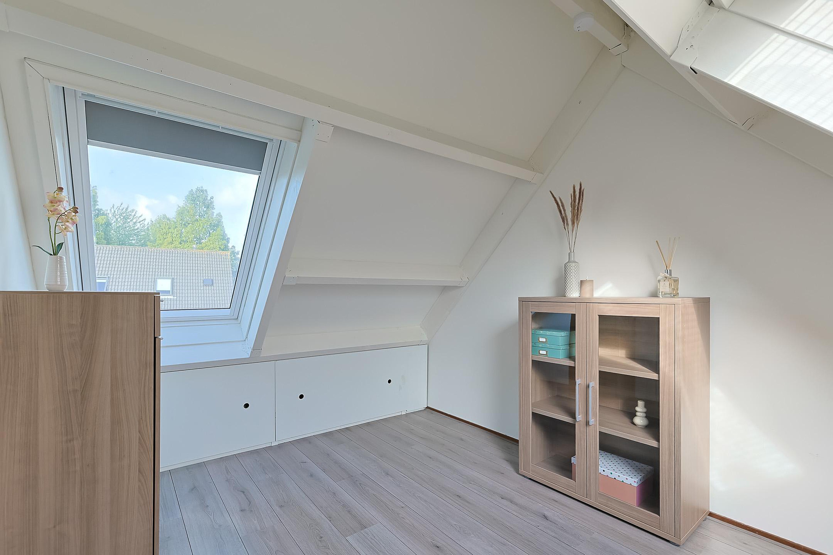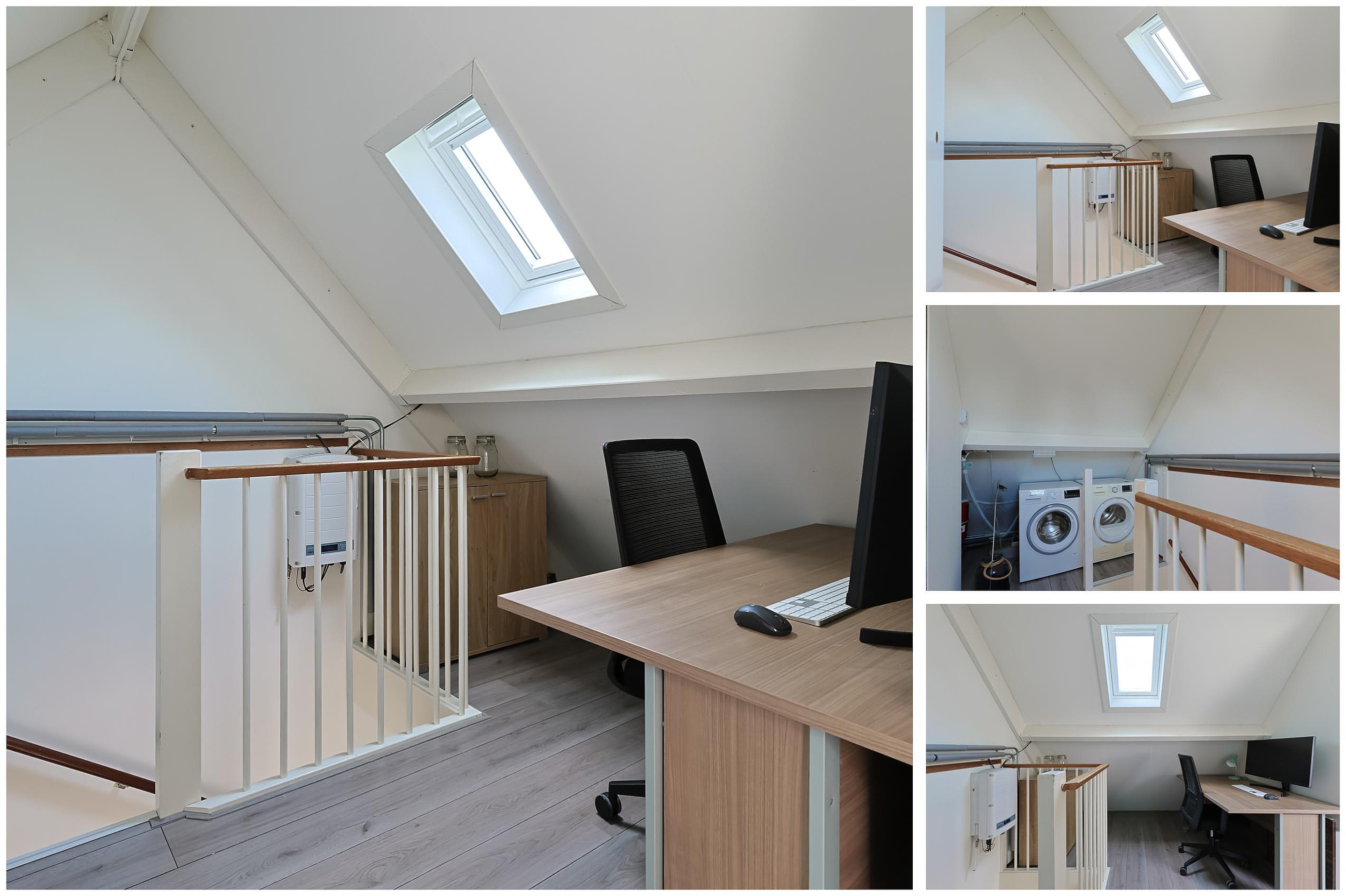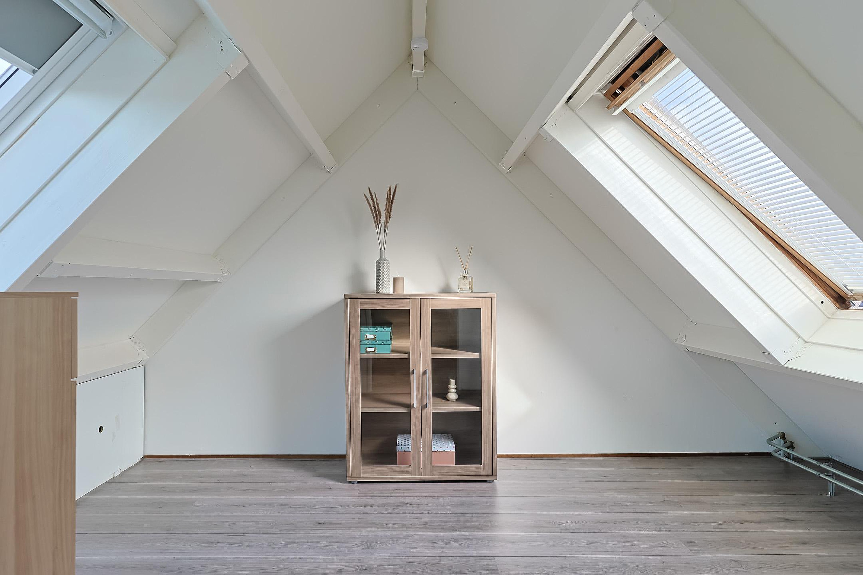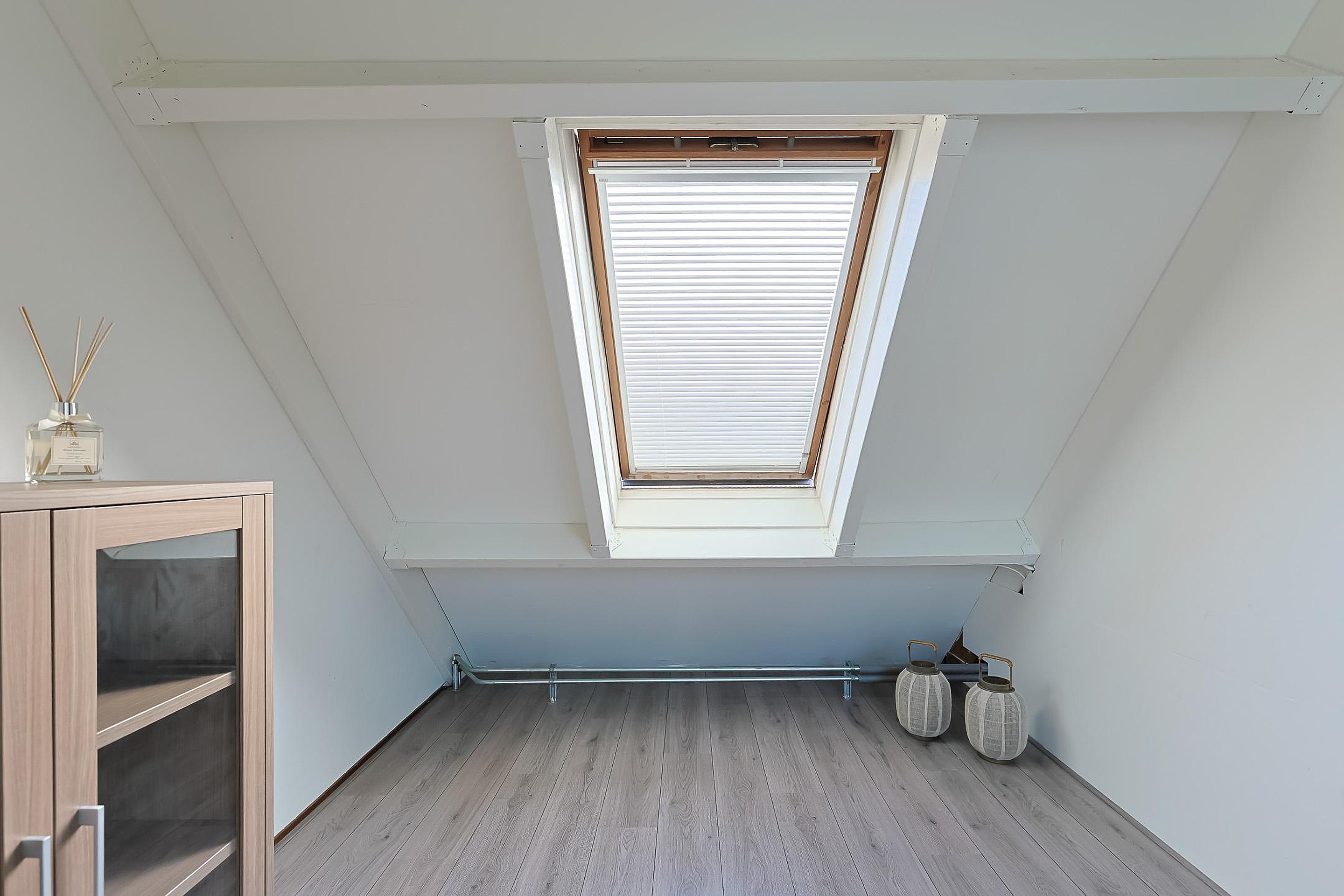 De zolderverdieping is slim ingedeeld met een werkruimte op de overloop en een vierde slaapkamer. Daarnaast vindt u hier de cv-installatie, wasmachineaansluiting en drie dakramen die zorgen voor veel daglicht.