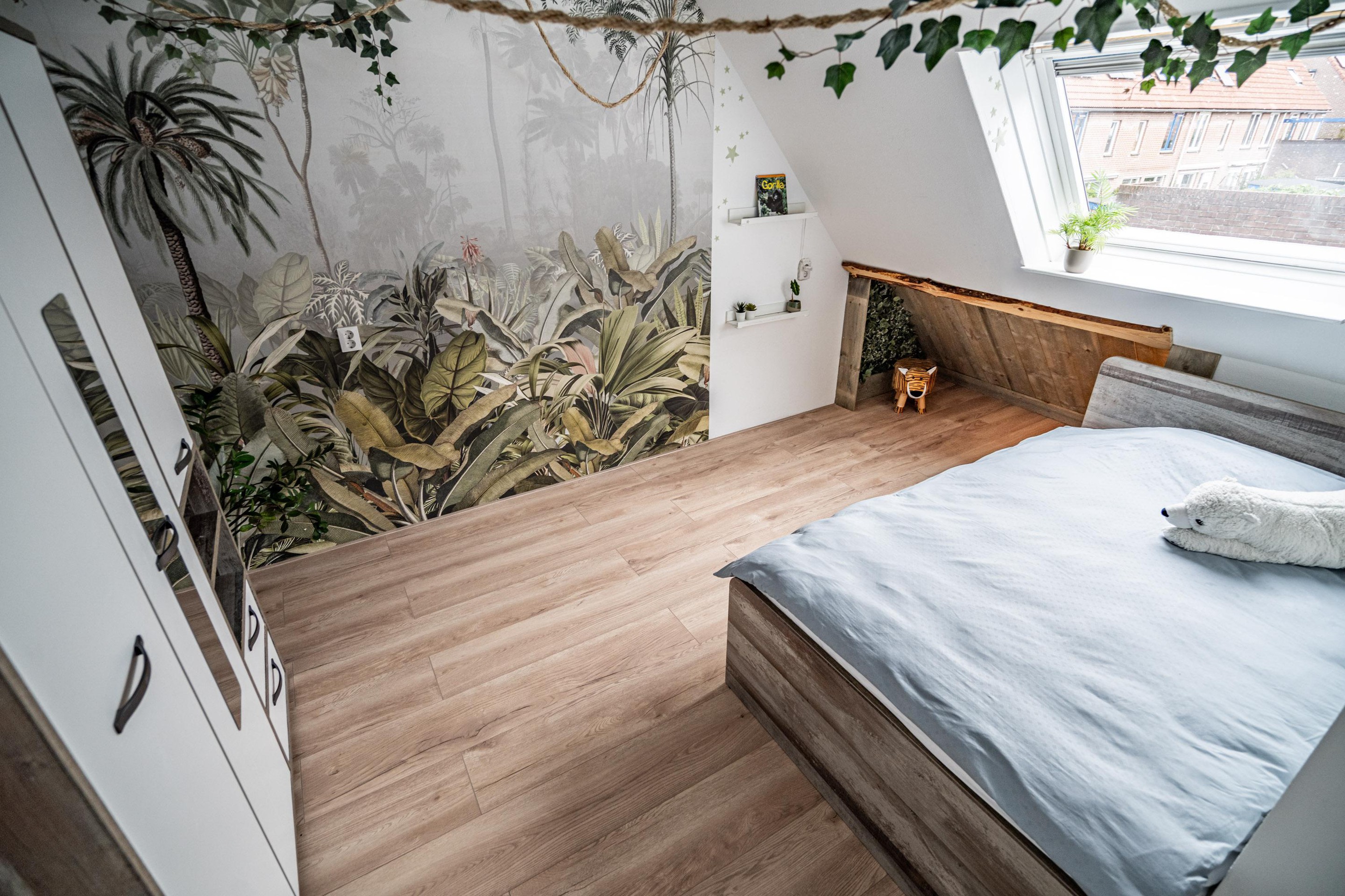 - Slaapkamer 1 is extra ruim doordat hier voorheen twee kamers waren samengevoegd. Twee grote ramen zorgen voor veel licht.