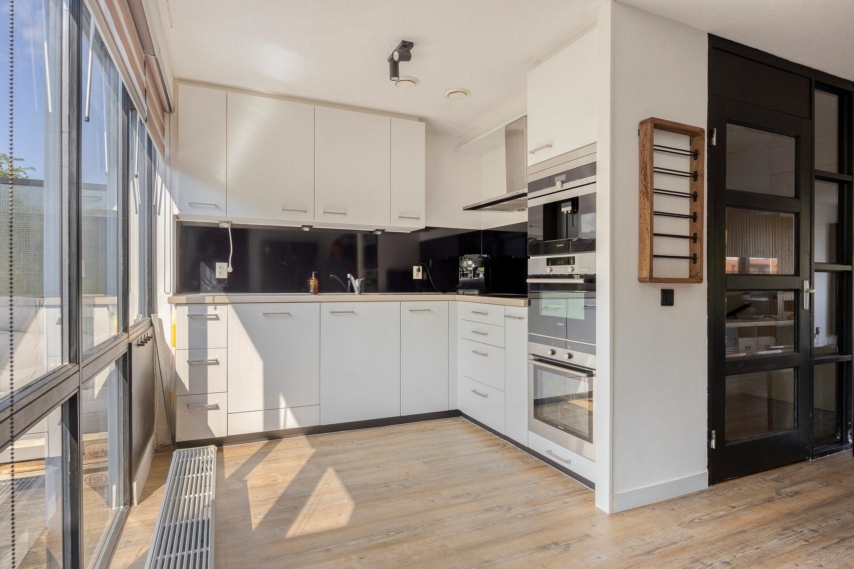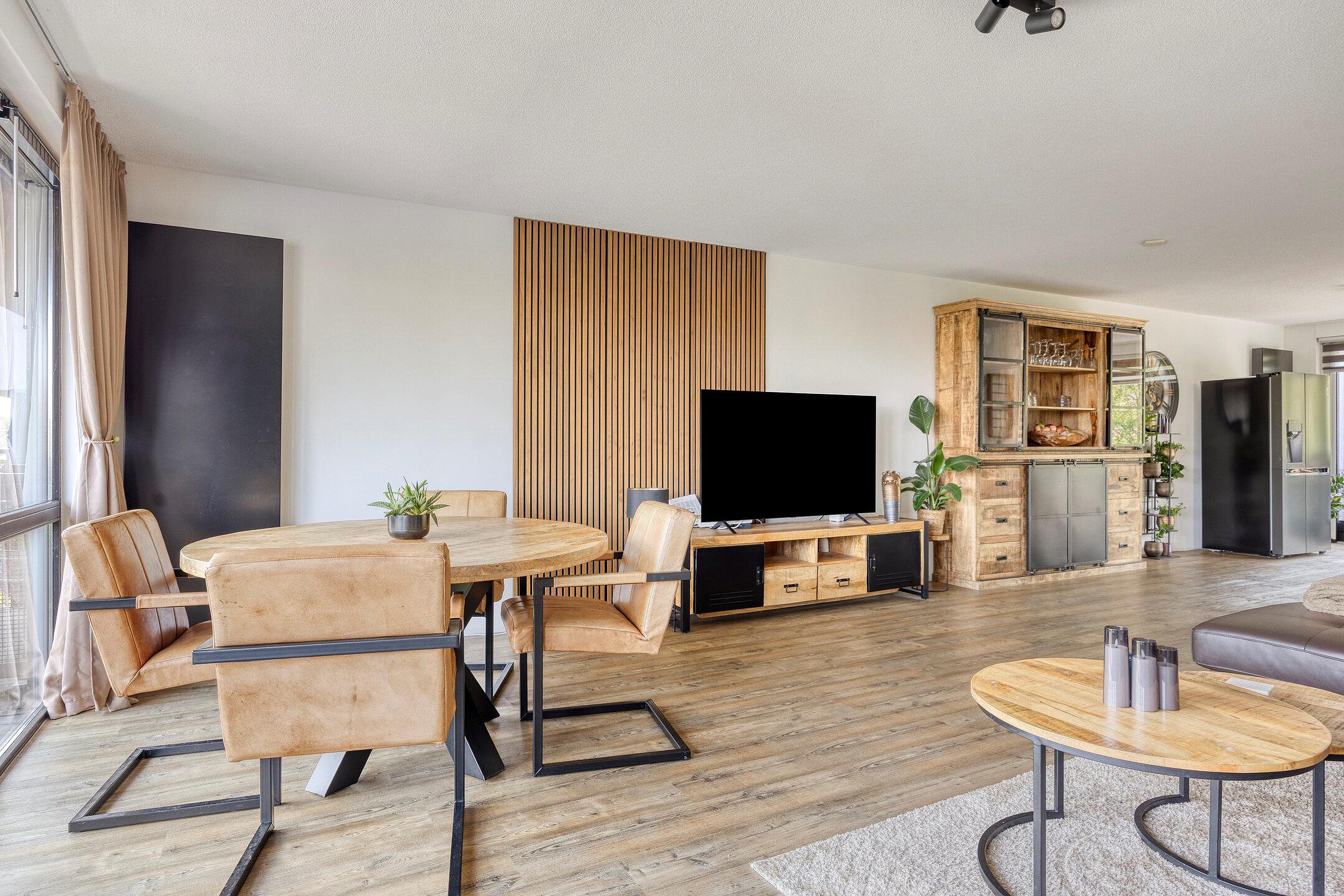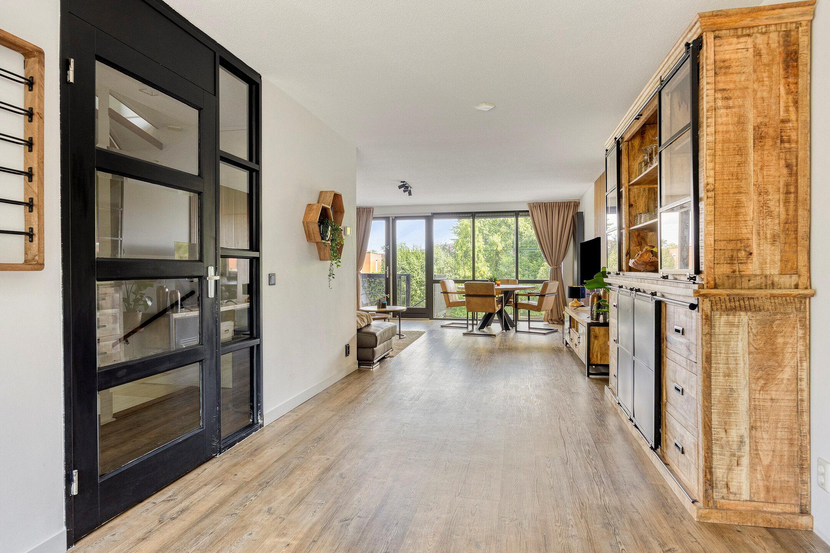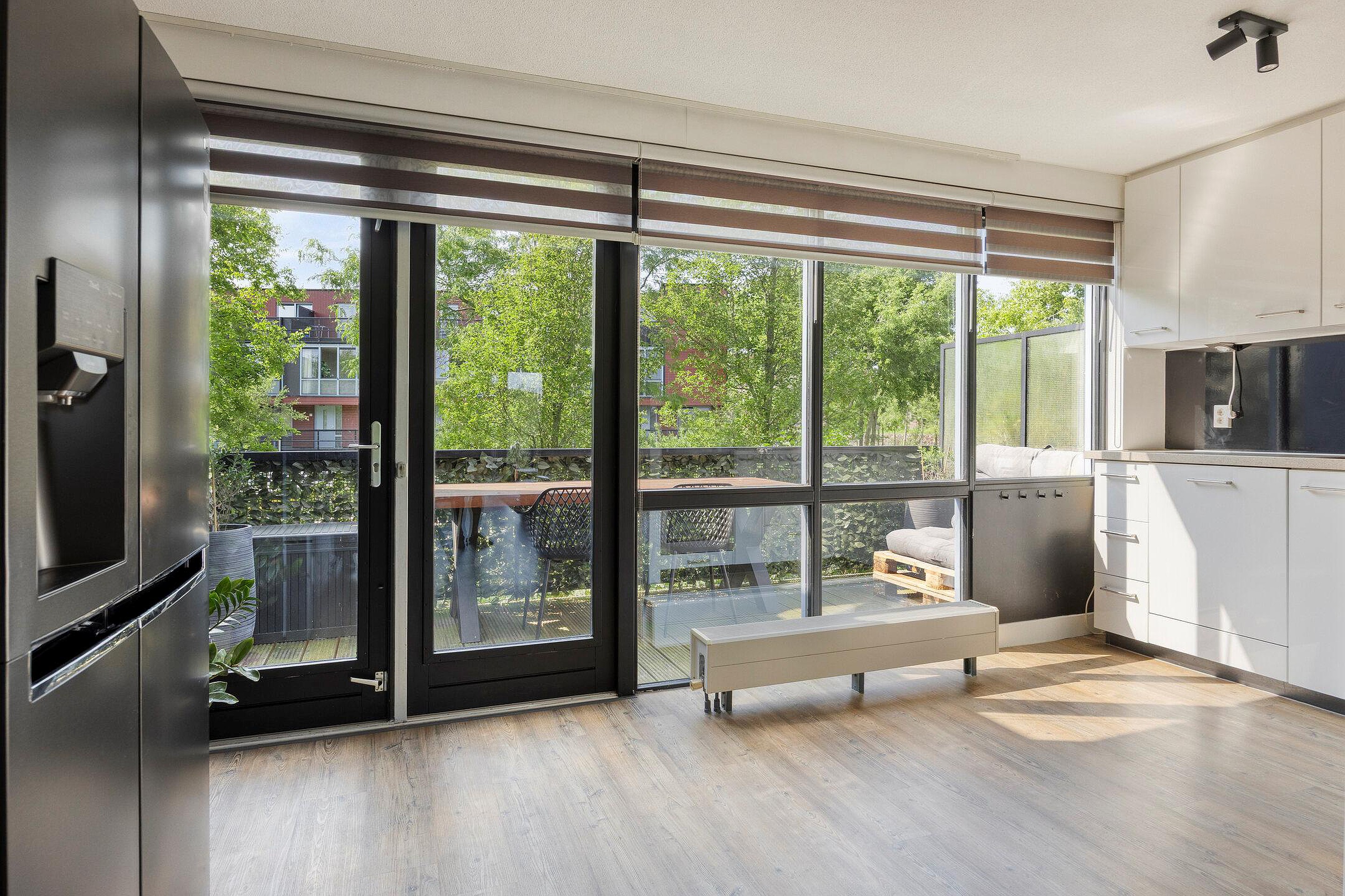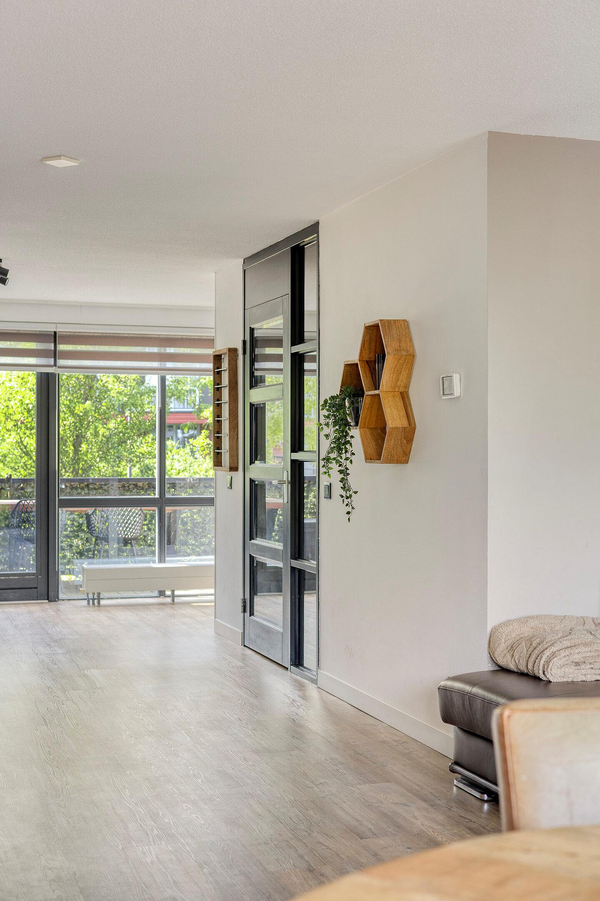 De lichte en open woonkamer strekt zich uit over de 1e verdieping, met grote raampartijen die het vrije uitzicht over het water optimaal benutten en voor een zee aan daglicht zorgen. De indeling leent zich uitstekend voor zowel een gezellige zithoek als een royale eethoek. Openslaande deuren geven direct toegang tot de balkonruimtes, waardoor binnen en buiten naadloos in elkaar overlopen. Door de hogere ligging geniet u naast het vrije uitzicht ook over veel privacy.