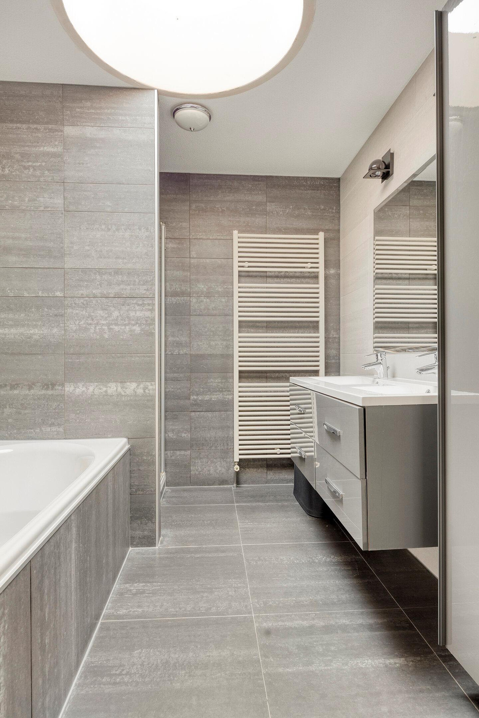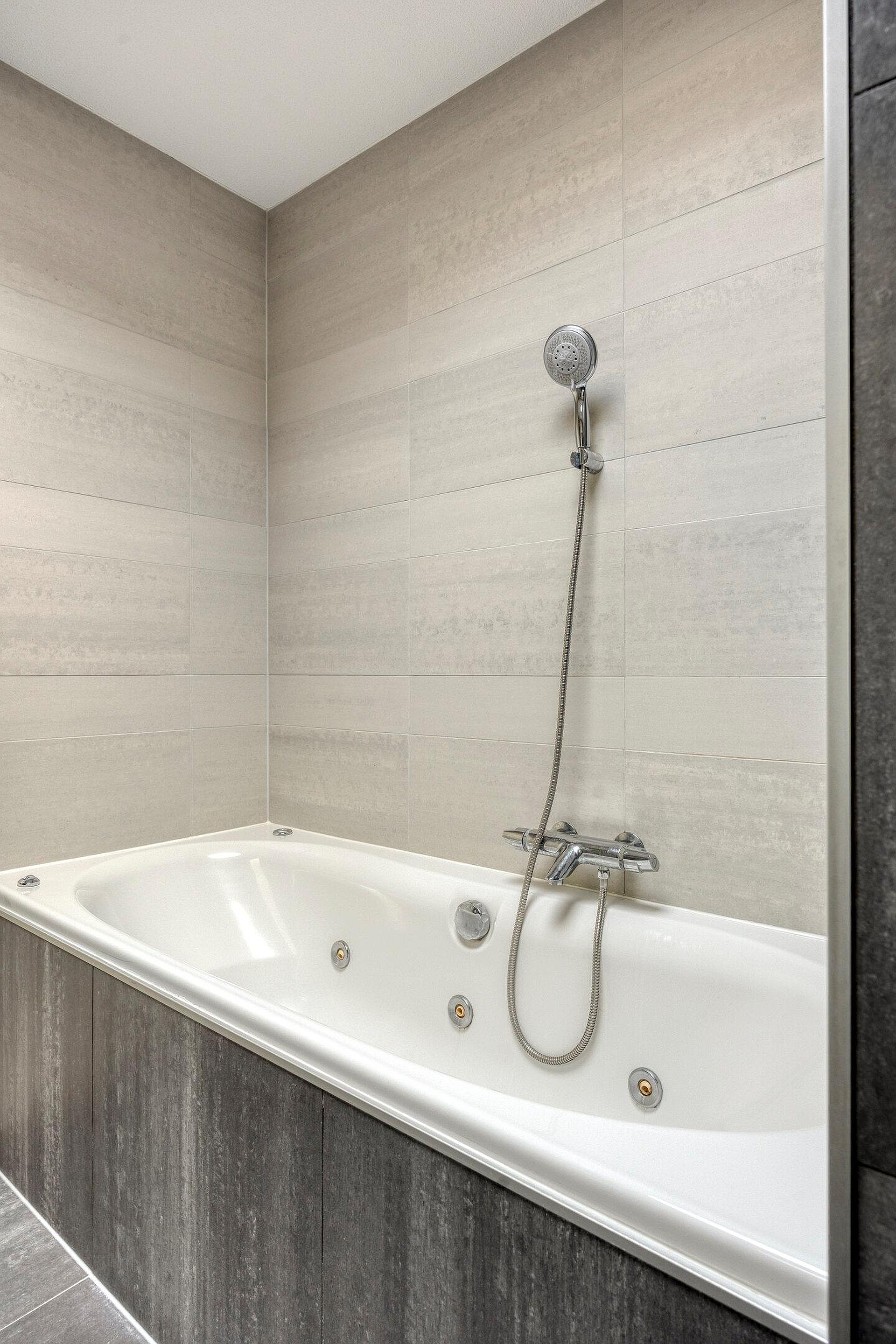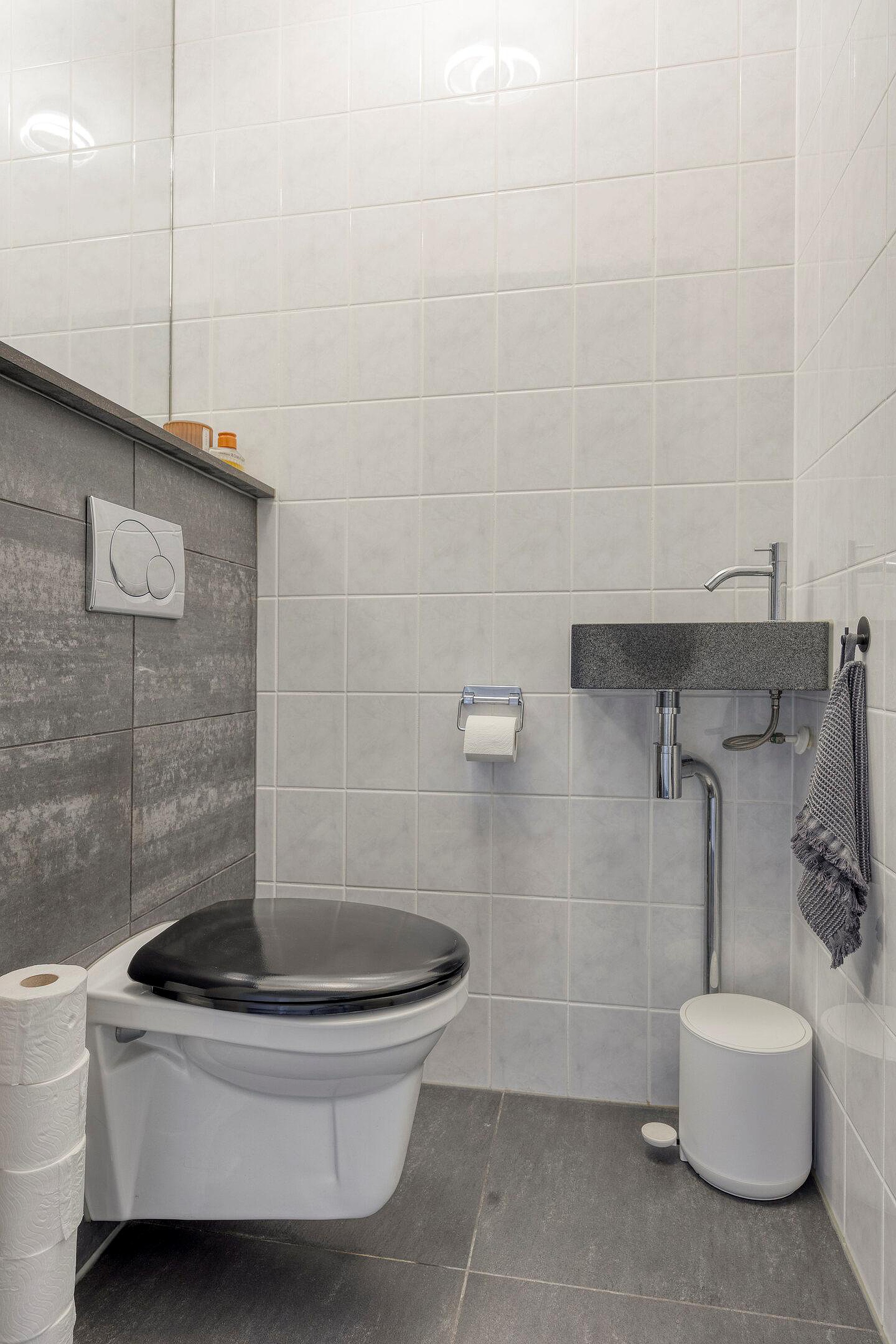 De nette, volledig betegelde badkamer beschikt over een ruime douchecabine, een ligbad, een handdoekradiator en een dubbele wastafel met opbergmeubel. De afwerking is modern en verzorgd, waardoor u direct kunt genieten zonder te hoeven verbouwen. Op de overloop vindt u een separate toiletruimte voor extra gemak.