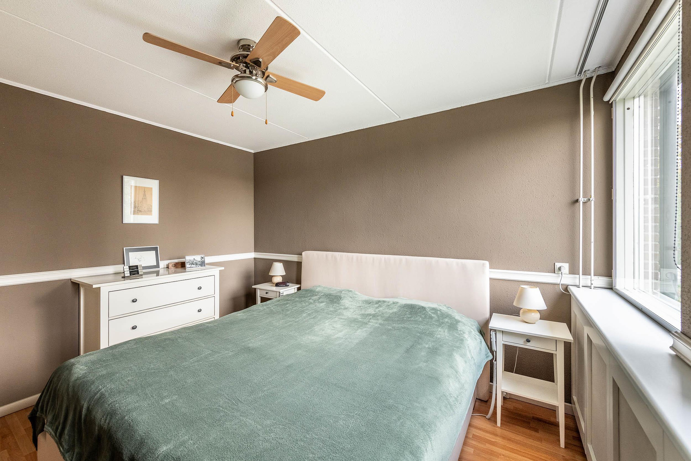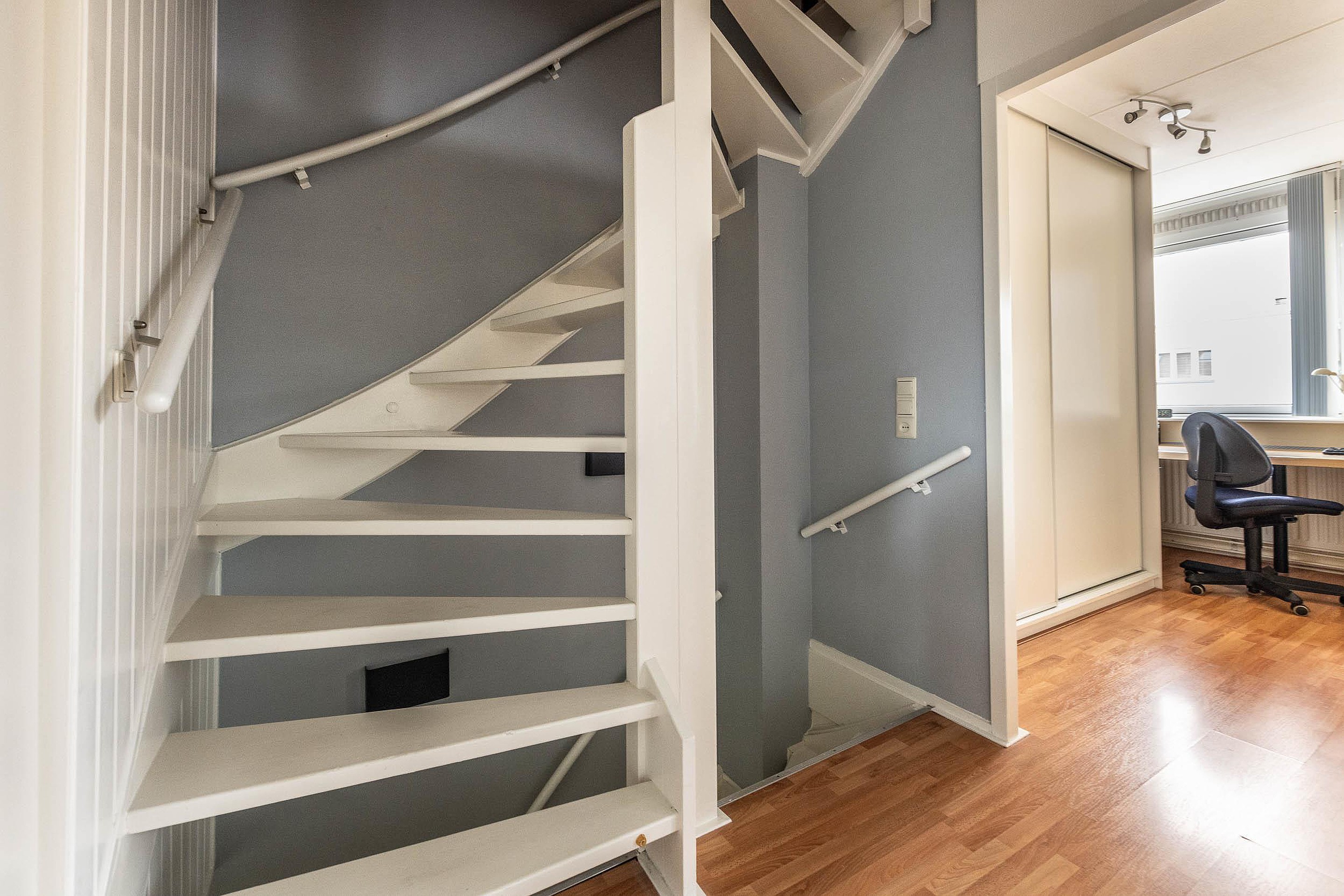 Zowel binnen als buiten is de woning goed onderhouden. Een totaal vloeroppervlakte van 106 m2, een lichte woonkamer met een gezellige gaskachel, een tuin op het zuiden, eigen parkeerplaats, drie slaapkamers en een ruime zolderkamer, alles klopt.