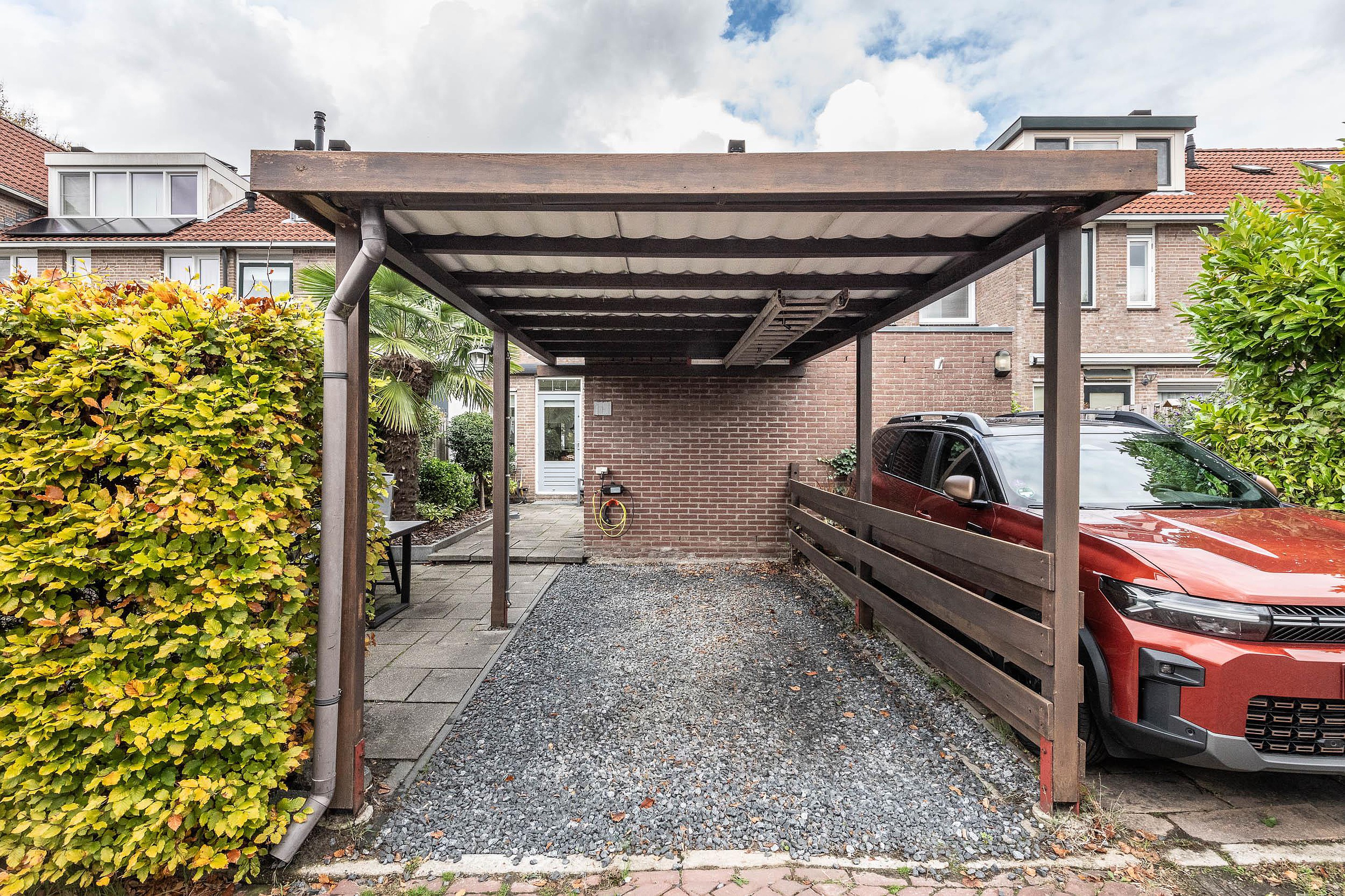De heerlijke achtertuin heeft twee terrassen en is op het zuiden gelegen. Daarnaast is er nog een berging en heel comfortabel, een carport voor het overdekt parkeren van uw auto.