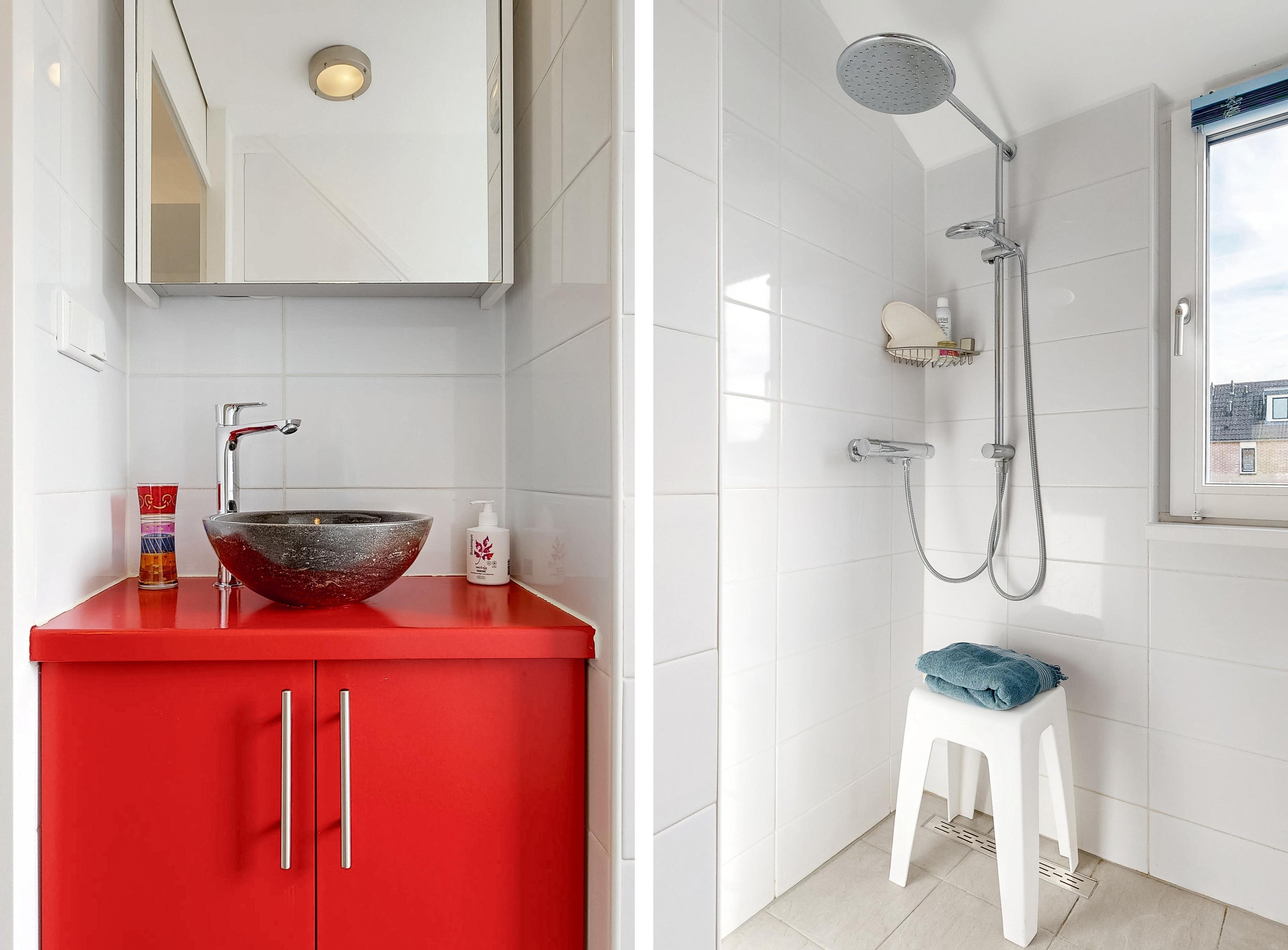 - Badkamer en separaat toilet – moderne badkamer met douche en wastafel op de begane grond en een apart toilet.