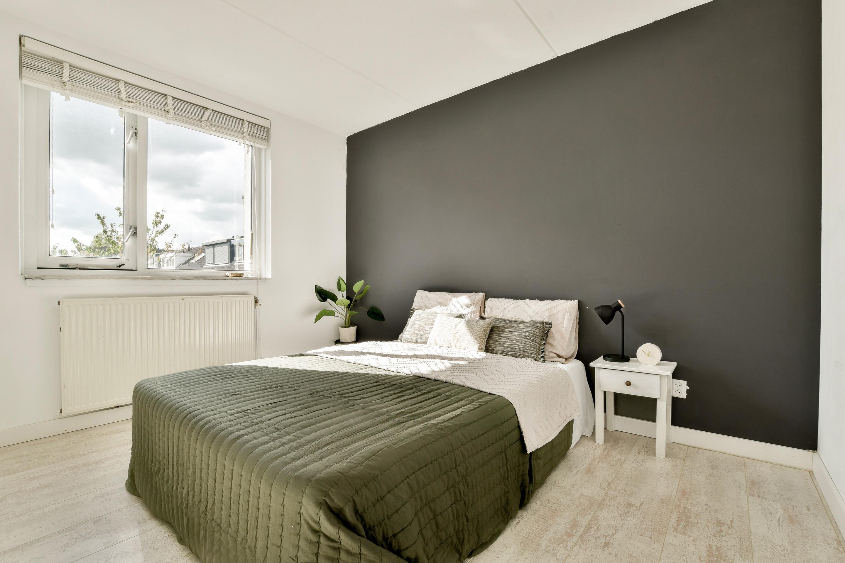 Deze verdieping beschikt over twee ruime slaapkamers, waarvan één uitgestrekt over de gehele breedte van de woning incl. badkamer ensuite. Deze bevindt zich aan de achterzijde. Aan de voorzijde ligt een tweede slaapkamer met trap die toegang geeft tot een vliering. Daarnaast een technische ruimte met aansluiting voor een wasmachine en droger.