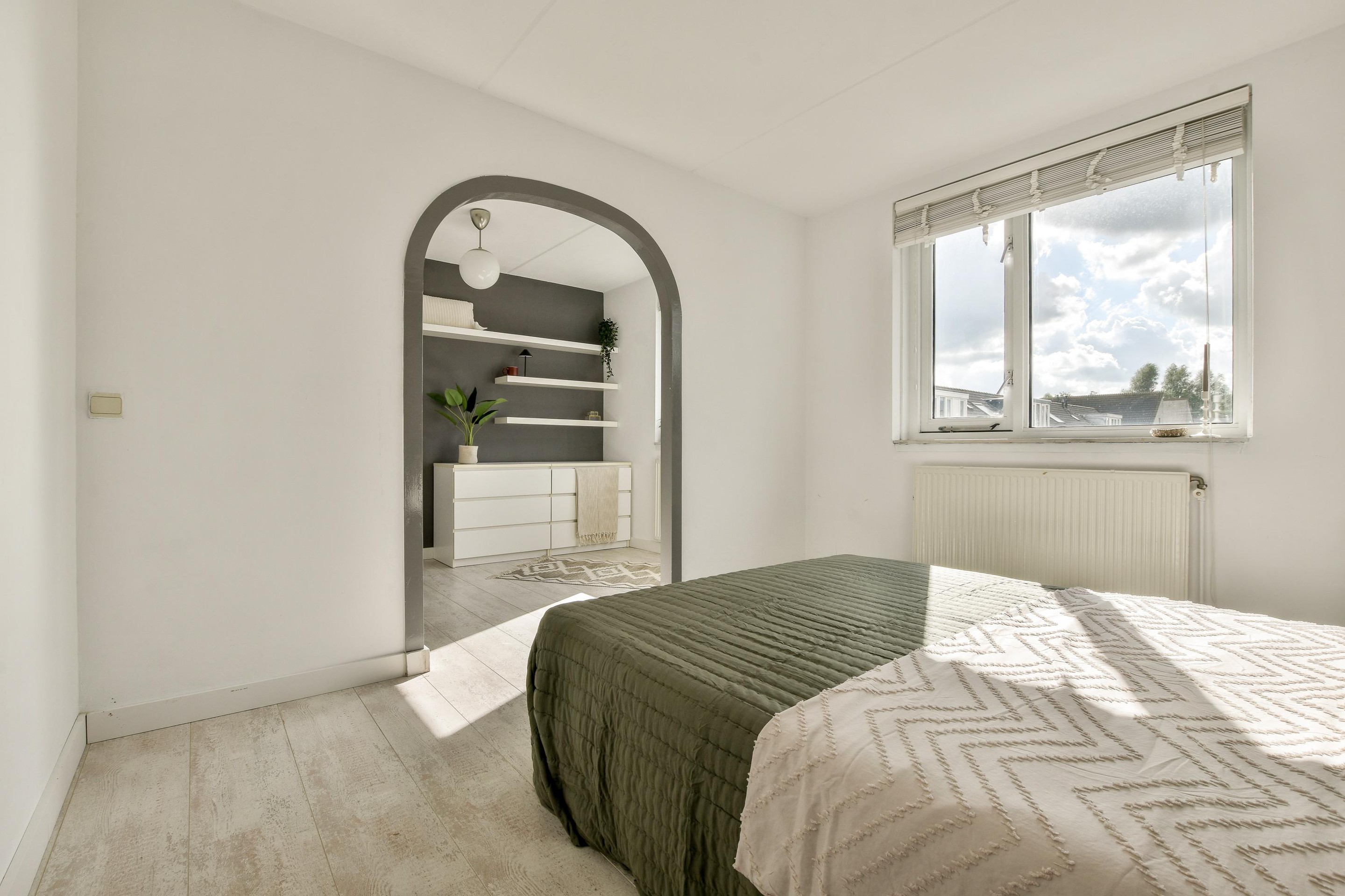 Aan de achterzijde van de woning bevindt zich een ruime slaapkamer (bestaande uit 2 ruimtes), verbonden door binnendeur met artistieke boog. Aan de voorzijde ligt een derde goed formaat slaapkamer. De badkamer is voorzien van wastafelmeubel, spiegel, zwevend toilet, handdoekdroogrek en een ligbad met douche. Tussen de overloop en de slaapkamer aan de achterzijde bevindt zich een praktische vaste kast.