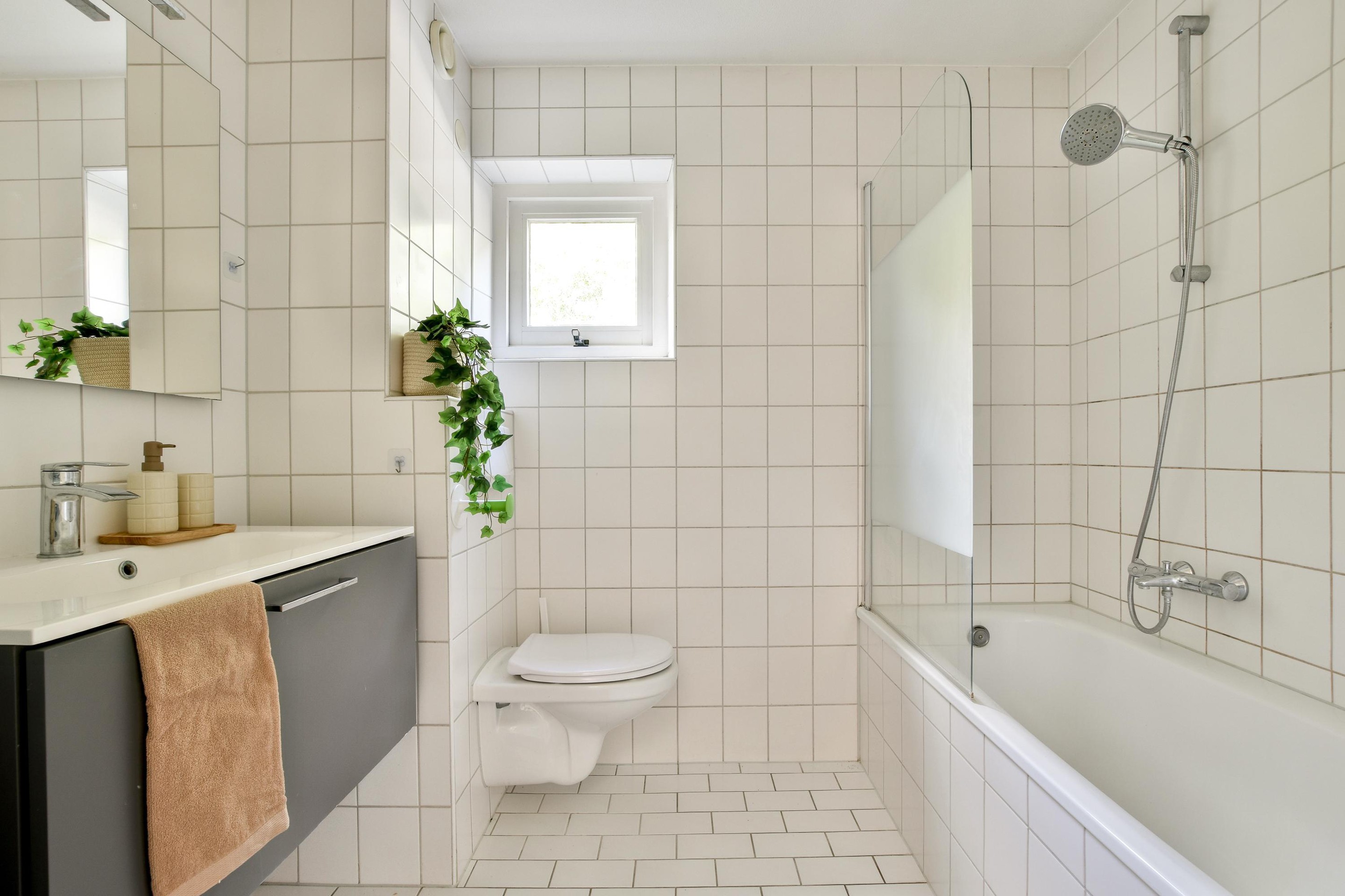 - 1e badkamer voorzien van bad met douche, wastafelmeubel, handdoekdroogrek en tweede toilet