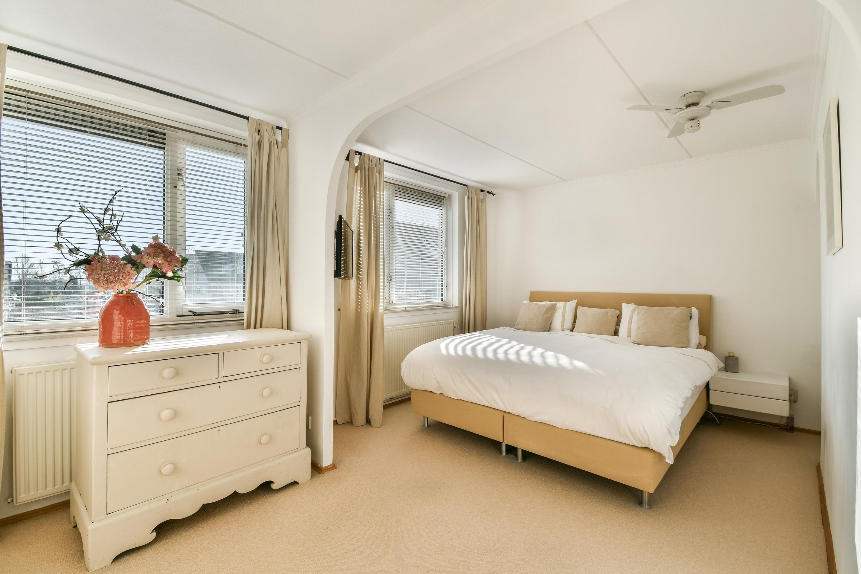 Op deze verdieping is er ook 1 ruime slaapkamer gelegen aan de voorzijde. Daarnaast bevindt zich een tweede bescheiden badkamer met apart ligbad, wastafel, en keurig betegeld.