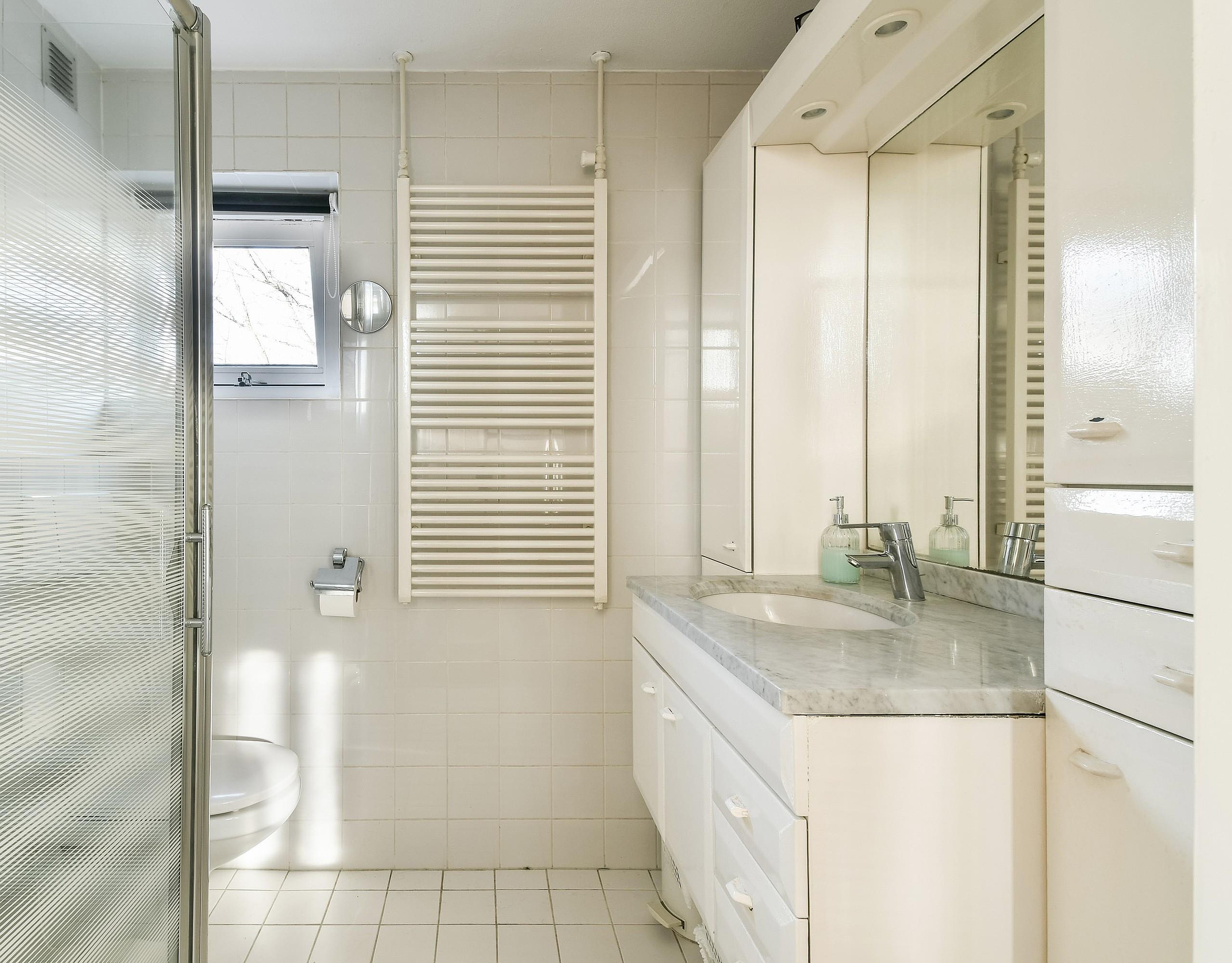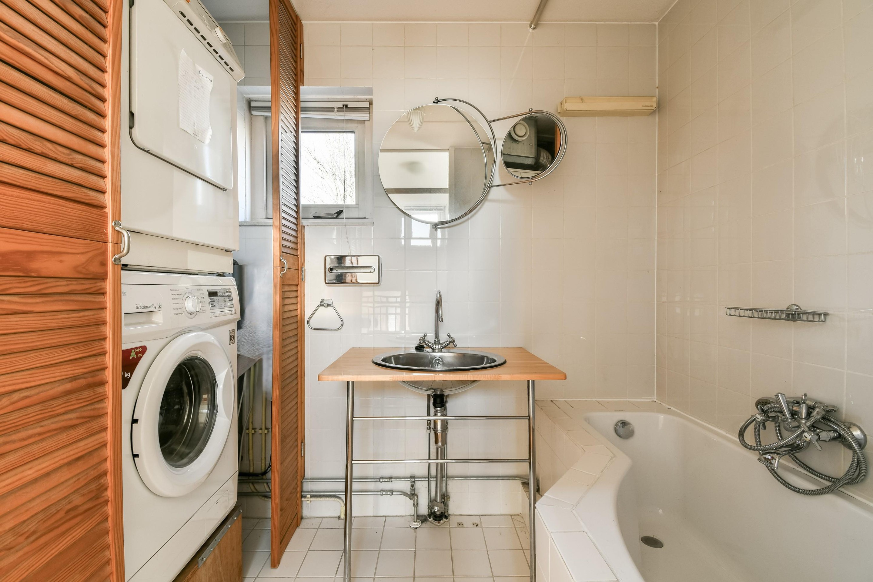 Hier bevindt zich de ook de opstelling van de wasmachine en de droger.