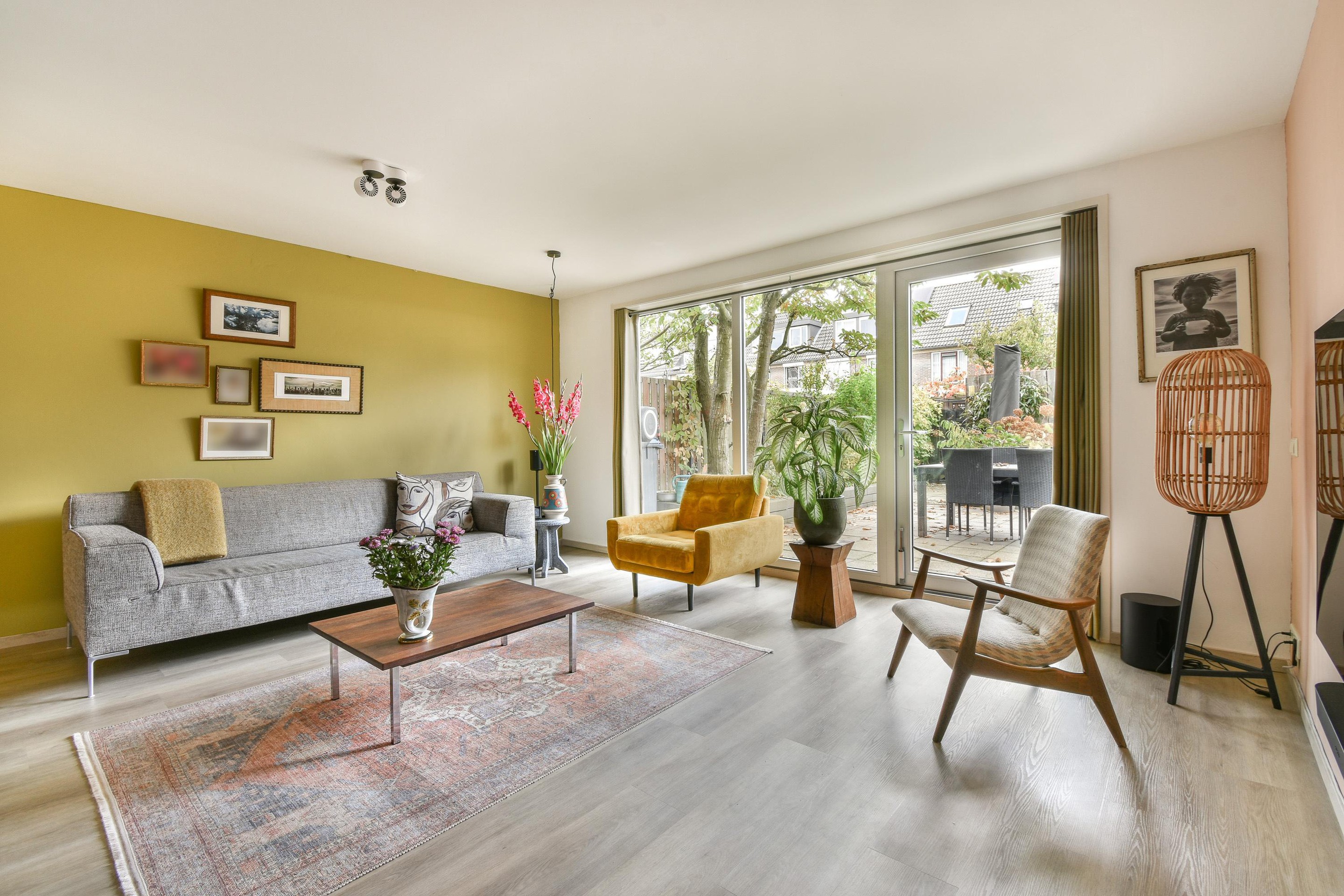 De uitgebouwde woonkamer is voorzien van VLOERverwarming en een mooie nieuwe pvc vloer. Veel licht door de glazen pui aan de achterzijde en een mooie doorkijk op uw diepe achtertuin.