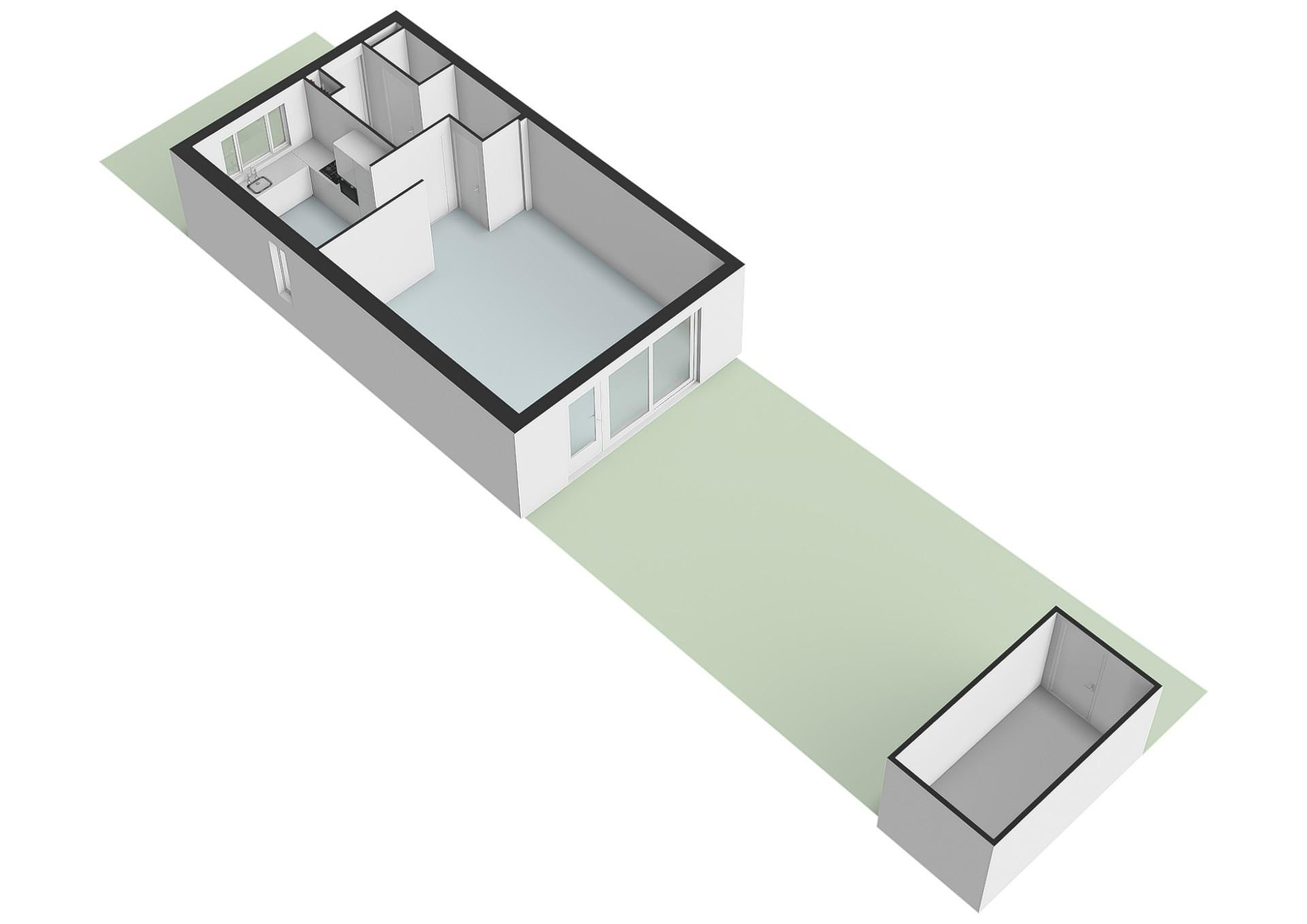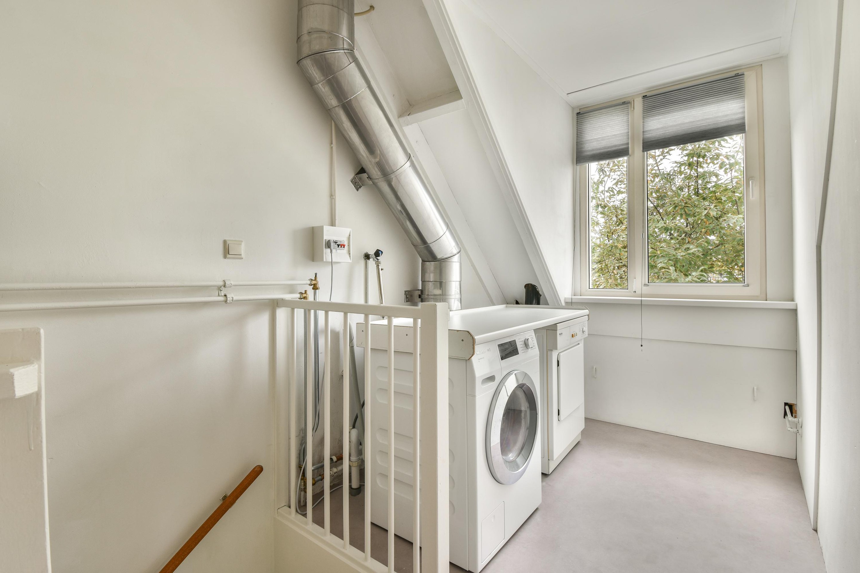 Verder nog een open gedeelte met een raam en opstelling wasmachine en droger. De cv-ketel en mechanische ventilatie zijn aan de voorzijde geplaatst in een afgesloten ruimte. Met de mogelijkheid voor een tweede badkamer.