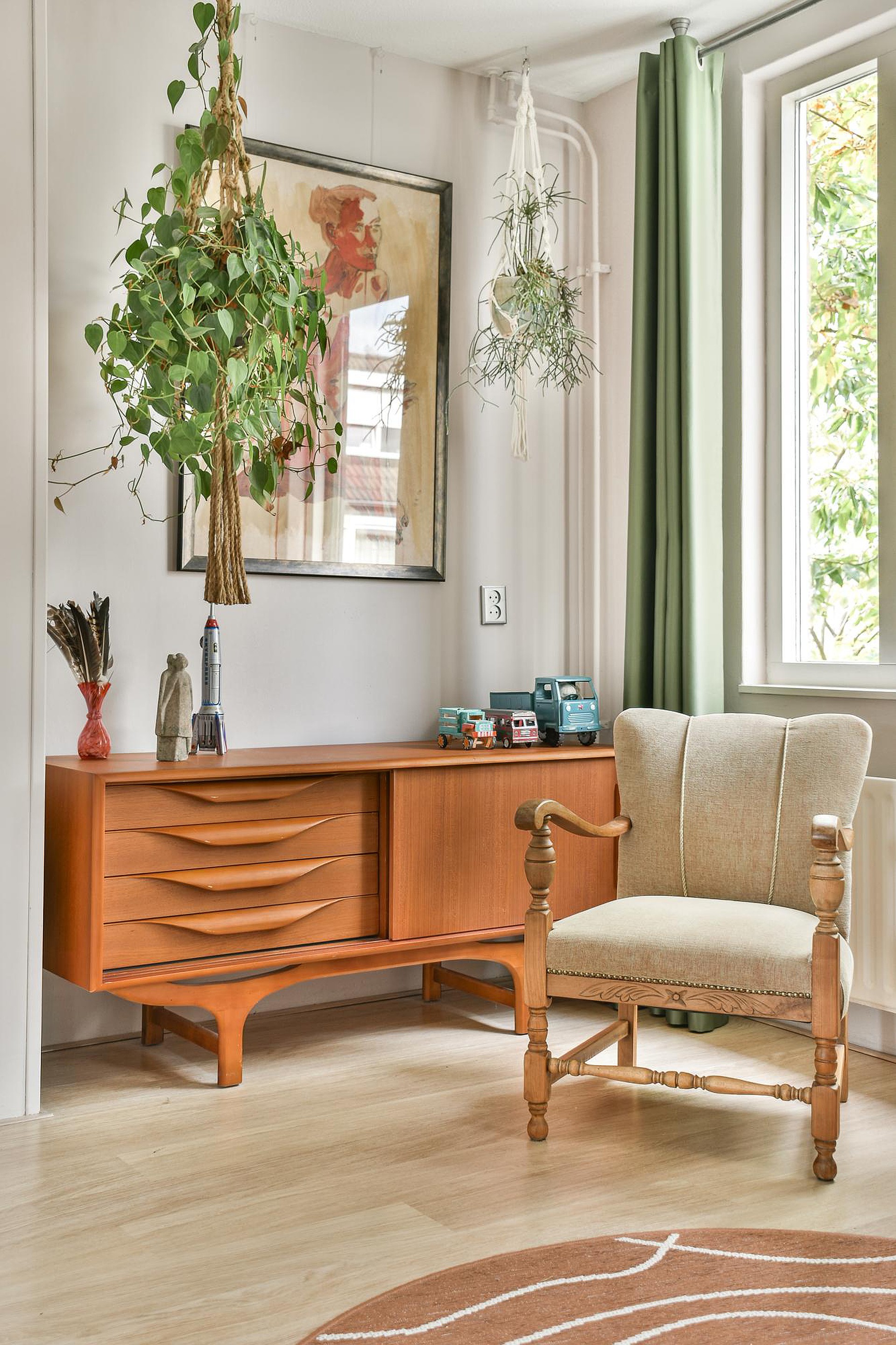 De woonkamer is ruim en gezellig. De tuin is een genot. Een heerlijk huis. Een fijne plek om samen met uw gezin te zijn. (Mogelijkheid voor een openhaard of voorzetkachel, er is een rookkanaal aanwezig.)