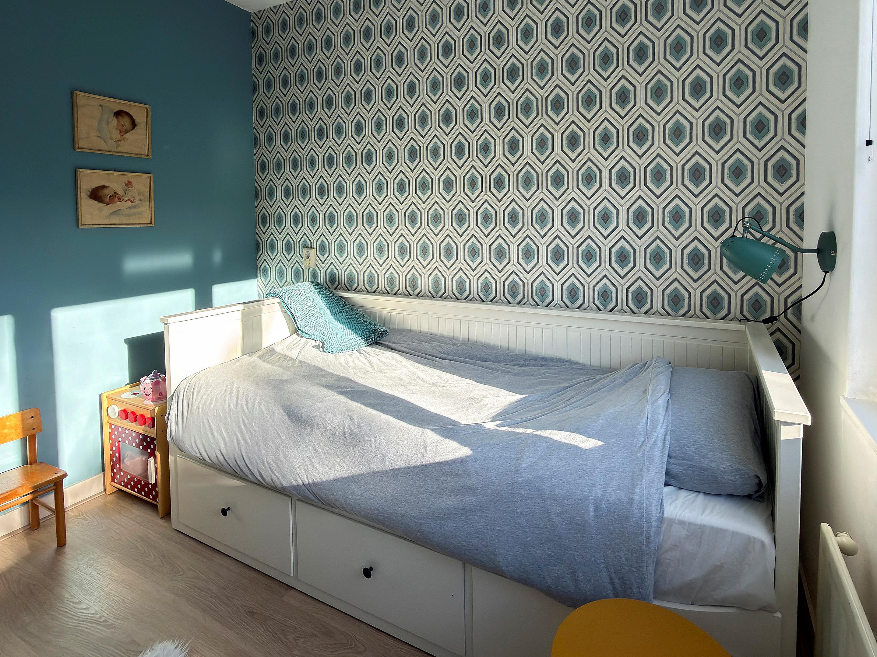 First floor. From the landing, there is access to two (previously three) spacious bedrooms and a modern bathroom. You will be pleasantly surprised by the master bedroom at the rear, now opened up across the entire width of the house. It also features a built-in wardrobe. The bedroom at the front is also generously sized.