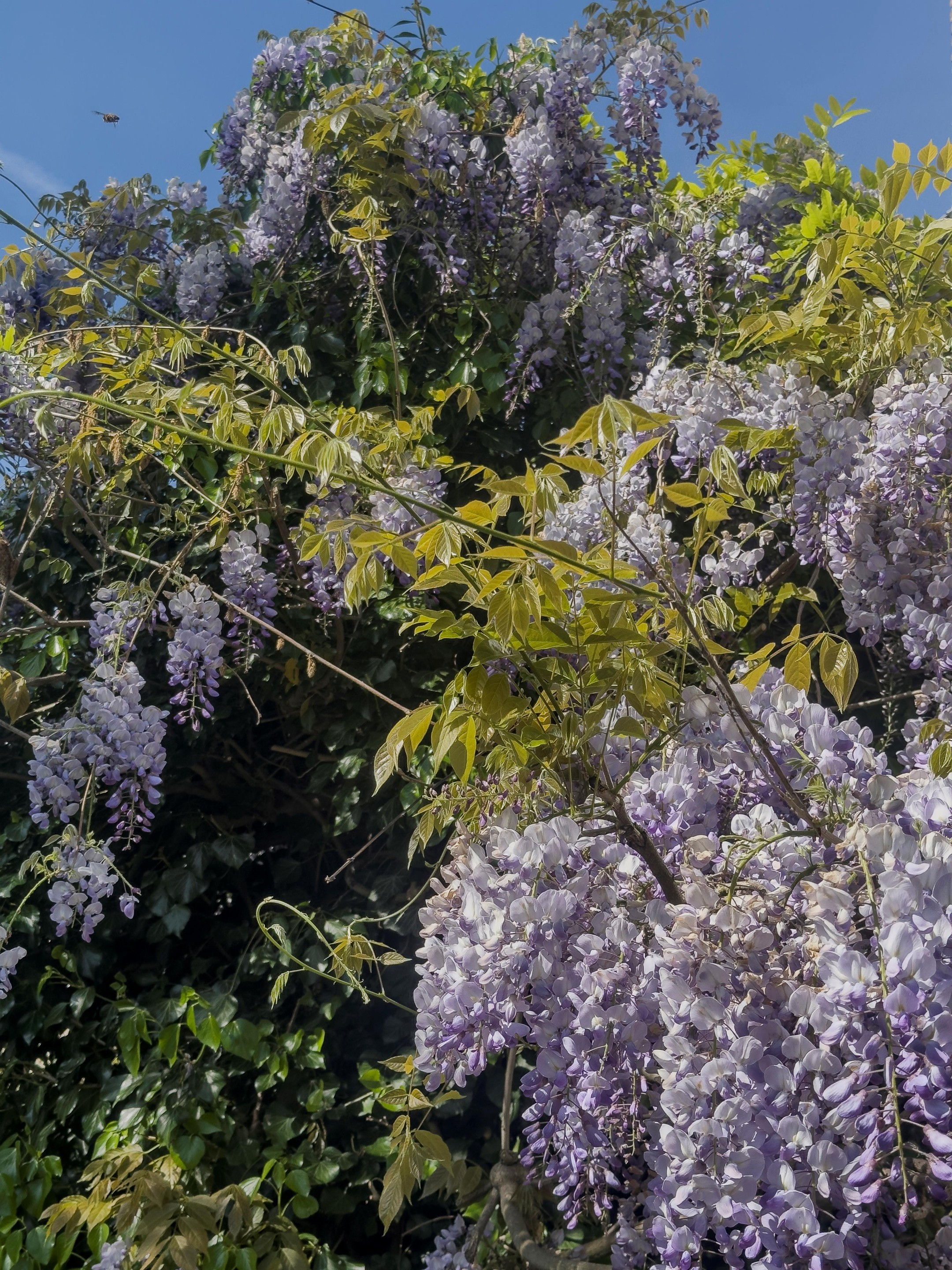 The wonderfully sunny back garden faces west and has an unobstructed south exposure (approx. 60 m2). A true delight. This garden is spacious, neatly tiled, and has rear access. It also features a lovely seating area at the back of the garden. There's also a large stone shed for bicycles, etc., and a piled stone wall to the right.