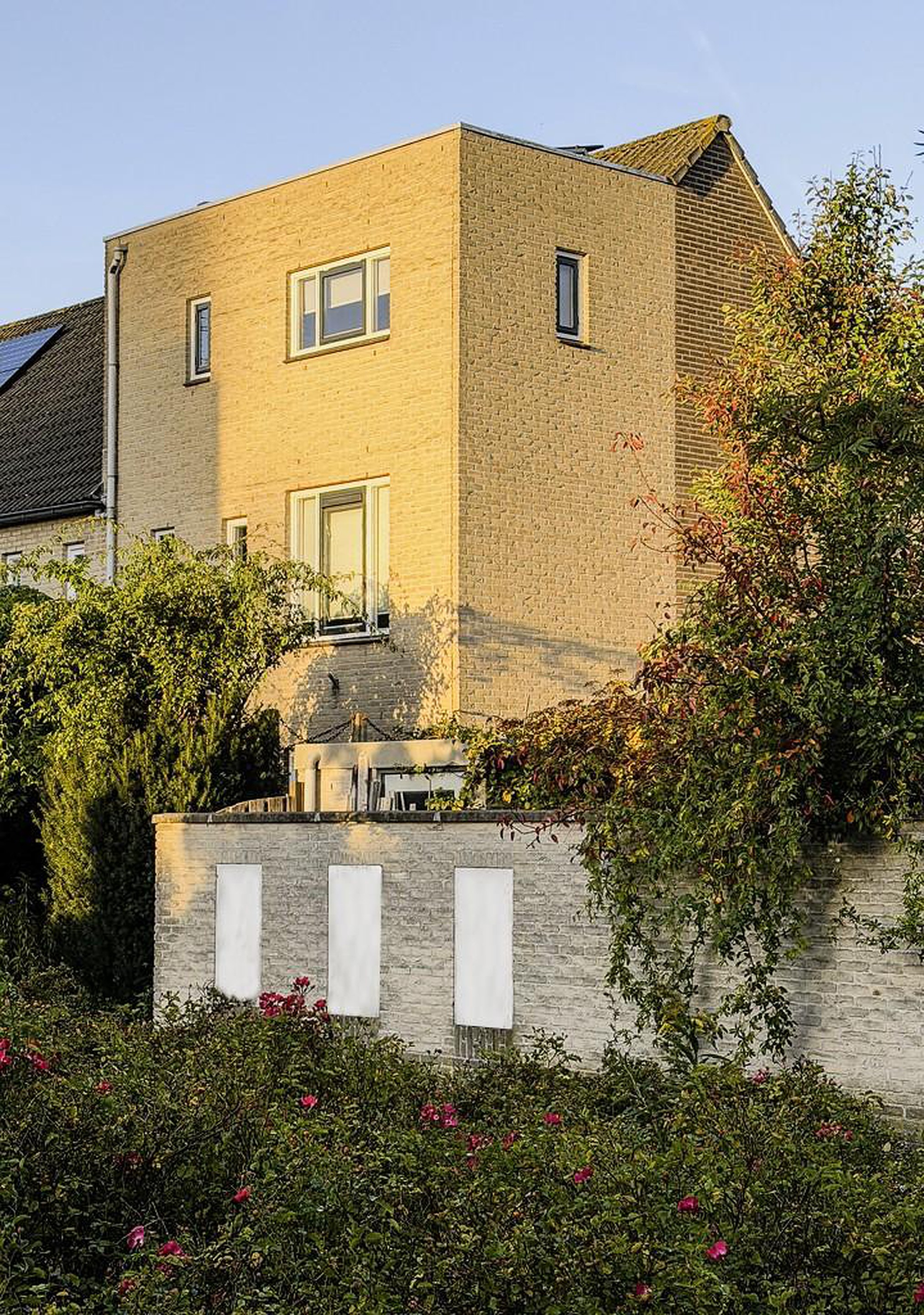 Mooi doorgetrokken gemetselde voorgevel over drie etages.