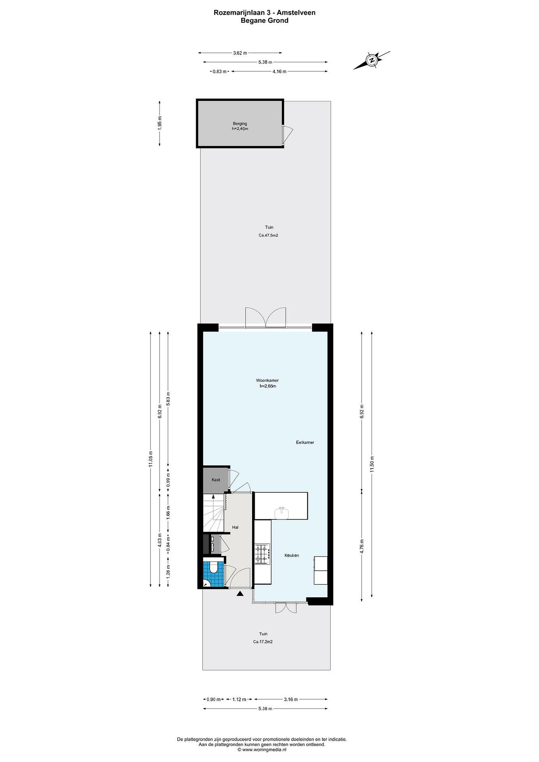 Wij hebben deze informatie met de grootst mogelijke zorgvuldigheid samengesteld. Wij aanvaarden echter geen aansprakelijkheid voor eventuele onvolledigheden, onjuistheden of andere fouten, noch voor de gevolgen daarvan. De woning is gemeten volgens branche brede meetvoorschriften, gebaseerd op de NEN-2580-norm.