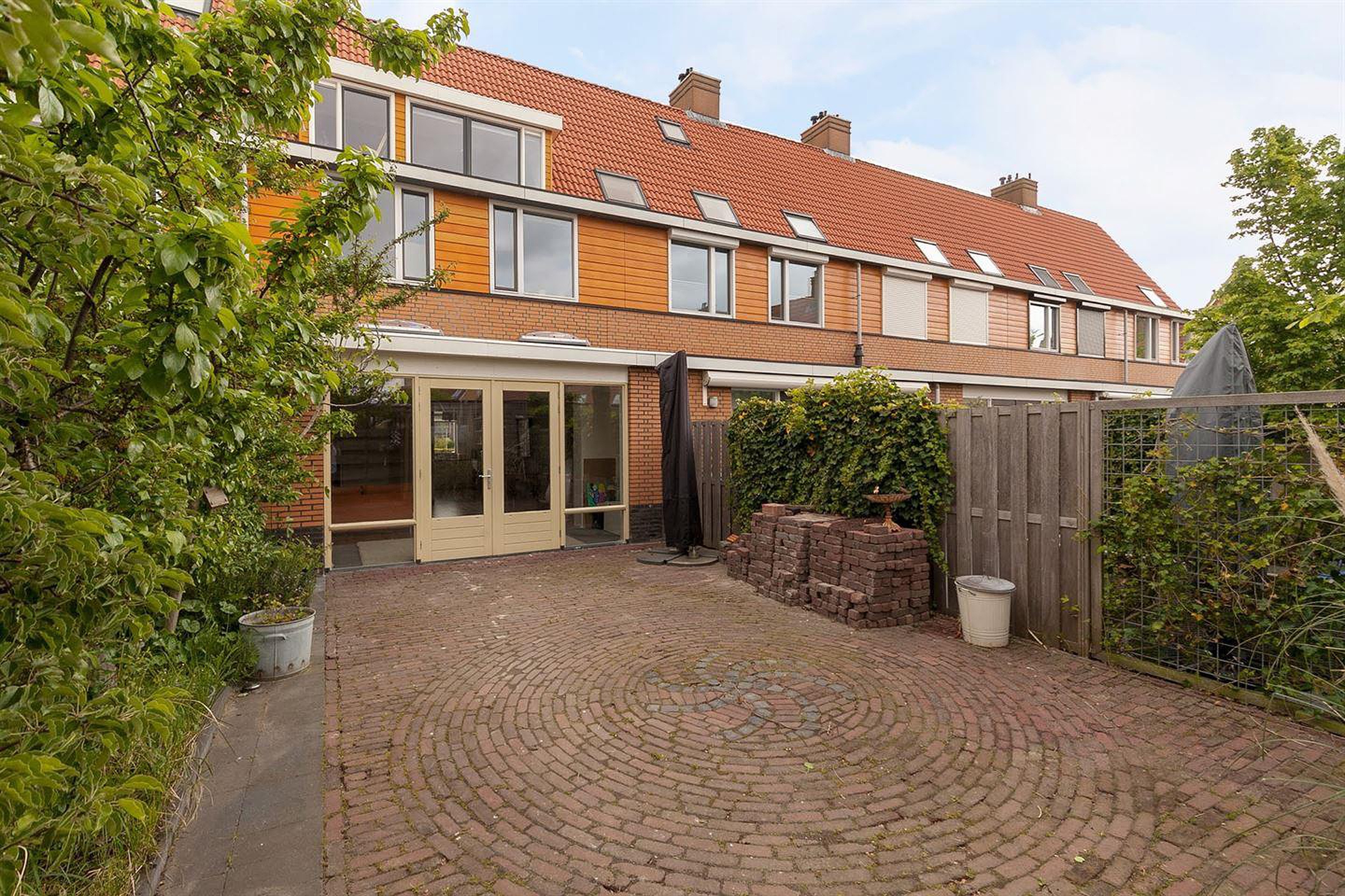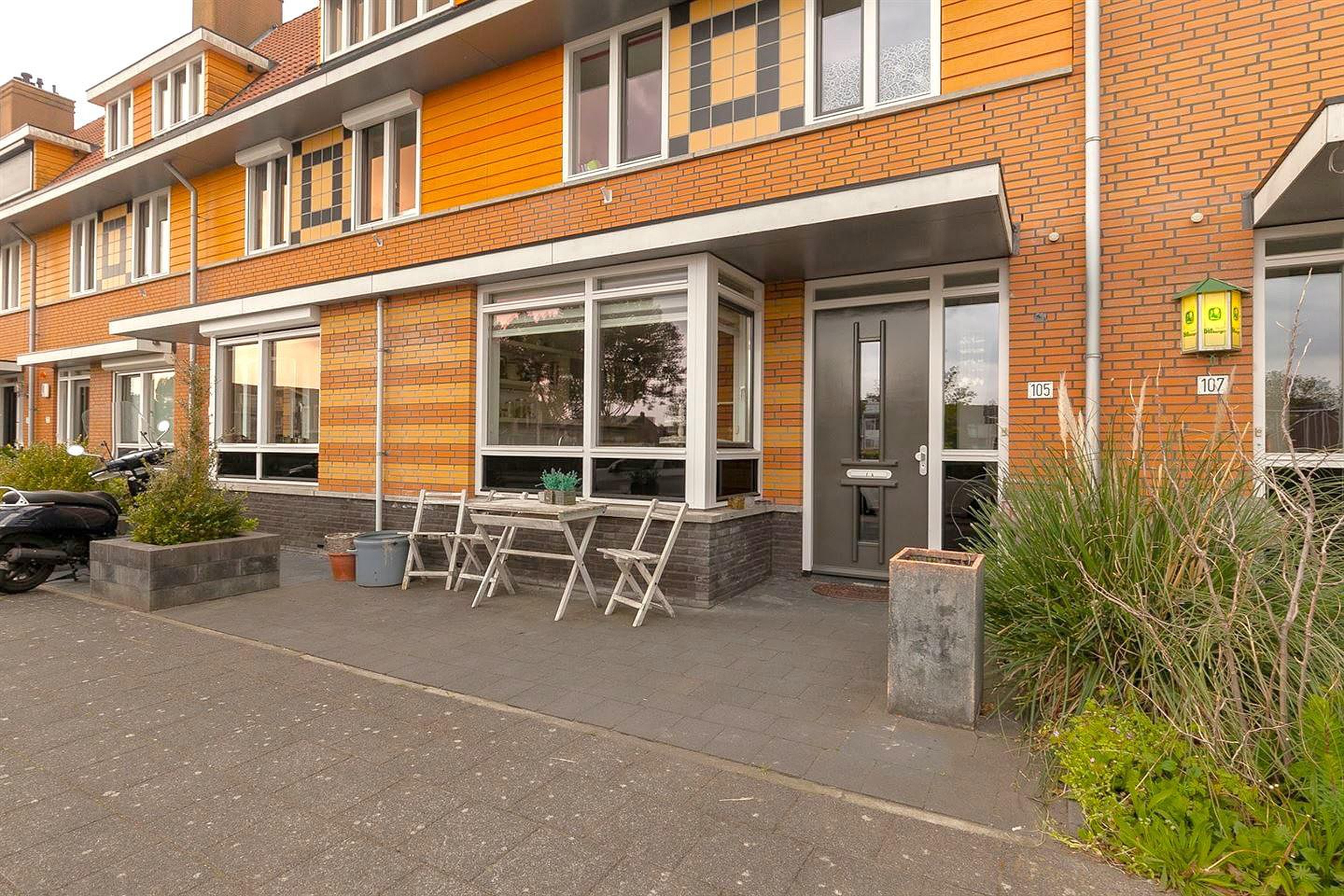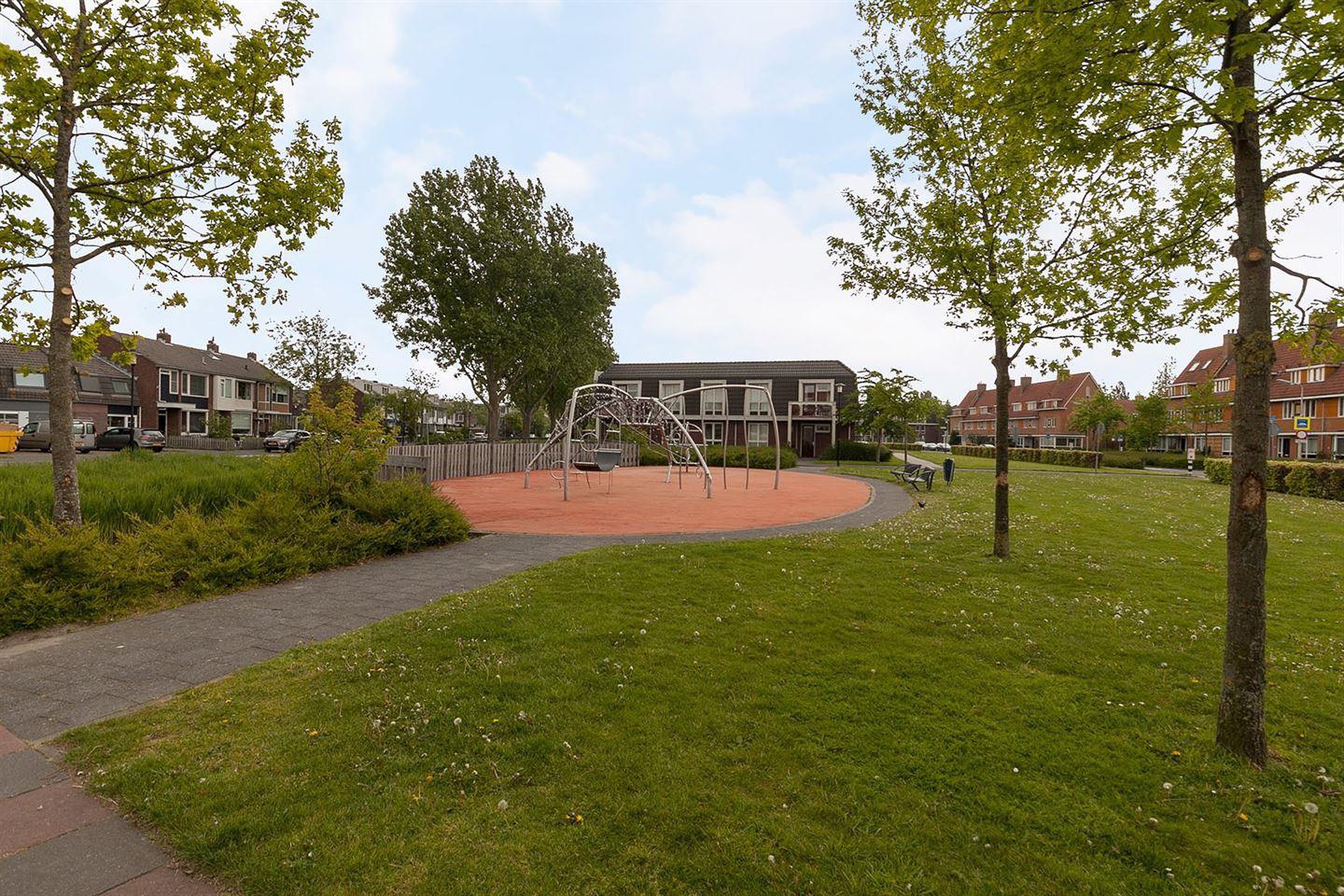 Een kindvriendelijke buurt met woningen op stand. Voortuin keurig betegeld. Fraaie bouwstijl geïnspireerd door de jaren '30 Met bijvoorbeeld een erker op de begane grond, witte daklijsten, mooi metselwerk, dak met pannen, hoog doorgetrokken voorzijde over vier etages.